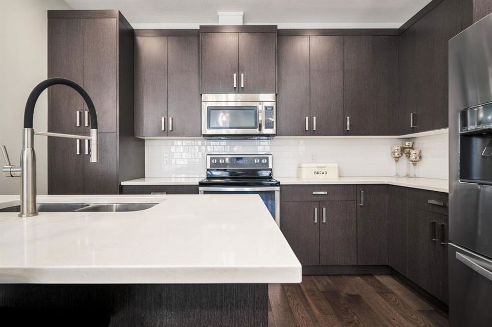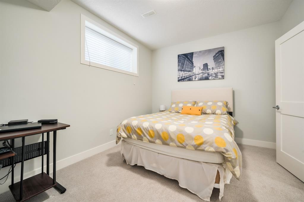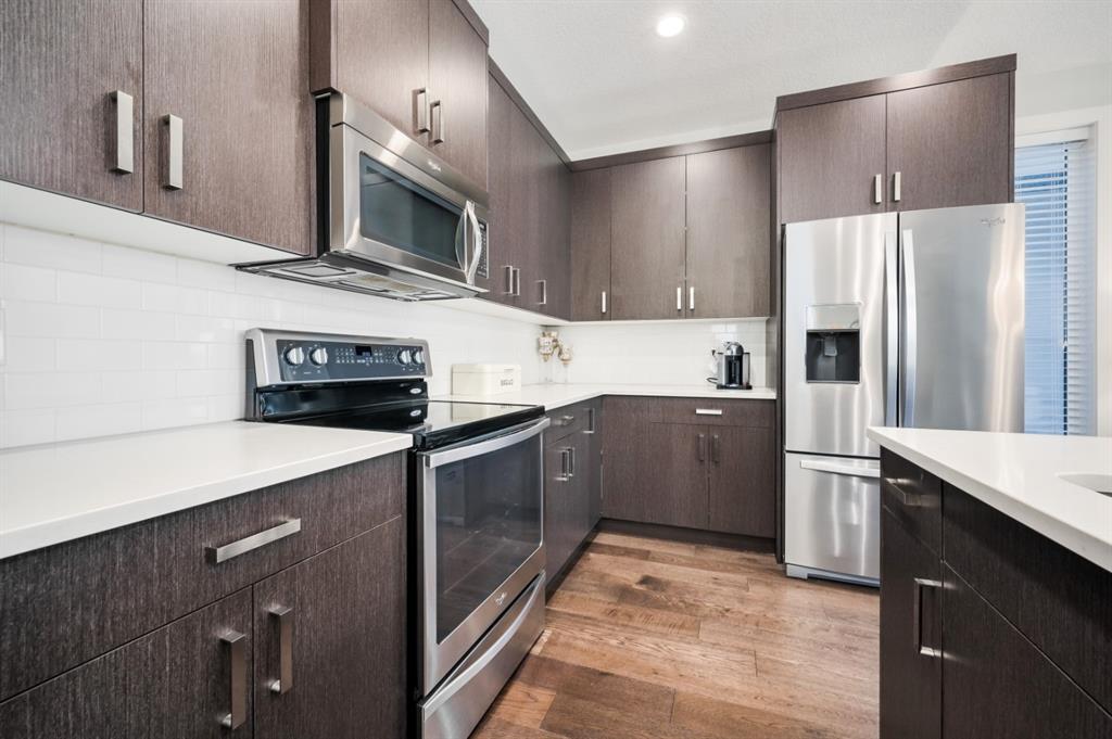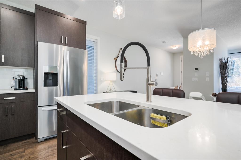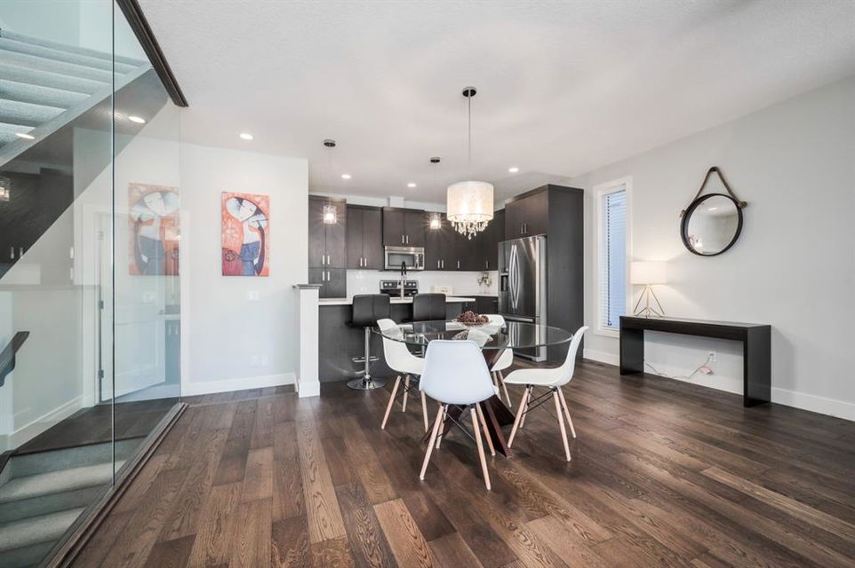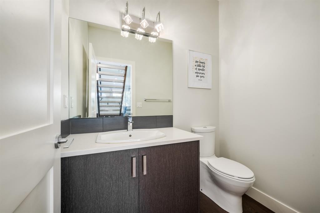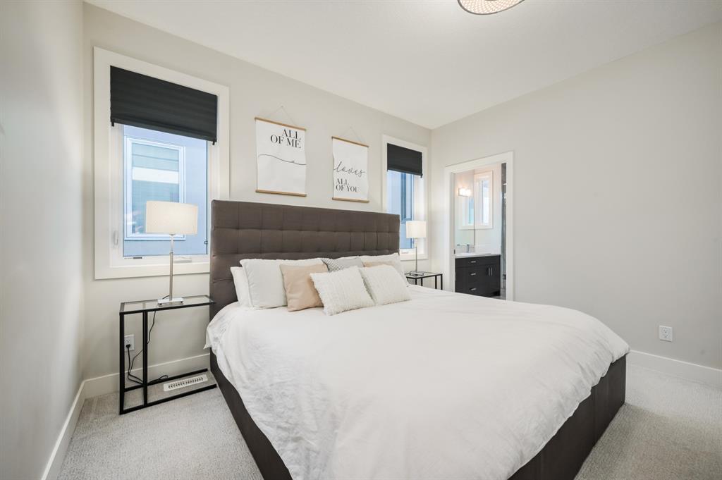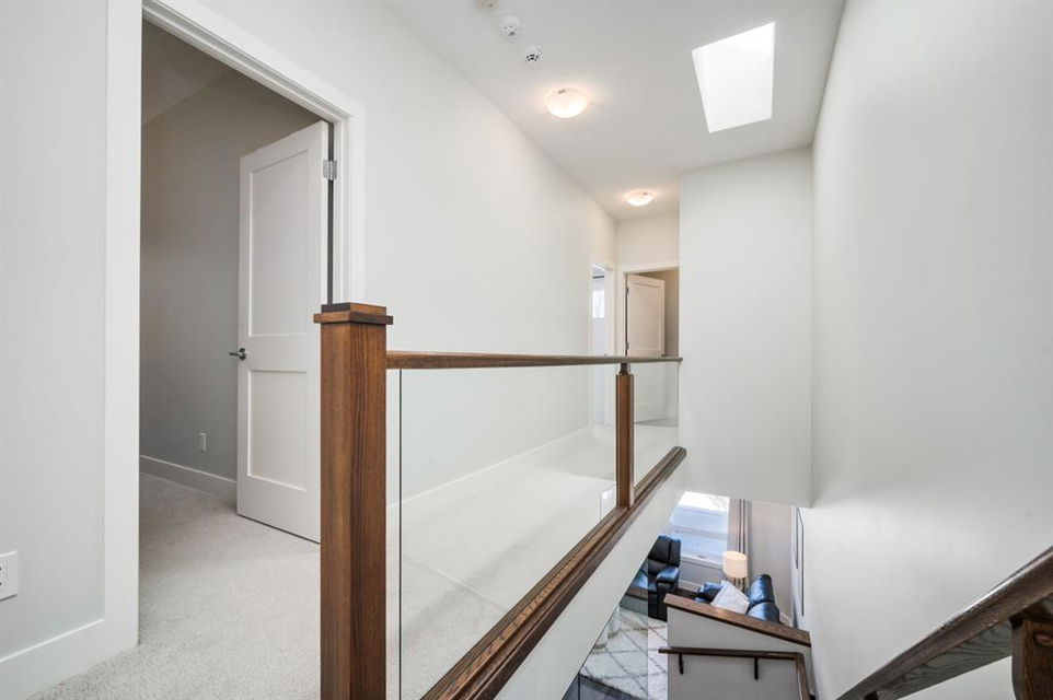 Welcome to this stunning modern gem kept in immaculate condition! An Entirely upgraded 4 plex in family friendly Richmond. Steps to 17th Ave and minutes to Downtown, Shaganappi LRT and local amenities. This modern townhome boasts a fresh and bright open concept with a total of 3 bedrooms and 3.5 bathrooms! Main floor, with 9ft ceilings, expansive windows, large entryway, 2 pc bath and Engineered hardwood throughout. Large dining area complete with chandelier and floor to ceiling modern glass feature wall leads to an open Living area with cozy gas fireplace. The upscale kitchen features an eat-in Peninsula Island, modern white backsplash, glistening quartz countertops and stainless steel appliances. Open riser staircase with feature glass leads you to the upper level featuring two master bedrooms with en suites one upgraded and refinished in a beautiful white Cacutta tile. Both bedrooms also have walk in closets, large windows & upper level laundry! Basement is completely developed with 9 foot ceilings, large 3rd bedroom, another full bathroom and large rec room. Close to schools, parks, transit and downtown, this house is an exceptional opportunity in one of Calgary’s most desired neighborhoods. Includes one single indoor parking space as well as Air Conditioning throughout the unit! With almost 2000 square feet of developed modern living space, endless features and close to everything you need! Don’t forget to check pout the video tour! Cove view today before its gone!