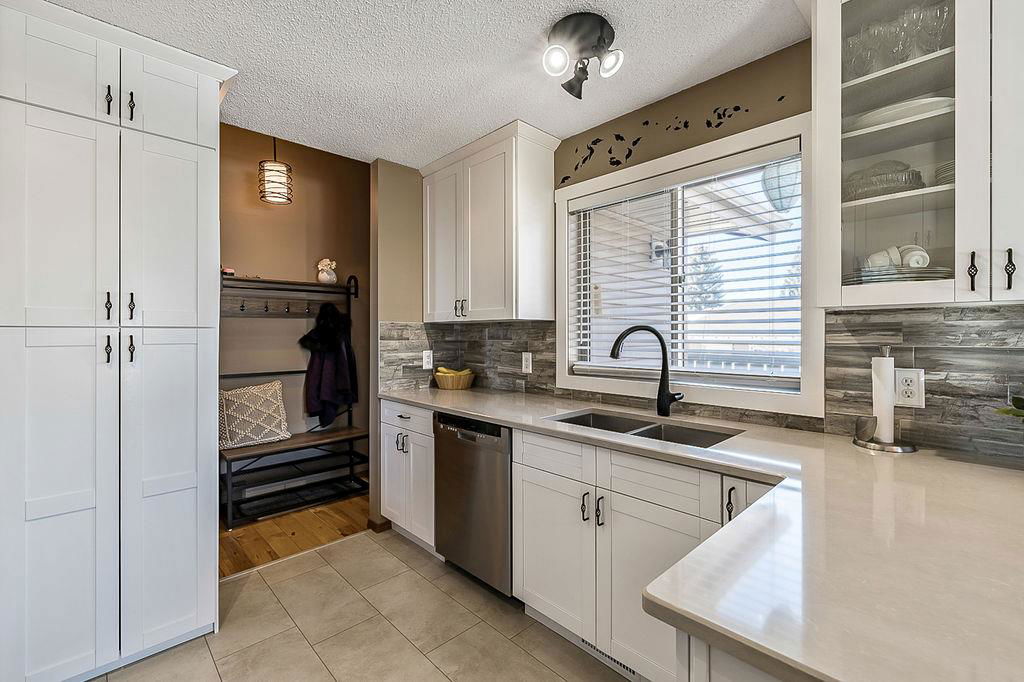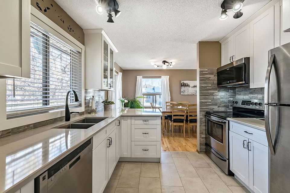 CHARMING four-level-split with DOUBLE DETACHED HEATED GARAGE and 2000sq.ft.+ developed space in DOWNEY! Impeccably kept, flooded with natural light & UPDATED WITH SUPERB FEATURES INSIDE & OUT. **Click 3D video** for virtual walkthrough and see why this home is one of the best bets in town! Main floor features living room with huge window & hardwood floors, spacious dining room, and gorgeous kitchen with floor to ceiling white cabinetry, quartz countertop, stone backsplash & stainless steel appliances. A few steps up from living room you will find two bedrooms and full bathroom. Lower level features spacious & bright rec room with fire place, third bedroom and second full bathroom. And just a few steps down you will find a study/gym and fourth bedroom. All this, on a gorgeous corner lot with plenty of room for lounging on front or back decks, gas line for BBQ, amazing mature vegetation with perennial gardens, double detached garage & shed to boot. List of updates – kitchen (2019), bathroom (2017), a/c (2020), siding & stone (2018), garage door overhead (2016), shingles (2012), hot water heater (2022), PLUS replaced windows, water pipes, electrical panel, front deck/steps, screen doors & the list goes on! If you’re looking for a superb bungalow-like home with double garage in an awesome neighbourhood, then this is the one!!!