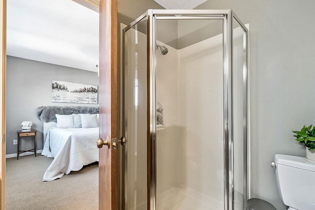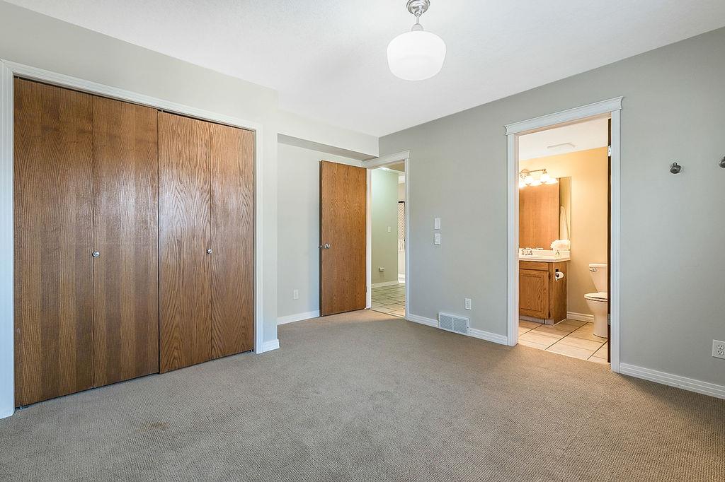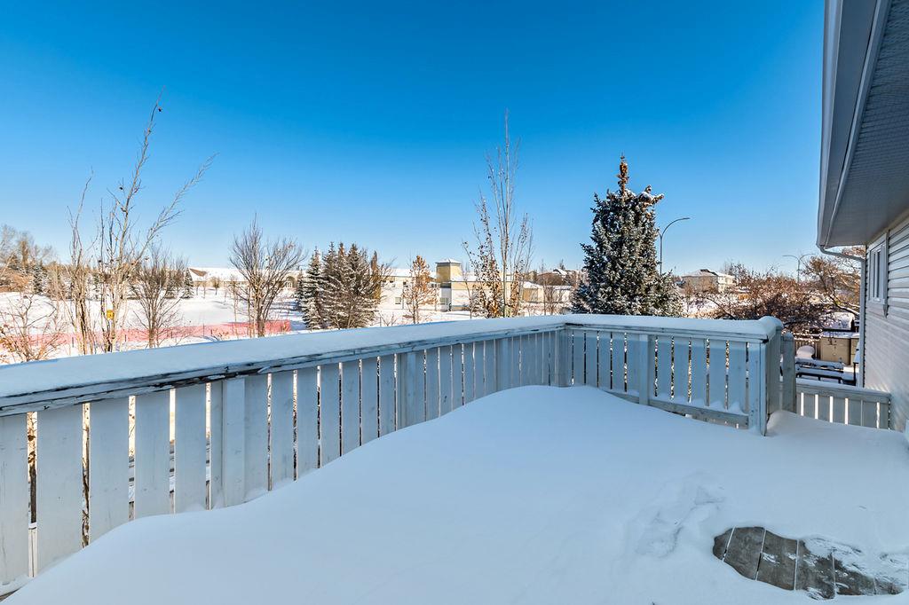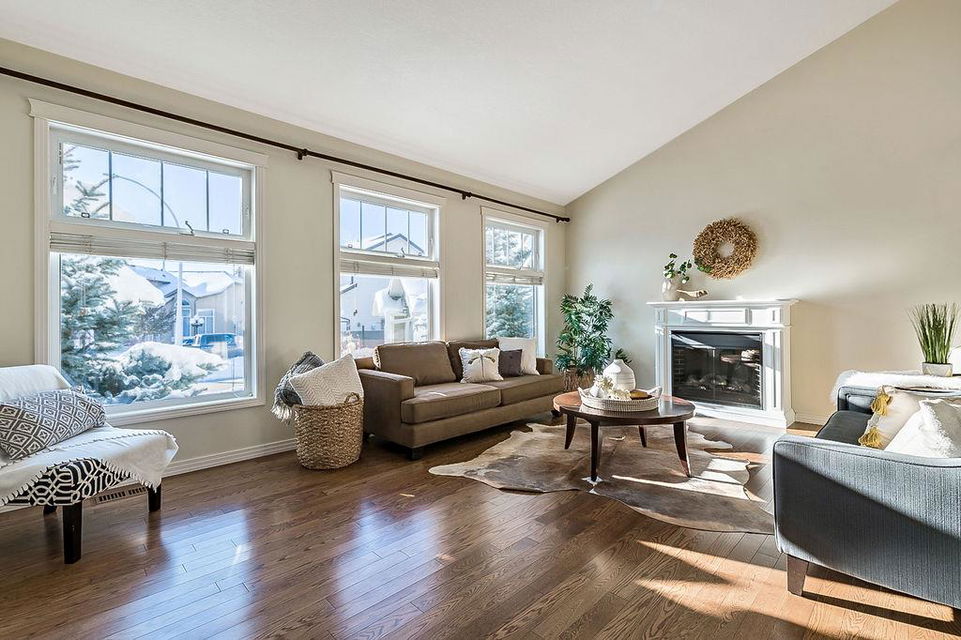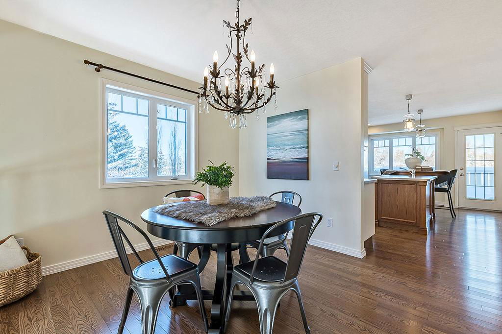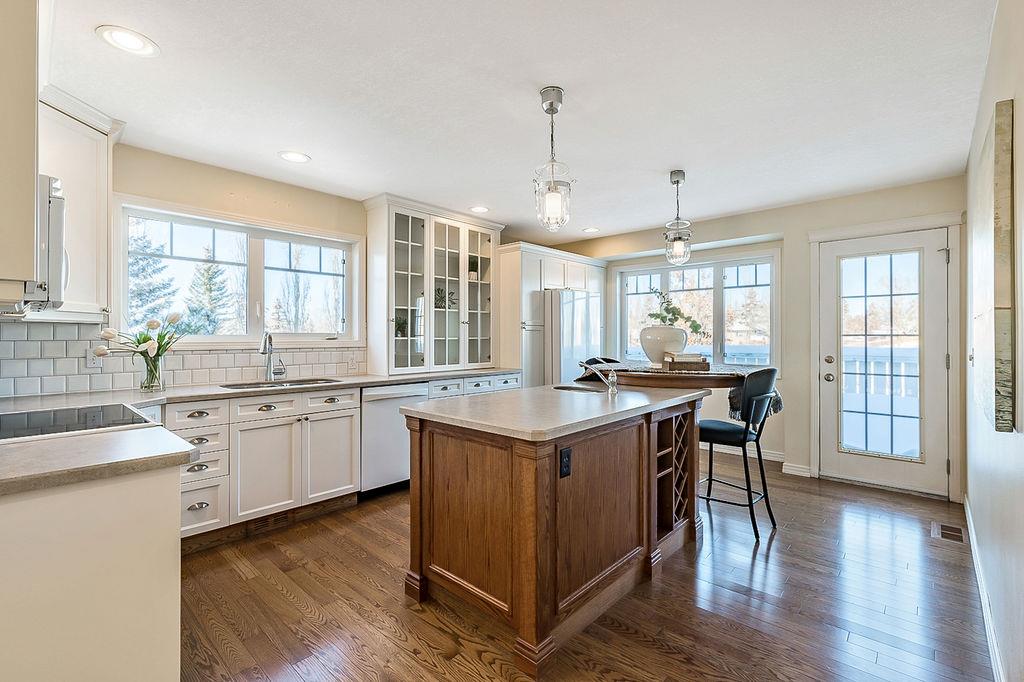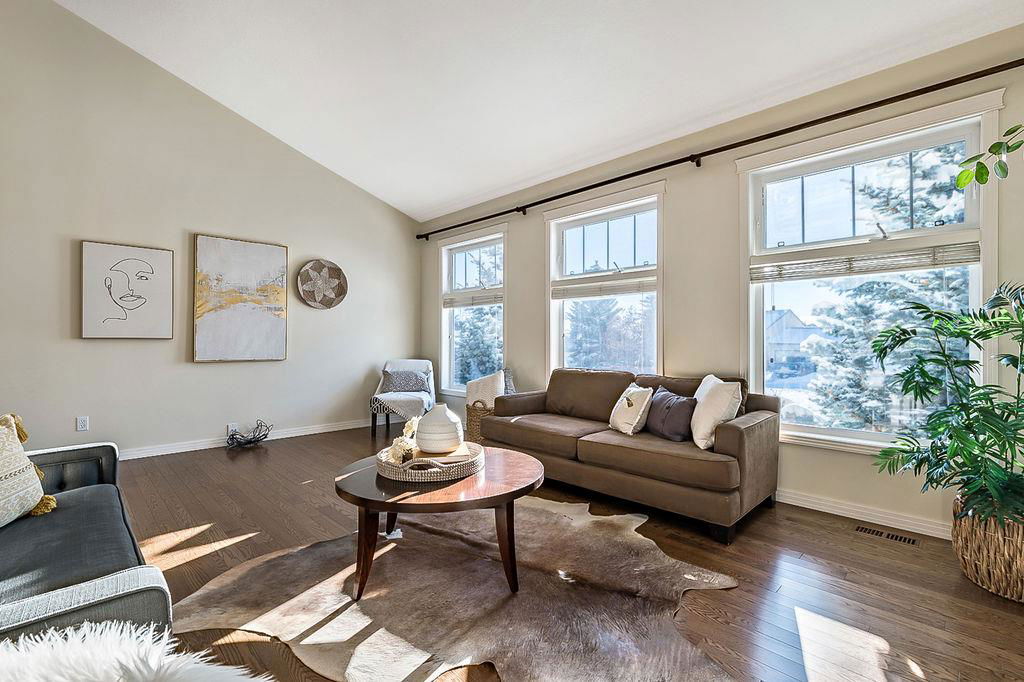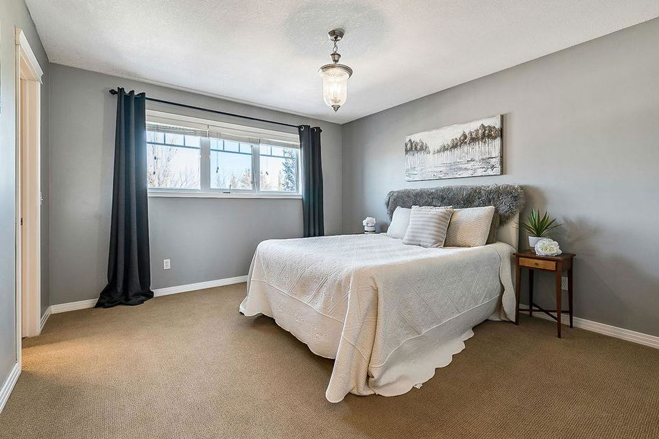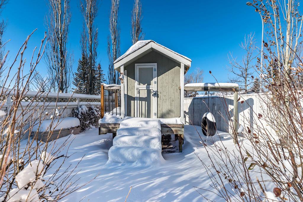 GORGEOUS split level with double attached garage, 2150sq.ft.+ above grade development, VAULTED CEILING, amazing natural light, WHITE KITCHEN plus superb updates throughout … all in the very awesome neighbourhood of Downey, for under $570K! STEP IN (see 3D for walk-through video) and FALL IN LOVE with the warm ambiance and charm of this unique home. Living room is spacious & bright with soaring vaulted ceiling, large windows, and electrical fireplace. Kitchen is elegant & beautiful with white cabinetry and oversized island & eating nook. Separate dining room is perfectly located adjacent to the kitchen & overlooks living room. Home boasts three bedrooms up, including primary bedroom with ensuite and walk-in closet, a fourth bedroom (or study) on main floor, PLUS family room with fireplace and double French doors to back yard. Basement is undeveloped & offers plenty of room for a games room, gym, storage, etc. Back yard is park-like setting and features mature trees and shrubs, shed & more. Home has been meticulously cared for over the years and shows pride of ownership with many improvements: paint (2022), hardwood & carpet (2014), kitchen (2005), siding & doors & windows (2005). This amazing Downey home is just a few minutes walking distance from recreation centre, schools, parks and pathways, close to shopping and amenities, and only 15 minutes from Calgary.