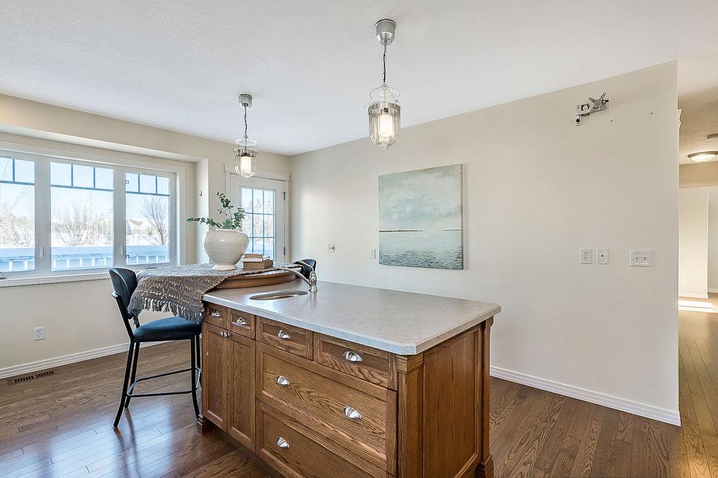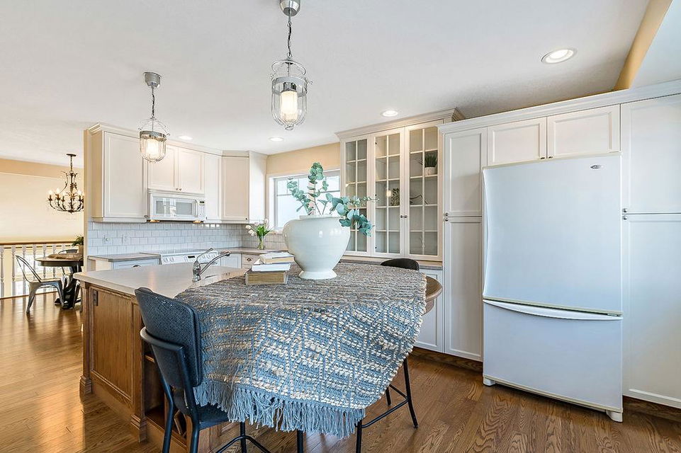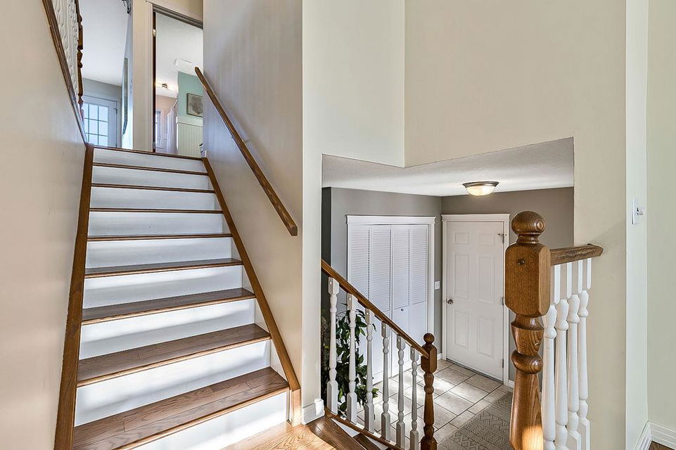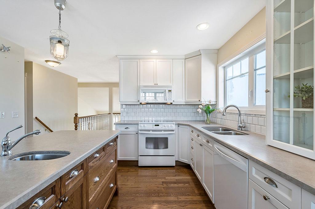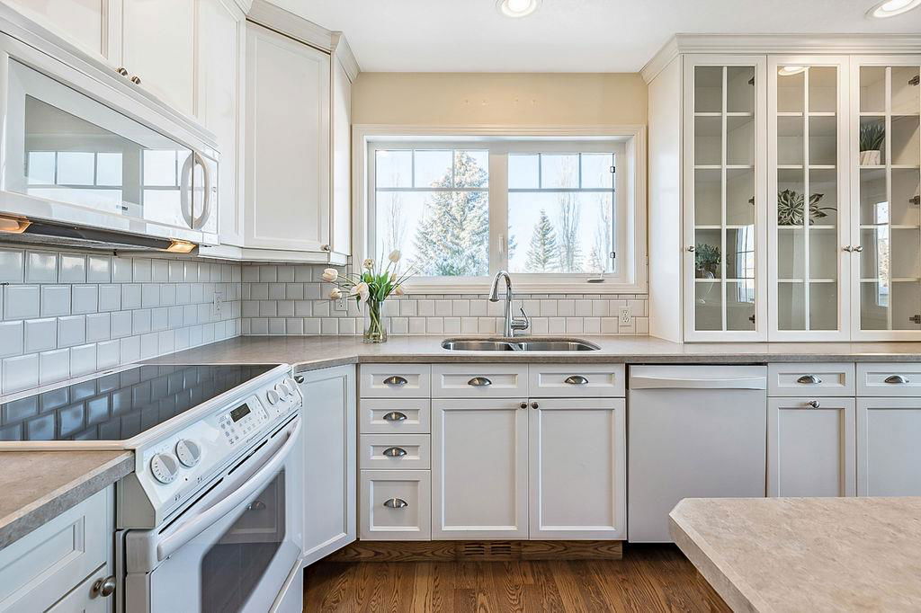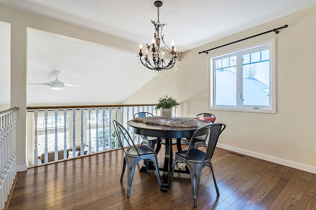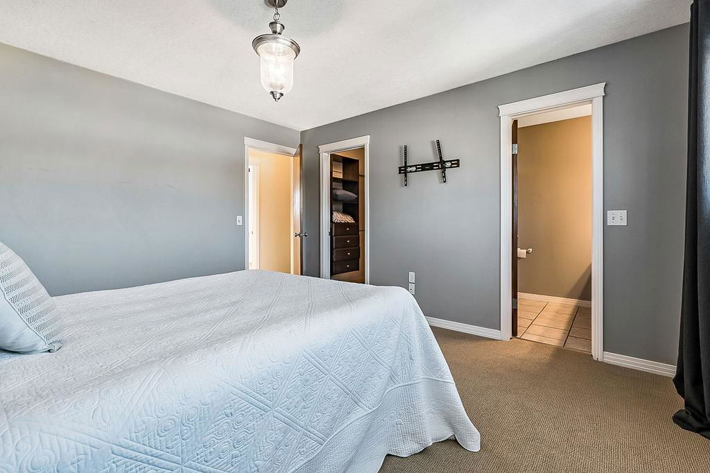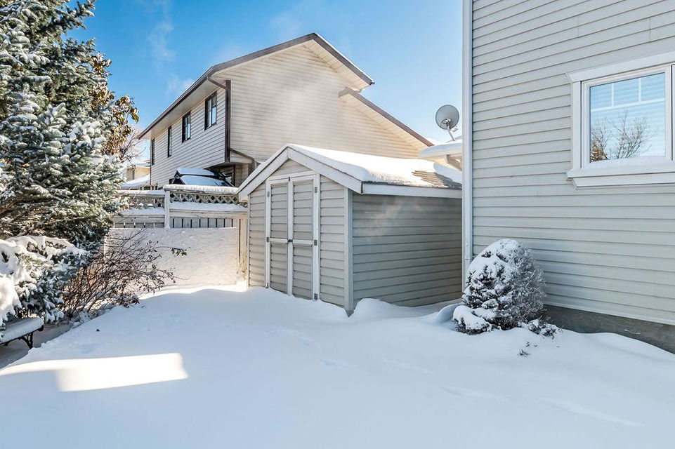 GORGEOUS split level with double attached garage, 2150sq.ft.+ above grade development, VAULTED CEILING, amazing natural light, WHITE KITCHEN plus superb updates throughout … all in the very awesome neighbourhood of Downey, for under $570K! STEP IN (see 3D for walk-through video) and FALL IN LOVE with the warm ambiance and charm of this unique home. Living room is spacious & bright with soaring vaulted ceiling, large windows, and electrical fireplace. Kitchen is elegant & beautiful with white cabinetry and oversized island & eating nook. Separate dining room is perfectly located adjacent to the kitchen & overlooks living room. Home boasts three bedrooms up, including primary bedroom with ensuite and walk-in closet, a fourth bedroom (or study) on main floor, PLUS family room with fireplace and double French doors to back yard. Basement is undeveloped & offers plenty of room for a games room, gym, storage, etc. Back yard is park-like setting and features mature trees and shrubs, shed & more. Home has been meticulously cared for over the years and shows pride of ownership with many improvements: paint (2022), hardwood & carpet (2014), kitchen (2005), siding & doors & windows (2005). This amazing Downey home is just a few minutes walking distance from recreation centre, schools, parks and pathways, close to shopping and amenities, and only 15 minutes from Calgary.