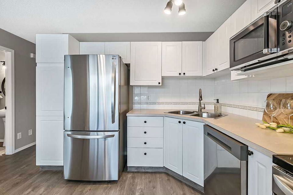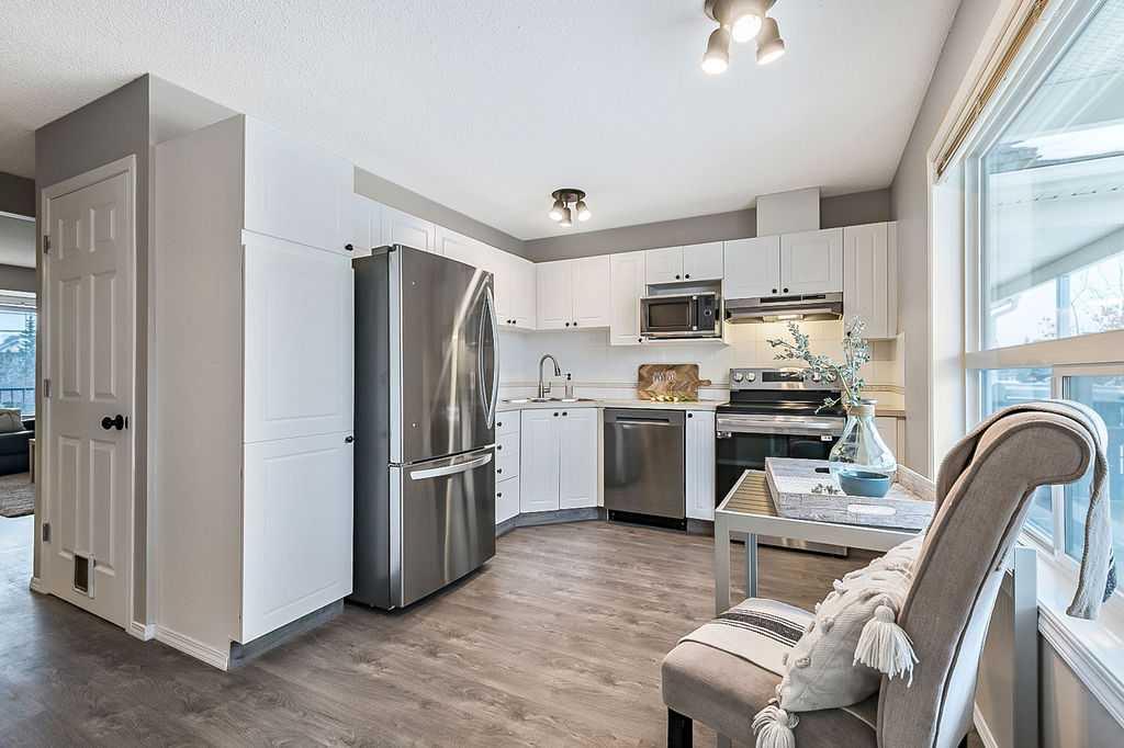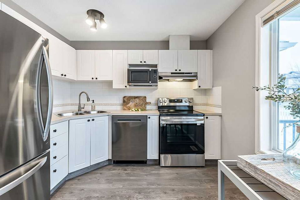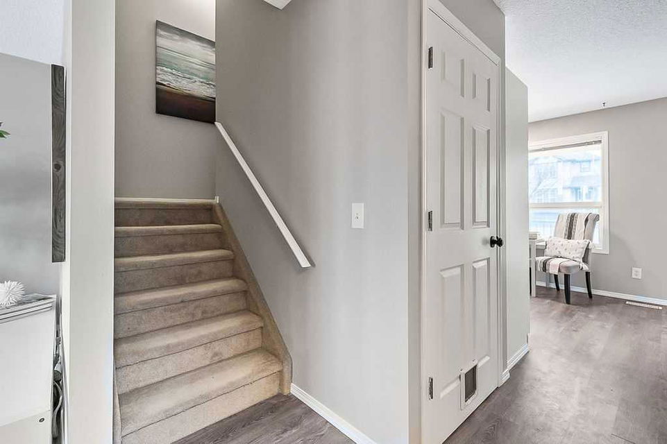 **OPEN HOUSE Sun 3-5** NEWLY UPDATED, FULLY FINISHED 4 bedroom townhome in the beautiful LAKE COMMUNITY of Arbour Lake! Hands down one of the nicest units on market with gorgeous flooring, contemporary colours, new appliances, new hardware & new plumbing throughout. Shows 10/10 and available for quick possession! MAIN FLOOR features living room with large window, dining room, kitchen with white cabinetry & access to rear deck, and updated half bath w laundry. UPPER FLOOR features three bedrooms and gorgeous three piece bath. LOWER LEVEL has fourth bedroom, spacious rec room, and full bathroom. Front & back porch offer private outdoor sitting areas, and assigned stall right in front of the unit offers convenient parking. All this, in the beautiful community of ARBOUR LAKE, with amazing schools nearby, superb shopping & LRT at Crowfoot, and members-only lake access for year round recreation (swimming, boating, skating, ice-fishing & more!). RECENT UPDATES (approx $40K) – all new SS kitchen appliances, new kitchen cabinet hardware , all new plumbing fixtures, new full basement bathroom, updated main and half bathrooms, new 4th bedroom and additional rec room in basement, new carpet in basement, new hot water heater. NOTE that new basement window will be installed prior to possession.