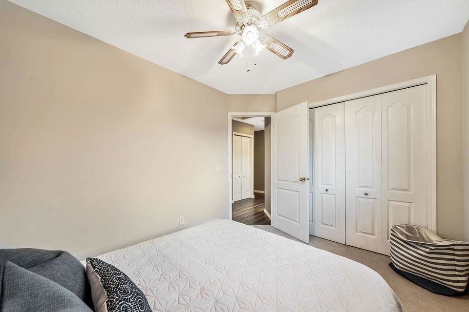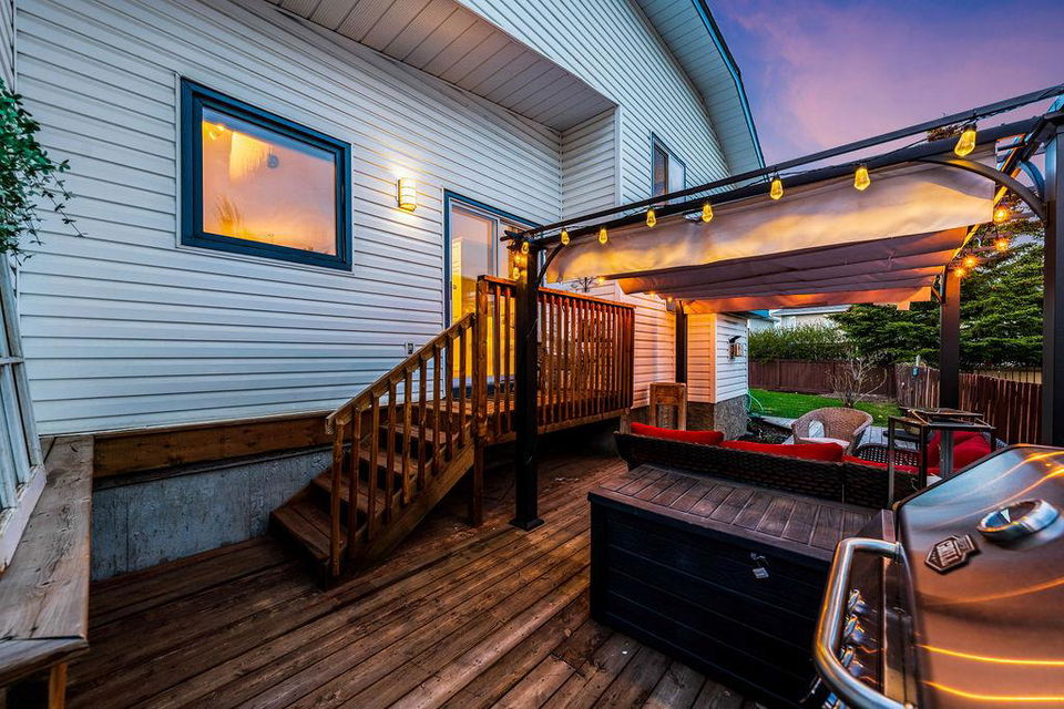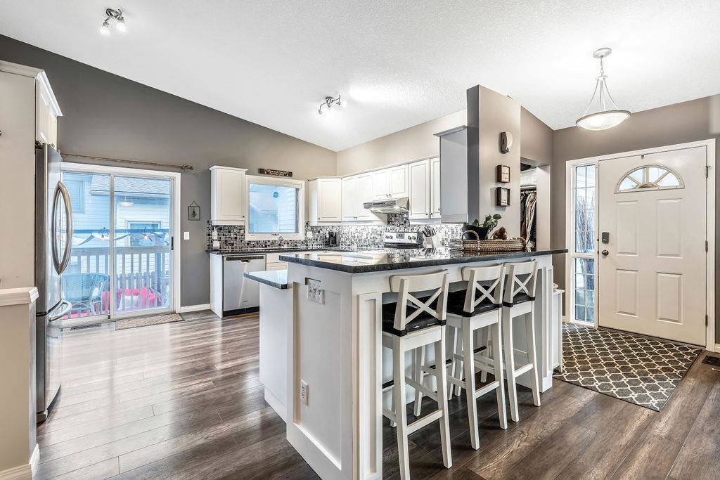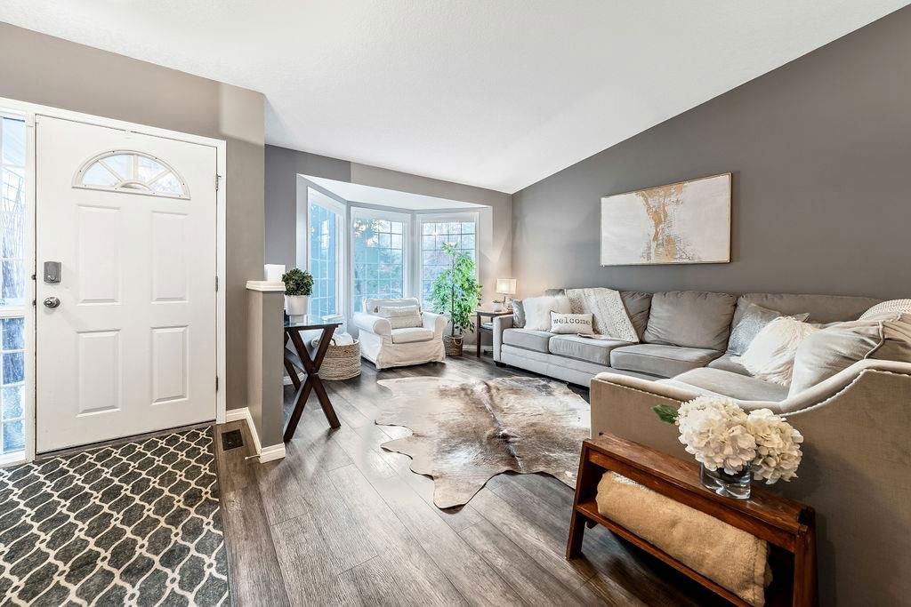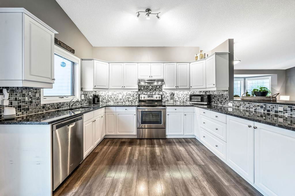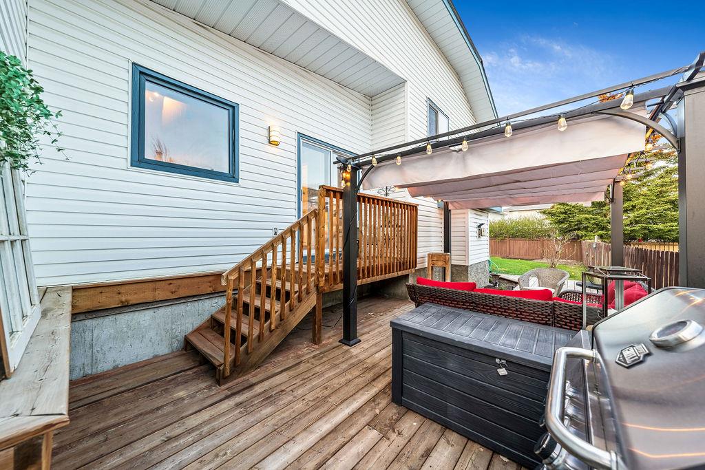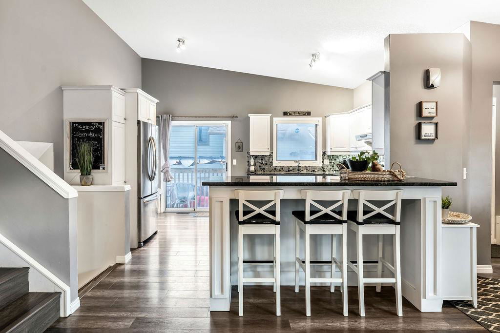 Are you looking for an UPDATED SUNTREE home with 2300sq.ft+ developed space in private cul-de-sac, minutes from schools and parks? This is the one for you then, with gorgeous open concept plan, soaring vaulted ceiling, large windows allowing natural light into home from morning til night! MAIN LEVEL features large white kitchen with granite counters, stainless steel appliances and ample cabinetry, and is open to dining and living rooms with vaulted ceiling & continuous laminate flooring throughout. UPPER LEVEL features primary room with ensuite bathroom & walk-in closet, two additional bedrooms plus full bathroom. LOWER LEVEL with large windows features family room with fire place, study (or fourth bedroom), laundry room & full bathroom. BASEMENT offers plenty more room with gym and fifth bedroom. OUTDOOR LIVING is superb with large deck off of kitchen plus huge yard with shed and fire pit. DOUBLE ATTACHED garage, A/C, and a long list of updates complete this property! RECENT UPDATES: furnace (2023), hot water tank (2016), roof (2015/16), kitchen (2016), upstairs bathrooms (2019), lower-level bathroom (2022), washer/dryer (2016), deck (2019), flooring (2016-2022), some new windows (2020), updated plumbing / removal of poly-B (2023).