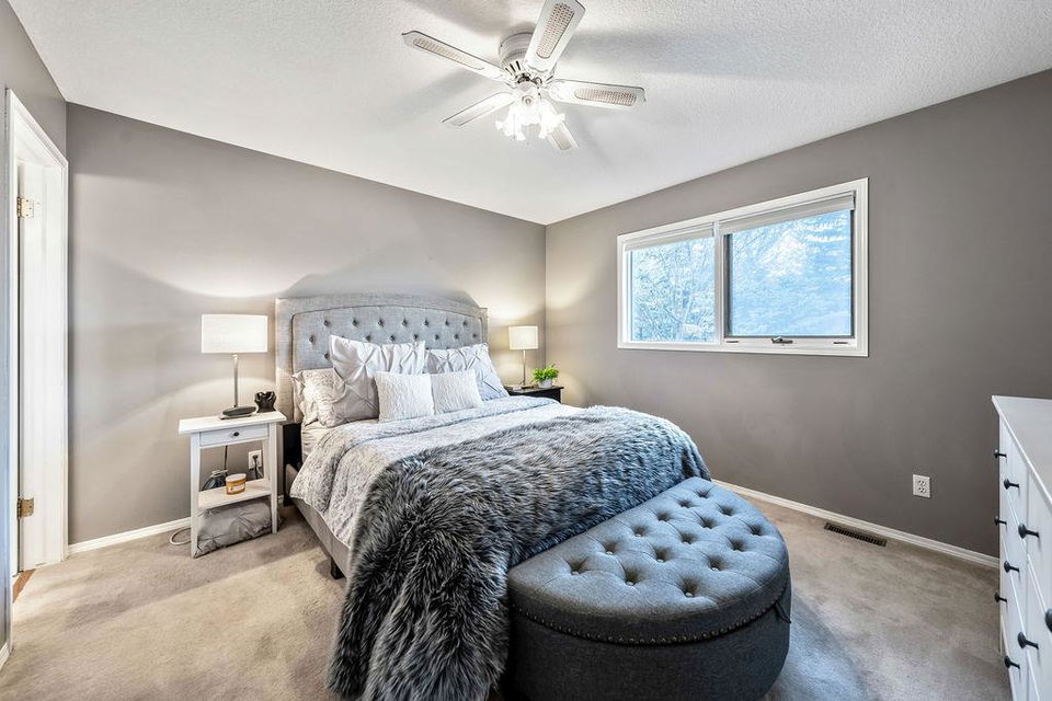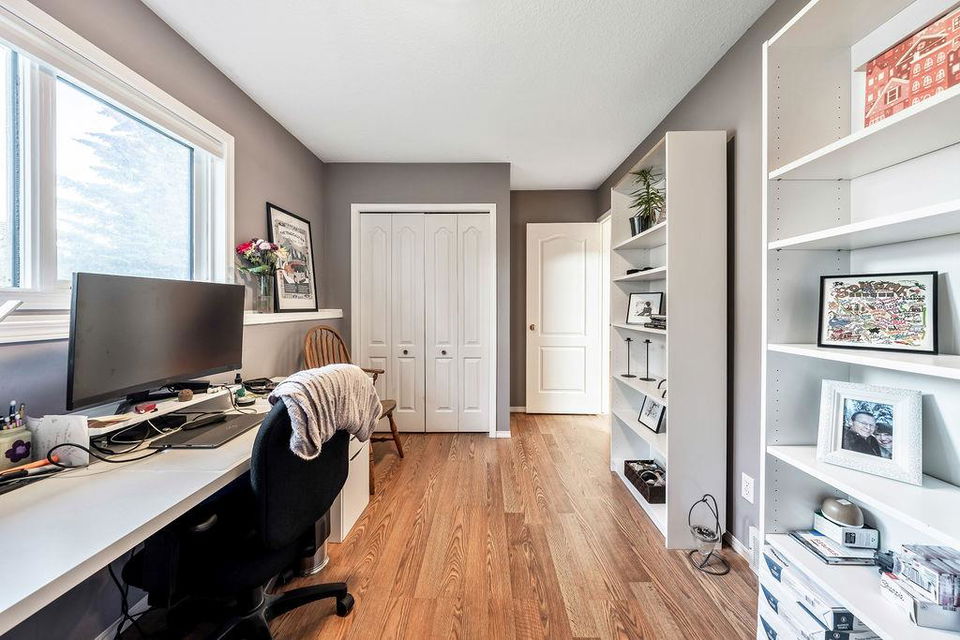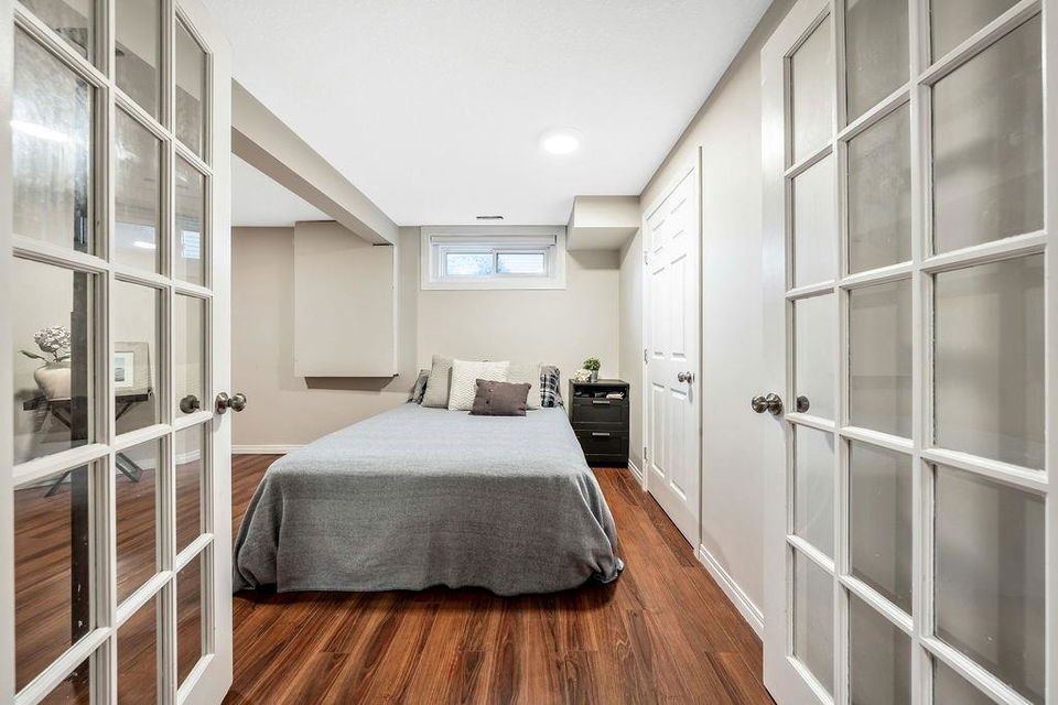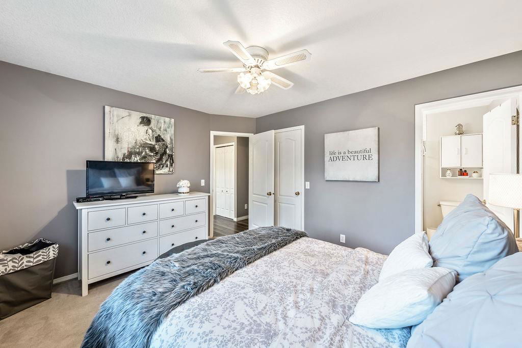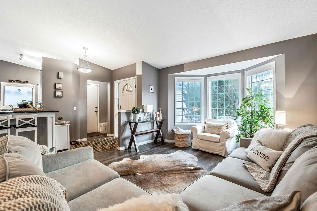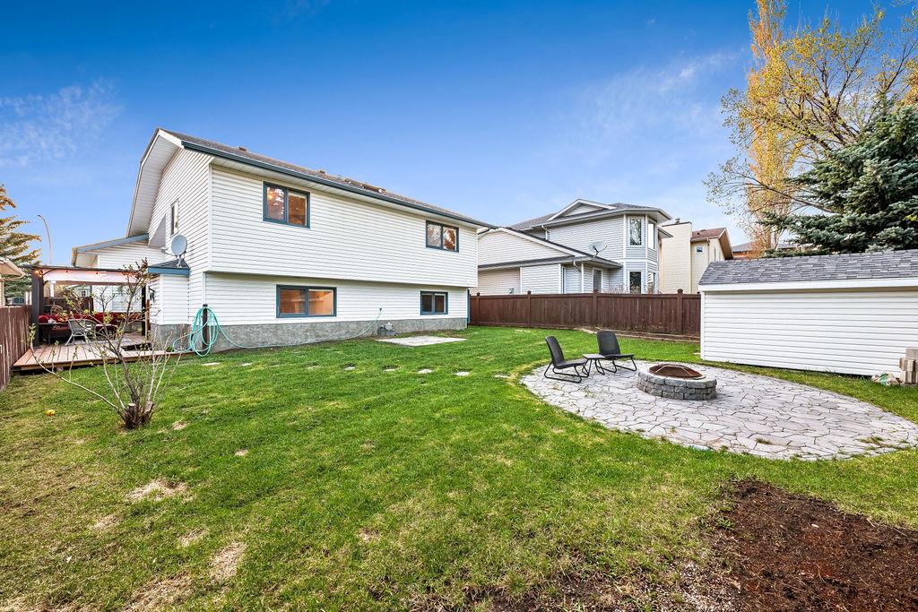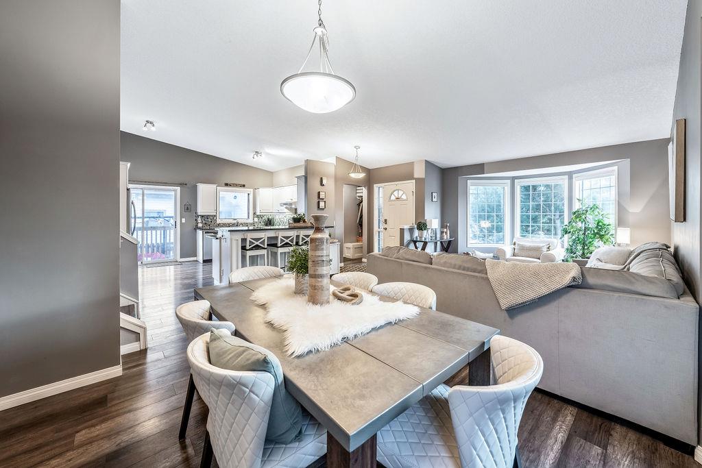 Are you looking for an UPDATED SUNTREE home with 2300sq.ft+ developed space in private cul-de-sac, minutes from schools and parks? This is the one for you then, with gorgeous open concept plan, soaring vaulted ceiling, large windows allowing natural light into home from morning til night! MAIN LEVEL features large white kitchen with granite counters, stainless steel appliances and ample cabinetry, and is open to dining and living rooms with vaulted ceiling & continuous laminate flooring throughout. UPPER LEVEL features primary room with ensuite bathroom & walk-in closet, two additional bedrooms plus full bathroom. LOWER LEVEL with large windows features family room with fire place, study (or fourth bedroom), laundry room & full bathroom. BASEMENT offers plenty more room with gym and fifth bedroom. OUTDOOR LIVING is superb with large deck off of kitchen plus huge yard with shed and fire pit. DOUBLE ATTACHED garage, A/C, and a long list of updates complete this property! RECENT UPDATES: furnace (2023), hot water tank (2016), roof (2015/16), kitchen (2016), upstairs bathrooms (2019), lower-level bathroom (2022), washer/dryer (2016), deck (2019), flooring (2016-2022), some new windows (2020), updated plumbing / removal of poly-B (2023).