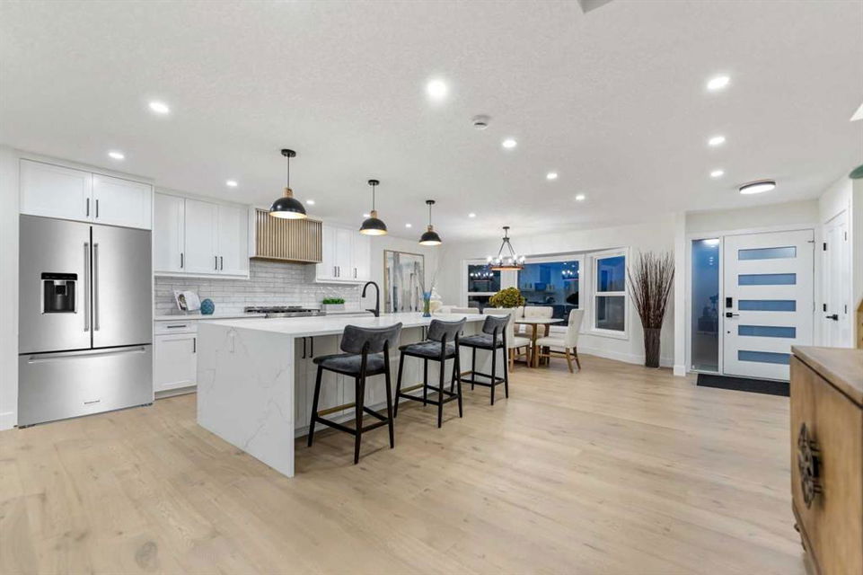 LOCATION!! | FULLY RENOVATED | 1,510 SQFT ABOVE GRADE | over 2,800 SQFT OF LIVING SPACE | 4 BEDROOMS AND 3 FULL BATHS | 5 PIECE MASTER ENSUITE | NEW DOUBLE GARAGE WITH EPOXY FLOOR | NEW HARDY BOARD EXTERIOR | NEW WINDOWS AND DOORS | NEW FURNICE AND HOTWATER TANK | HOME GYM | NEW ELECTRICAL SUB PANEL | – Welcome to 1160 Lake Twintree Dr SE, directly across from the tranquil Twintree Park and providing lake access. This property has been meticulously upgraded inside and out, with renovations completed under city permits. The exterior showcases brand-new Hardy Board siding, durable Euro shield rubber roofing, brand-new windows and doors, ensuring modern style, energy efficiency, and long-lasting quality. Step inside to discover an open-concept layout adorned with luxury finishes throughout. The New high-end kitchen is a chef’s dream, showcasing custom cabinetry, a double cabinet waterfall island, and exquisite quartz countertops. New hardwood flooring graces the main and upper level, the living room is warmed by a cozy new gas fireplace. The primary bedroom has custom closets, gives you the option of hanging or placing your clothes on customizable shelving. Further the primary serves as a sanctuary, complete with a 5-piece spa-like ensuite, heated floors and a spacious walk-in closet. Additional practical features include a custom mudroom and a convenient main-floor laundry room equipped with new washer and dryer units with steam functionality. The lower level is ideal for entertaining, featuring premium carpeting, a large wet bar, an entertainment center with an electric fireplace, a wine closet, and a sleek glass-enclosed home gym. Beautiful lighting fixtures illuminate every room, enhancing the home’s luxurious feel. New Detached Double Garage with beautiful epoxy floor, Ample amount of parking space on both sides of street for large gatherings. Step outside to enjoy the landscaped grounds, complete with new grass and a newly installed patio in the backyard—perfect for outdoor entertaining, and relaxation. Conveniently located near excellent schools and shopping, this home truly offers the perfect blend of luxury and practicality. With a new high efficiency furnace and hot water tank, this property is move-in ready. Don’t miss the opportunity to own this exceptional home in a prime location with lake access! Book a showing today. (Further upgrades can be negotiatable with seller such as AC, Drywall in garage, more storage options , etc..)