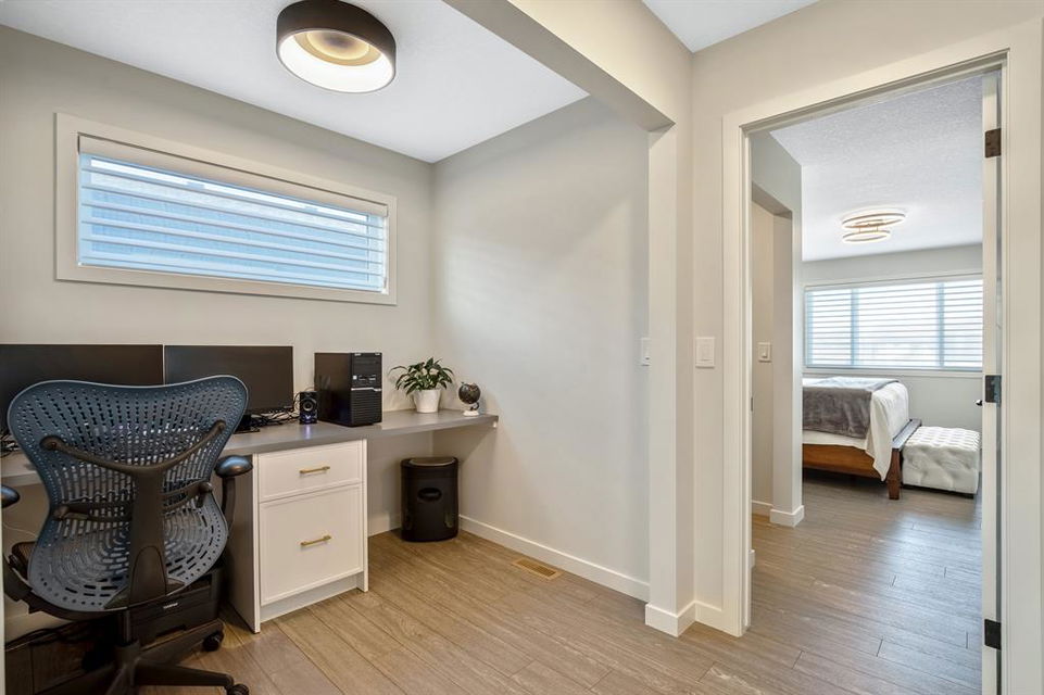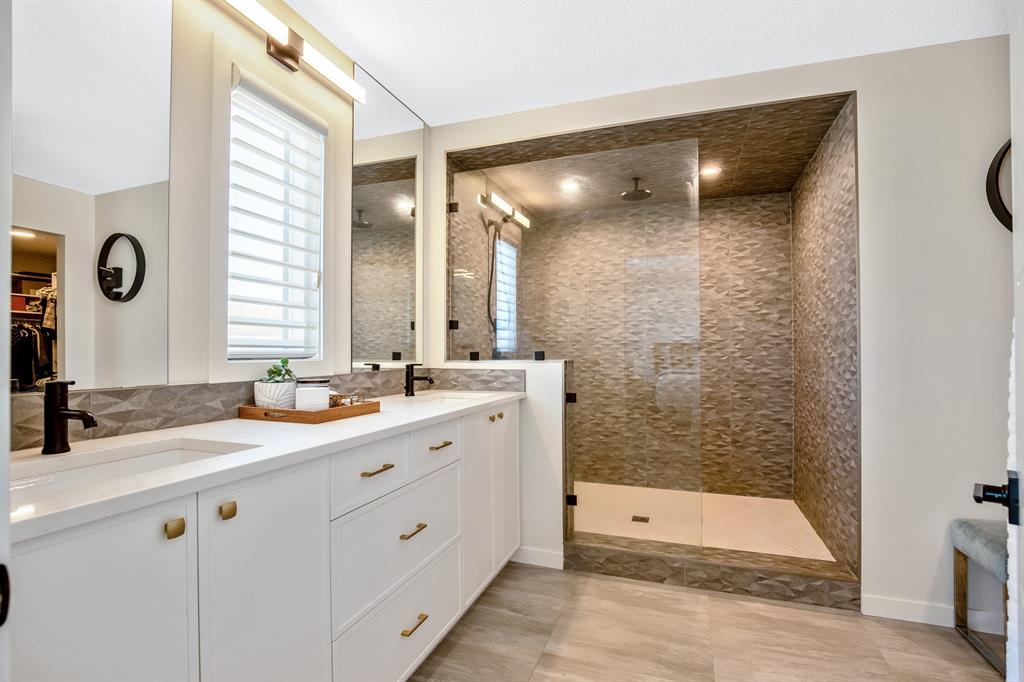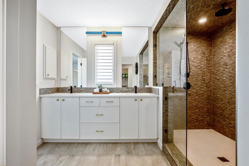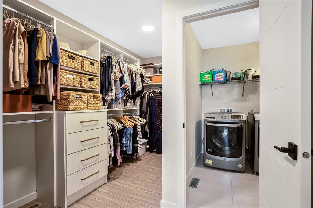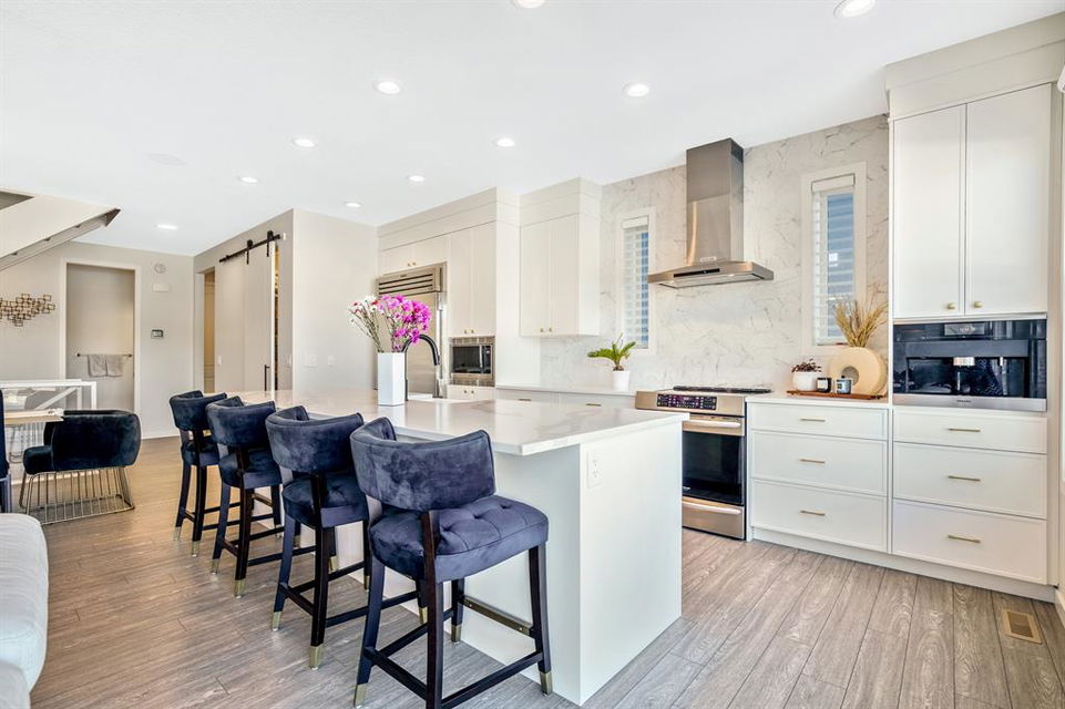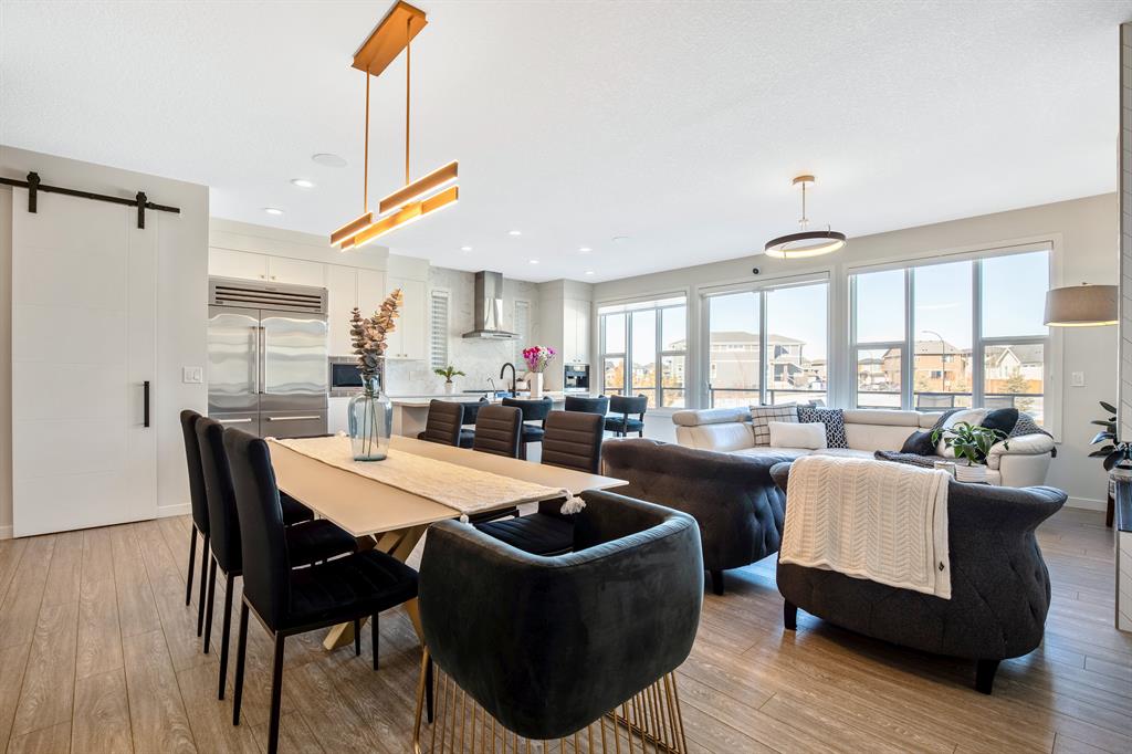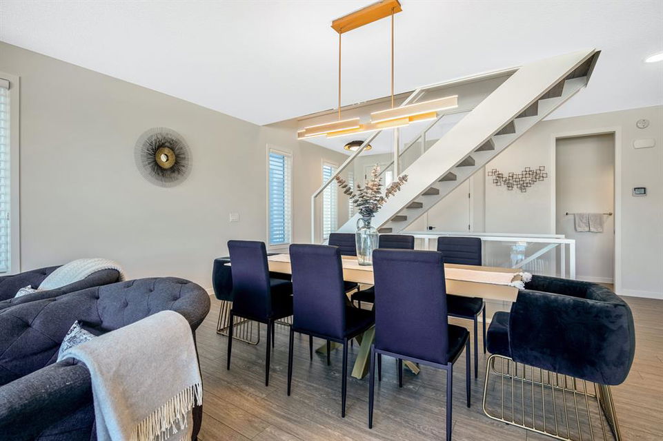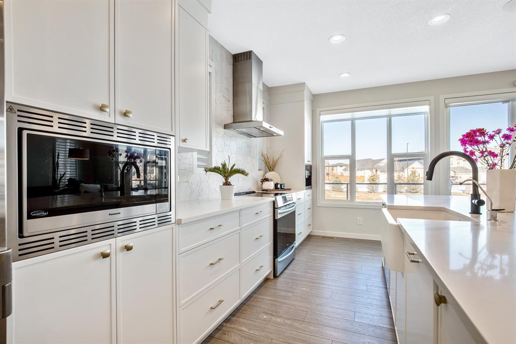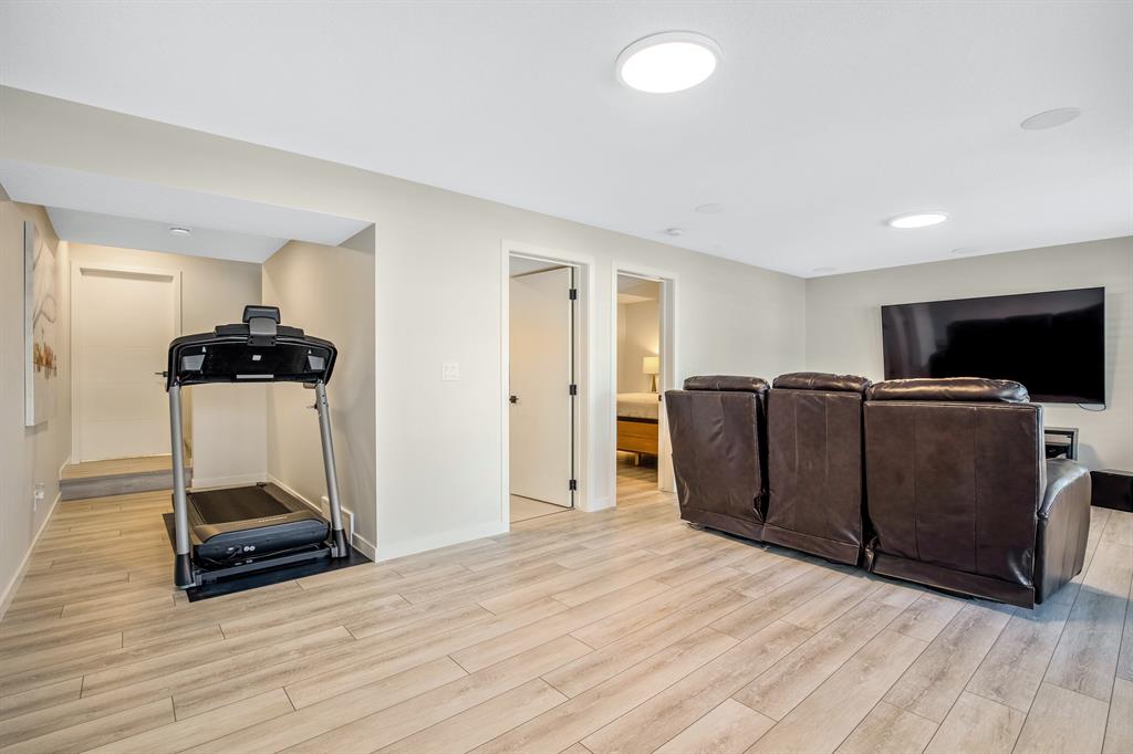 Perfectly situated on a spacious lot that backs onto a green space with a walking path that leads directly to bow river! Upon entering the home, you are greeted by 9’ ceilings & a beautiful open riser staircase with glass railings. The open-concept main floor offers a spacious dining room, and the floor-to-ceiling tiled fireplace compliments the living room. The kitchen is a chef’s dream! Oversized Sub-Zero fridge, built-in Miele coffee machine, induction stove, stainless steel appliances, quartz counters, full height cabinets, eating bar & large walk-in pantry. The 2pc bathroom & spacious mud room with a built-in bench complete the main floor. Luxury laminate flooring flows throughout all three levels. Upstairs is home to a centred bonus room, desk nook & convenient upper laundry. The master retreat features dual walk-in closets with organizers & a 5pc ensuite that includes double sinks, quartz counters, a water closet & a massive shower with 10mm glass, a hidden niche, a rainfall shower head & wand. The two additional bedrooms on the upper floor are spacious, with walk-in closets. The guest bathroom is uniquely designed with a pocket door that separates the dual sinks & shower/toilet. Perfect for siblings in the morning! The fully finished walkout basement was completed by the Builder (Cedarglen) and comes complete with a 4th bedroom, 4pc bathroom, family room & storage. Enjoy entertaining on the spacious upper deck that overlooks the professionally landscaped yard and features a glass railing and gas line for an optional BBQ or heater. The covered stamped concrete patio is the perfect place to escape the sun in the summer months. The garage is insulated/drywalled & features an electric car charging station. Additional upgrades to note are central AC, upgraded light fixtures throughout, black hardware/faucets & built-in speakers. Enjoy quick access to multiple walking trails, bow river, amenities & playgrounds.