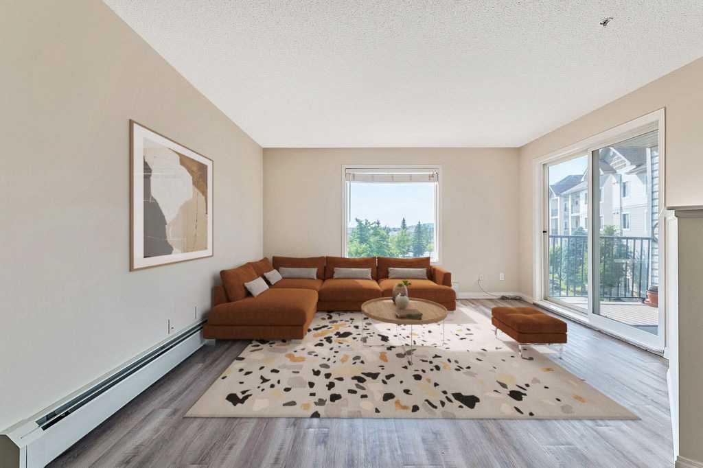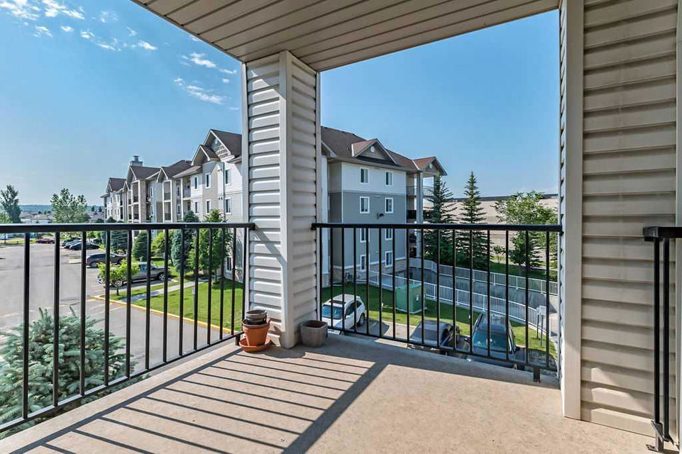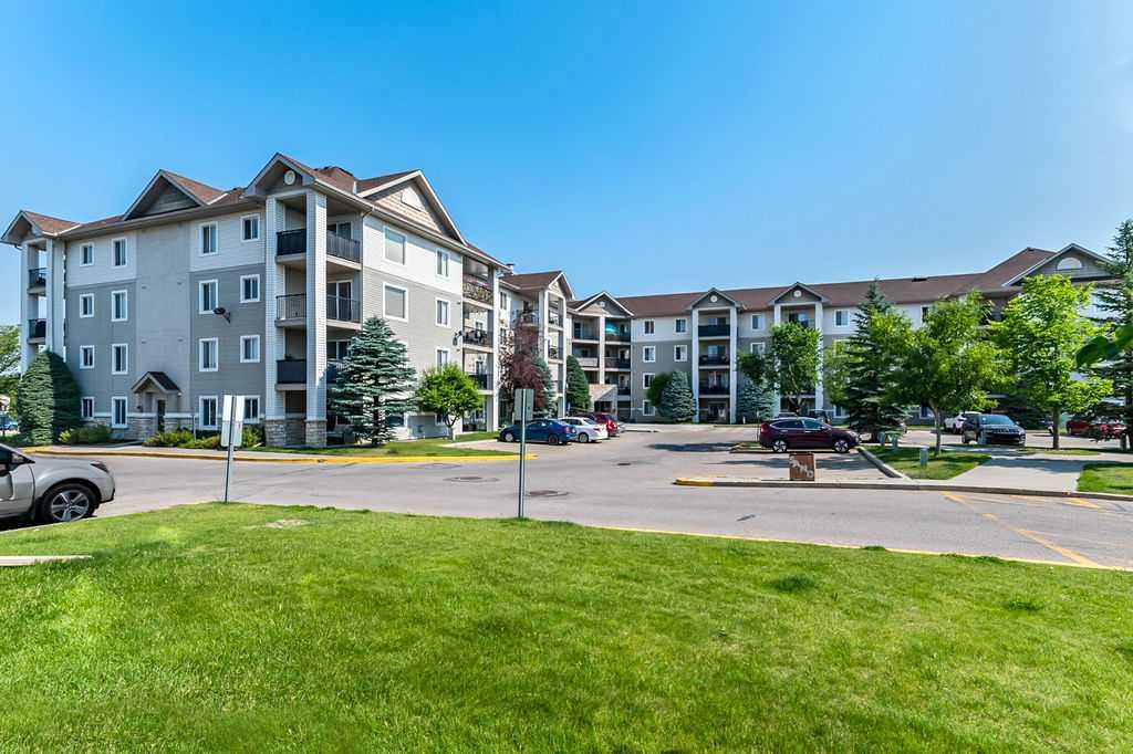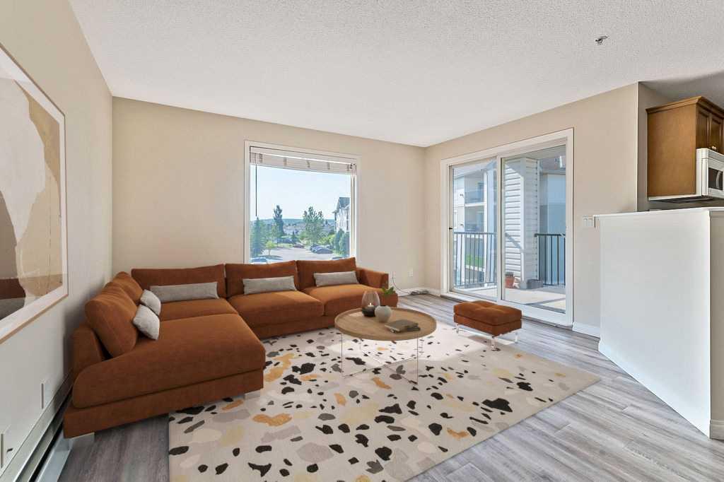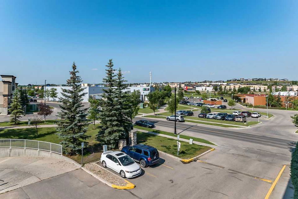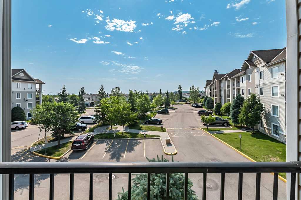 SUNNY & GORGEOUS 2bdrm 2 bath third floor CORNER UNIT with large SE balcony and windows all around … truly one of the best units in Cimarron Common! Step in (click 3D for virtual walkthrough), and you will immediately be welcomed by spacious entryway, large open concept living room and dining area, plus kitchen with ample counter & cupboard space! Large primary bedroom offers deep closet and comfortable 4pc ensuite bathroom. Second bedroom and second full bathroom, together with in-suite laundry, and large balcony with gas line for BBQ complete the unit. The assigned outdoor parking stall is conveniently located right in front of the entrance door (#110). Condo fees include heat, electricity, insurance, water, common area maintenance, professional management & reserve fund. Building is well run, board is easy to communicate with, and furry friends are welcome with some restrictions upon pet approval. Location, location, location … yes, it’s simply superb with shopping, schools, parks, restaurants, medical centre & more just steps away! Unit is move-in ready with quick possession possibility.