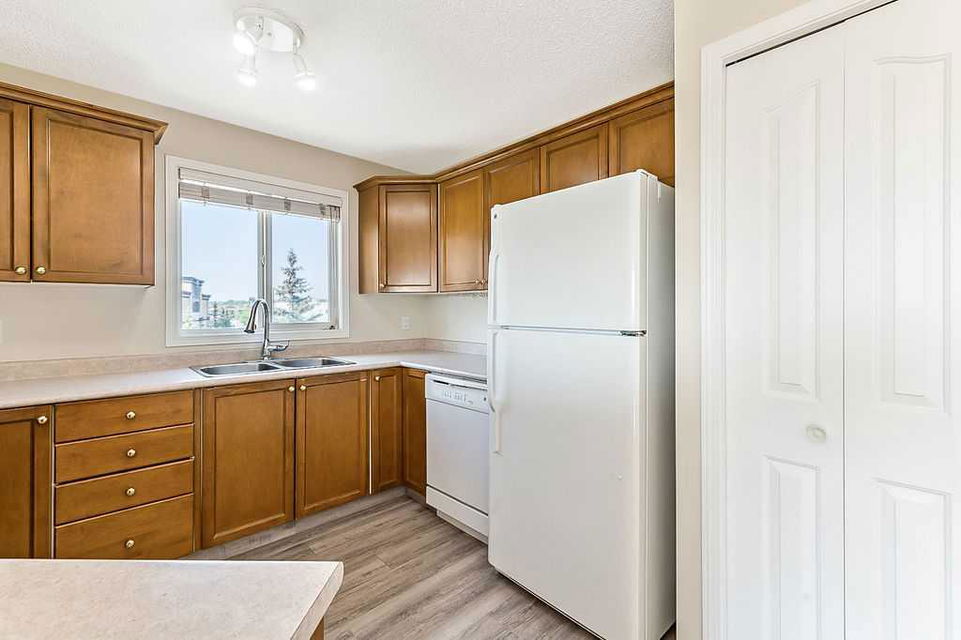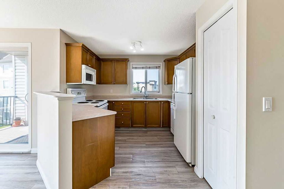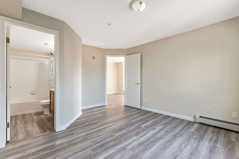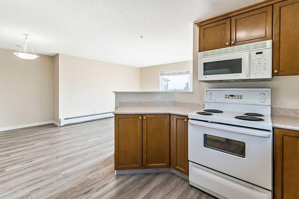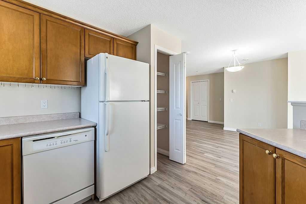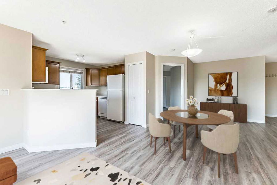 SUNNY & GORGEOUS 2bdrm 2 bath third floor CORNER UNIT with large SE balcony and windows all around … truly one of the best units in Cimarron Common! Step in (click 3D for virtual walkthrough), and you will immediately be welcomed by spacious entryway, large open concept living room and dining area, plus kitchen with ample counter & cupboard space! Large primary bedroom offers deep closet and comfortable 4pc ensuite bathroom. Second bedroom and second full bathroom, together with in-suite laundry, and large balcony with gas line for BBQ complete the unit. The assigned outdoor parking stall is conveniently located right in front of the entrance door (#110). Condo fees include heat, electricity, insurance, water, common area maintenance, professional management & reserve fund. Building is well run, board is easy to communicate with, and furry friends are welcome with some restrictions upon pet approval. Location, location, location … yes, it’s simply superb with shopping, schools, parks, restaurants, medical centre & more just steps away! Unit is move-in ready with quick possession possibility.