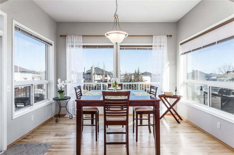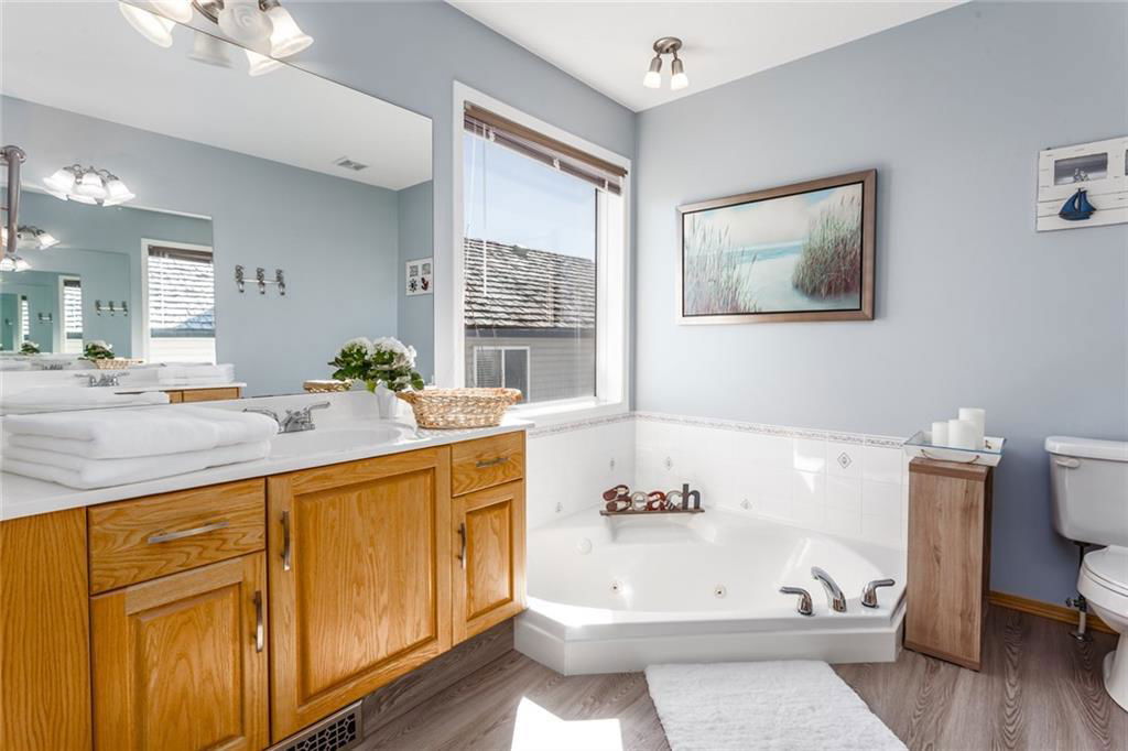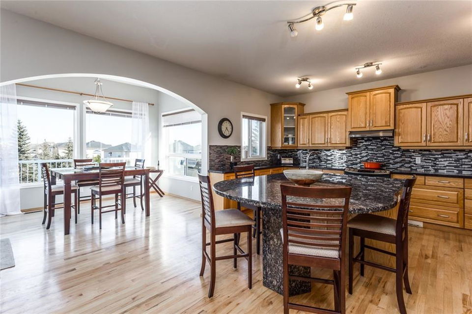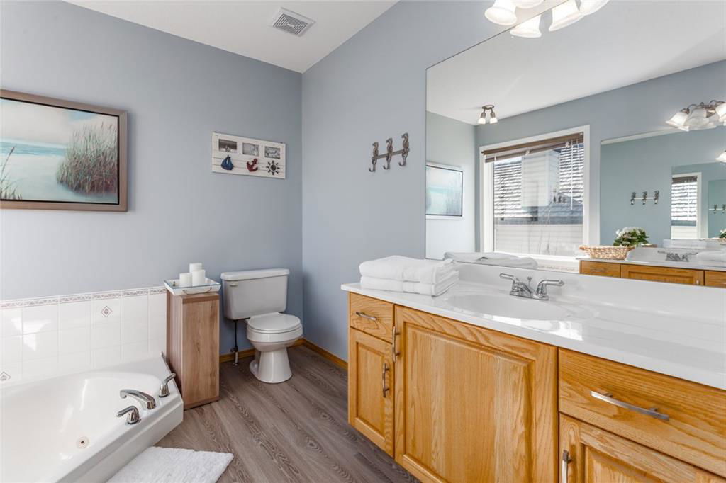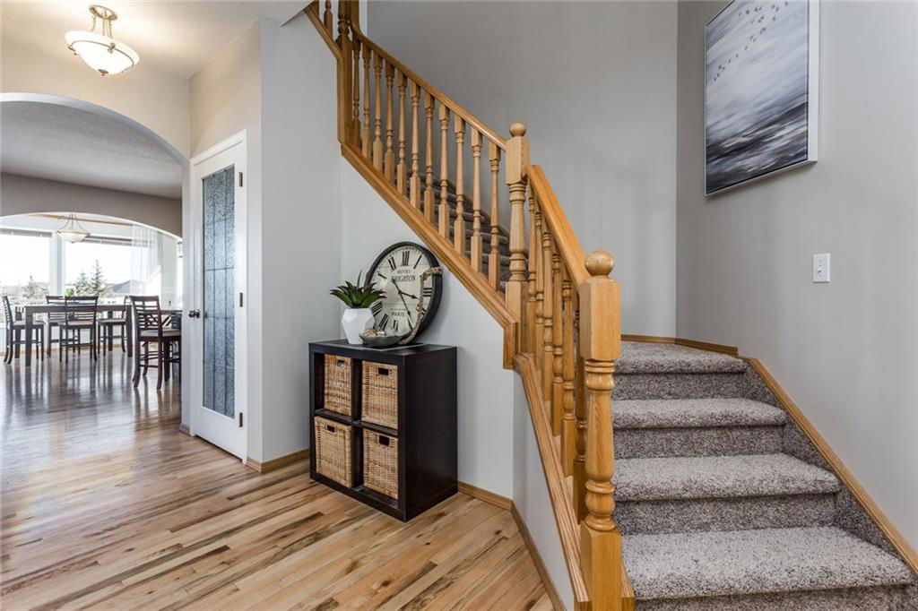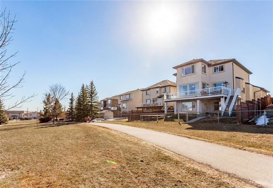 Beautiful bright & spacious 2598SQ.FT. family home with 5 bdm, 3.5 bath & fully developed 1250SQ.FT. WALK-OUT BASEMENT. Mountain views in front & acres of beautifully treed parks & pathways in the back! Award-winning elementary school, huge playground, and private lake just steps away! Click 3D for video for virtual walk-through … Main floor features beautiful open concept plan with hardwood floors, huge living room, spacious kitchen & granite island, butler’s pantry with counter and room for freezer, den w built-in bookcases, reading room, laundry, & mudroom. Second floor features master bdrm with separate sitting area, ensuite bathroom & walk-in closet, three other bedrooms and bathroom. Basement is perfectly set up for large family or nanny with its own a bar/kitchenette, huge recreation room, bedroom and bathroom. Step outdoors to enjoy hot tub out back and easy access to great walking paths or Crystal lake just around the corner –> Home is truly exceptional and below replacement value!