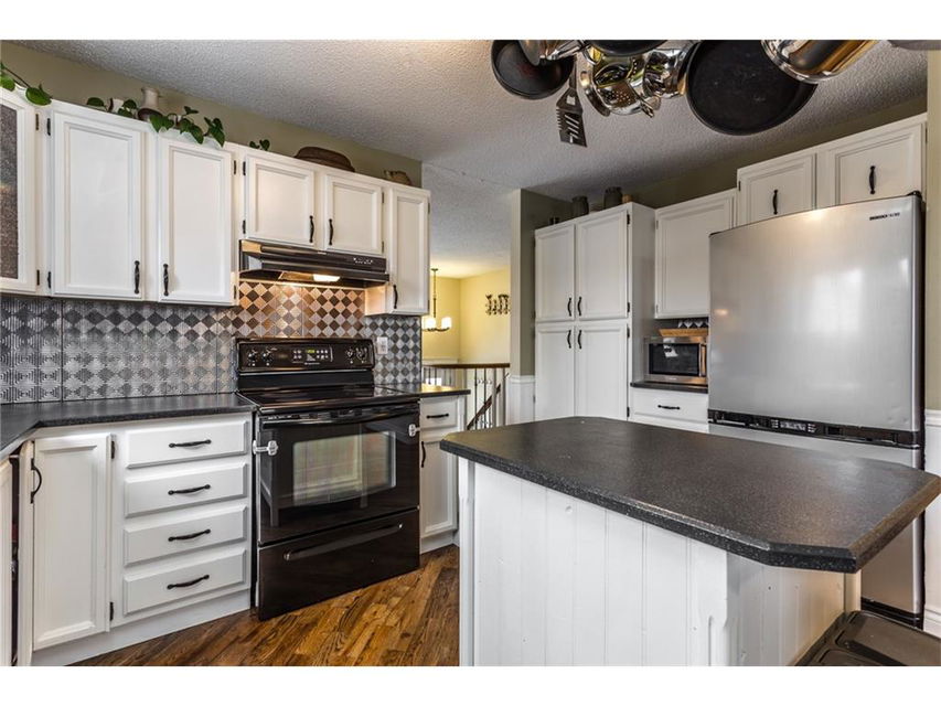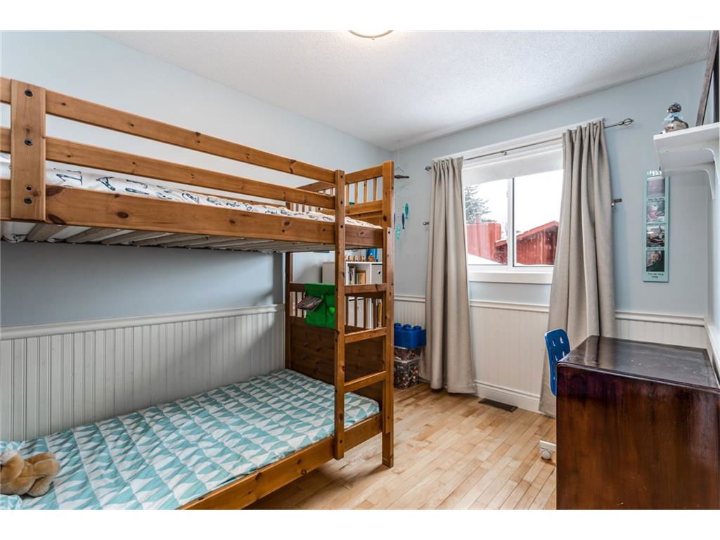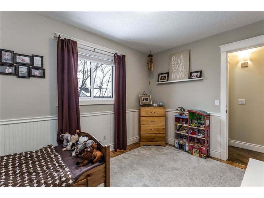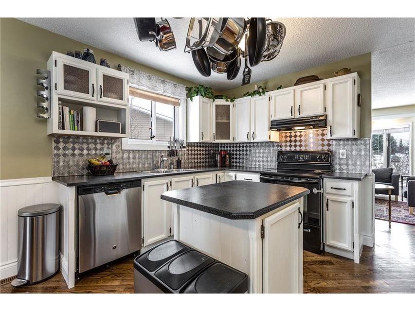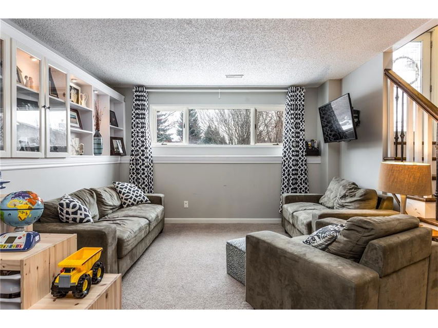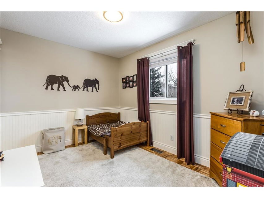 OPEN HOUSE Sunday Jan 14th 2-4!!! Charming fully developed bi-level on huge pie lot with a total of 5 bedrooms! Main floor features beautiful hardwood flooring, living room with wood burning fireplace, three bedrooms, bathroom, kitchen and dining area that opens onto deck and back yard with beautiful mature trees. Lower level features spacious recreation room with beautiful built-in shelving, two more bedrooms, bathroom, and large laundry room. All this with an attached extra-long single garage (over 27′ depth), air conditioning, stunning yard, and an awesome family oriented neighborhood just steps from Sheep River pathways, close to schools, rec center, parks, bike trails & shopping. A charming home all around!
