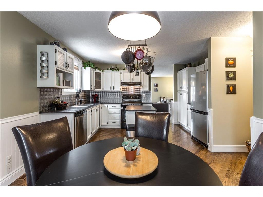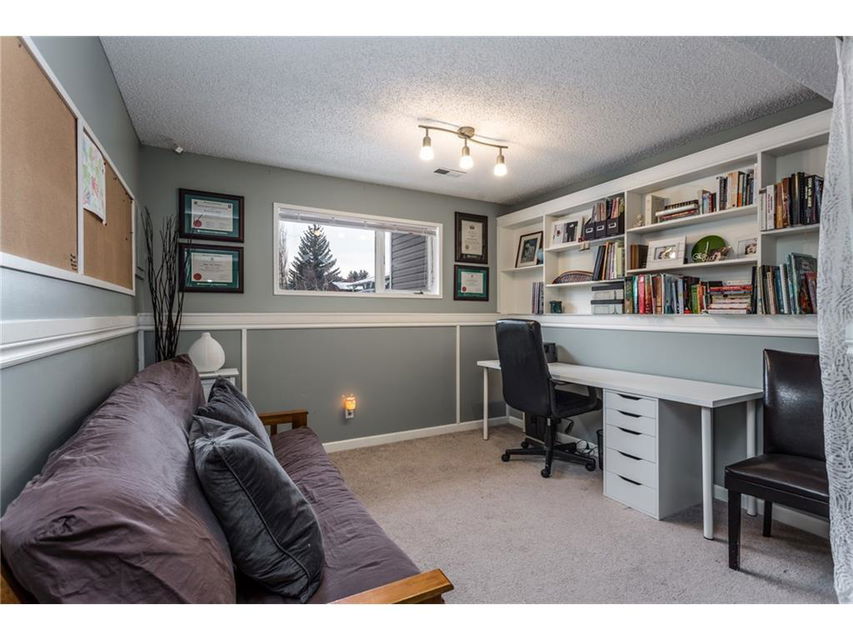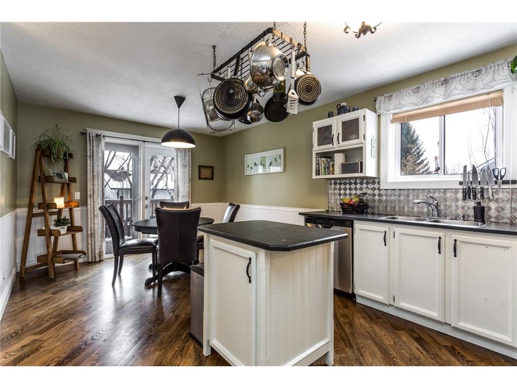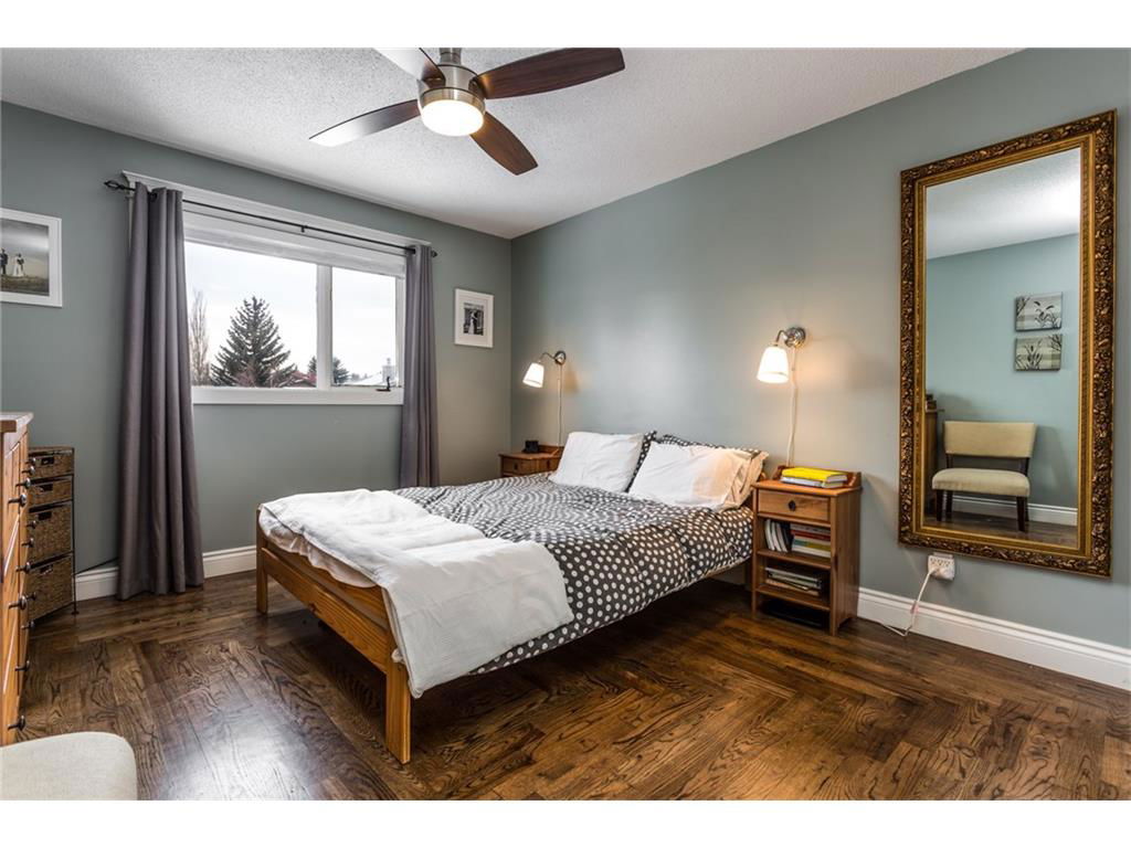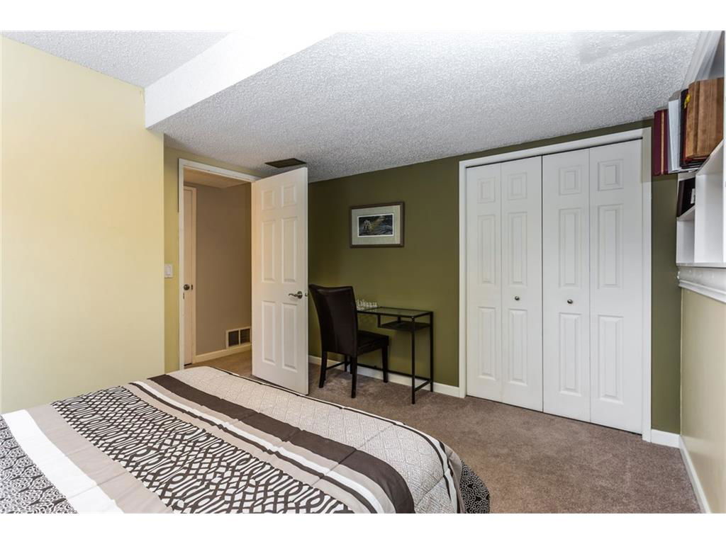 OPEN HOUSE Sunday Jan 14th 2-4!!! Charming fully developed bi-level on huge pie lot with a total of 5 bedrooms! Main floor features beautiful hardwood flooring, living room with wood burning fireplace, three bedrooms, bathroom, kitchen and dining area that opens onto deck and back yard with beautiful mature trees. Lower level features spacious recreation room with beautiful built-in shelving, two more bedrooms, bathroom, and large laundry room. All this with an attached extra-long single garage (over 27′ depth), air conditioning, stunning yard, and an awesome family oriented neighborhood just steps from Sheep River pathways, close to schools, rec center, parks, bike trails & shopping. A charming home all around!