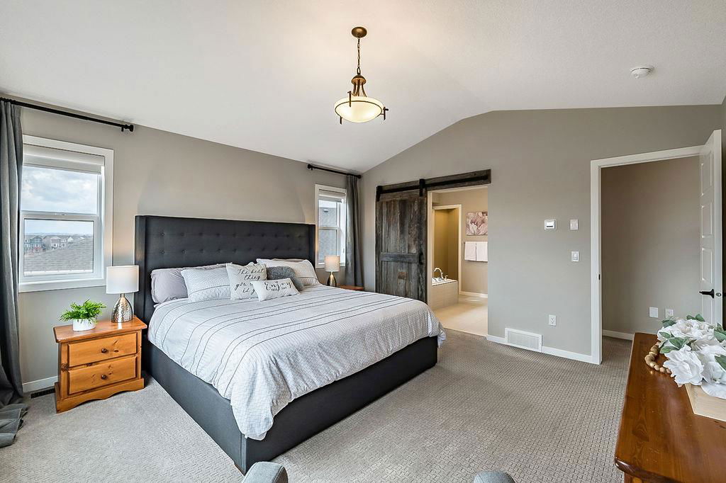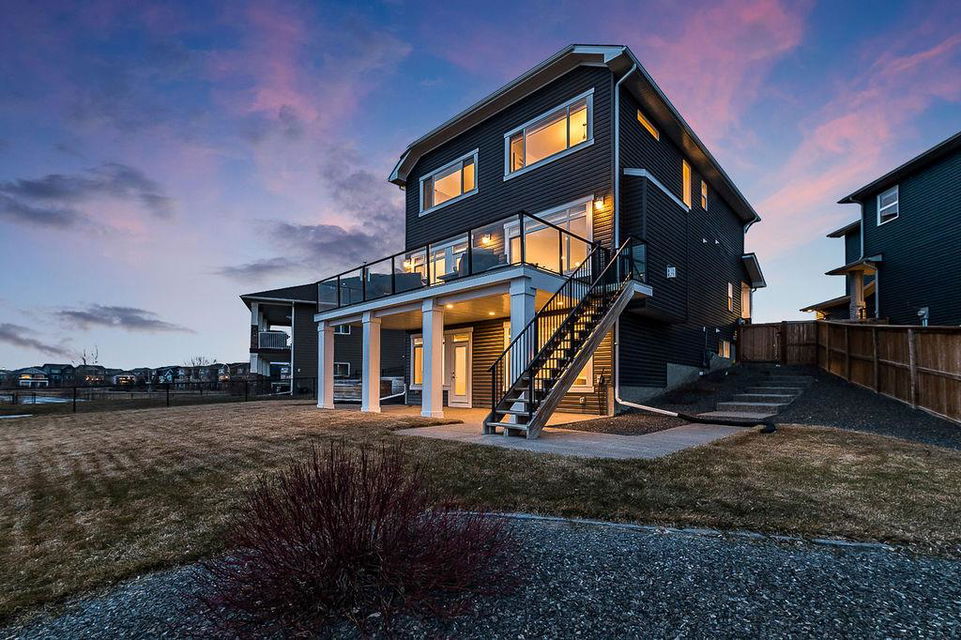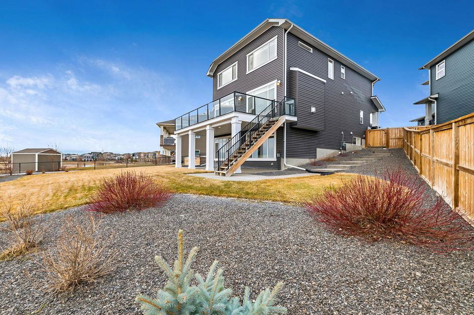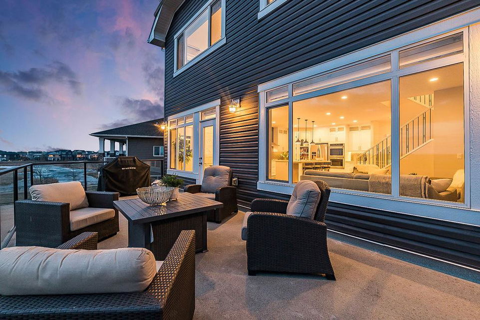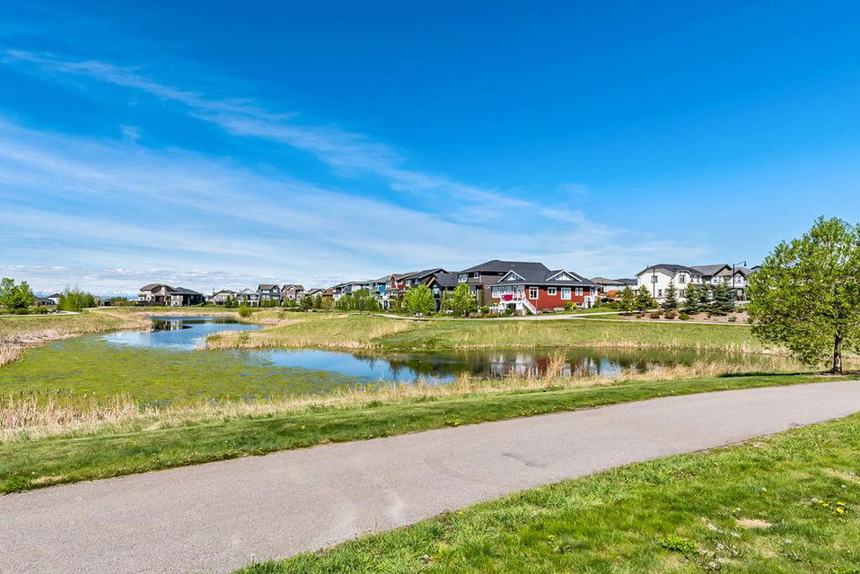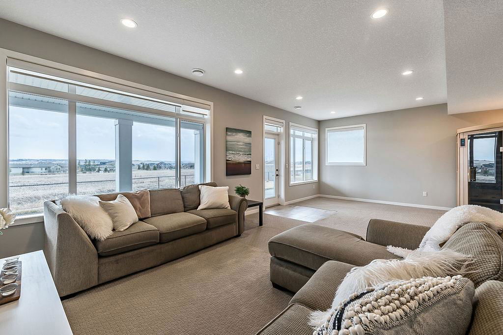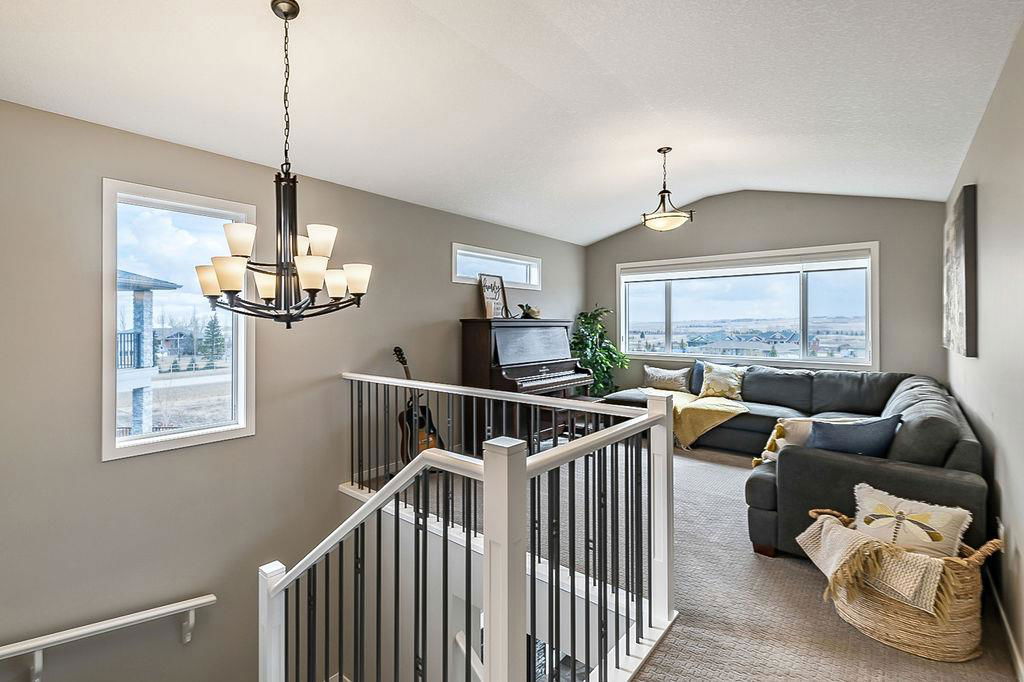 *CLICK 3D for virtual tour* … or VISIT Open House SUN 2-4! GORGEOUS 5bdrm luxury home with OVERSIZED TRIPLE GARAGE overlooking rolling landscapes and pond, with STUNNING MOUNTAIN VIEWS! This five year old Prominent Homes two story exudes elegance and sophistication throughout, and is located in serene & quiet cul-de-sac. MAIN FLOOR features huge entry way, spacious kitchen with oversized island, double wall ovens, extra wide gas cooktop & beautiful cabinetry, living room with gas fireplace, and large dining area with huge windows overlooking back yard & open space beyond. Back hall features spacious boot room with built in locker system. UPPER FLOOR features bonus room with vaulted ceiling, primary bedroom w vaulted ceiling, huge windows, walk-in closet and massive ensuite bathroom with heated floors. Upper floor also features three additional bedrooms each with walk-in closets, full bathroom with private toilet room, and spacious laundry room. WALK-OUT BASEMENT features fifth bedroom, full bathroom, and huge recreation room with plumbing already in place for future wet bar. PLUS … A/C, triple-zone furnace where each floor heats/cools independently, water filtration system, water softener & more. BACK YARD is huge south facing pie shape lot, offers 7-zone irrigation system with remote control ability, hot tub pad with wiring already run, and growing vegetation. GARAGE is a dream, with an OVERSIZED TANDEM TRIPLE size, DOG WASH, gas heat in place, plus extra wide & extra tall doors! All this, in an amazing neighbourhood within minutes of schools, parks, golf, rec centre, shopping & amenities. This one won’t last, so come by this weekend!
