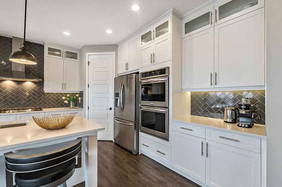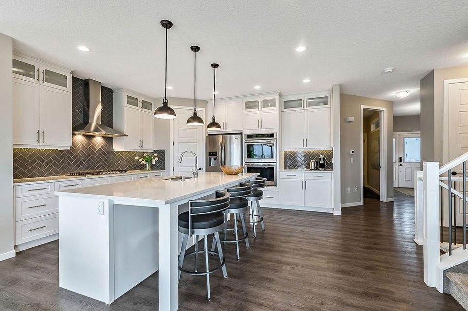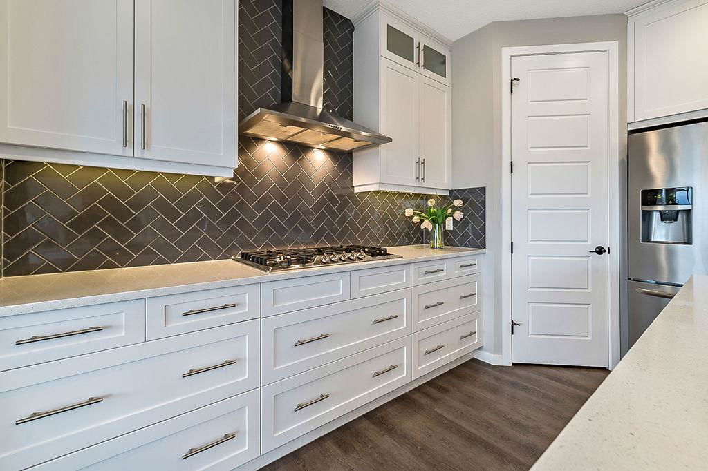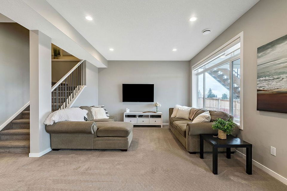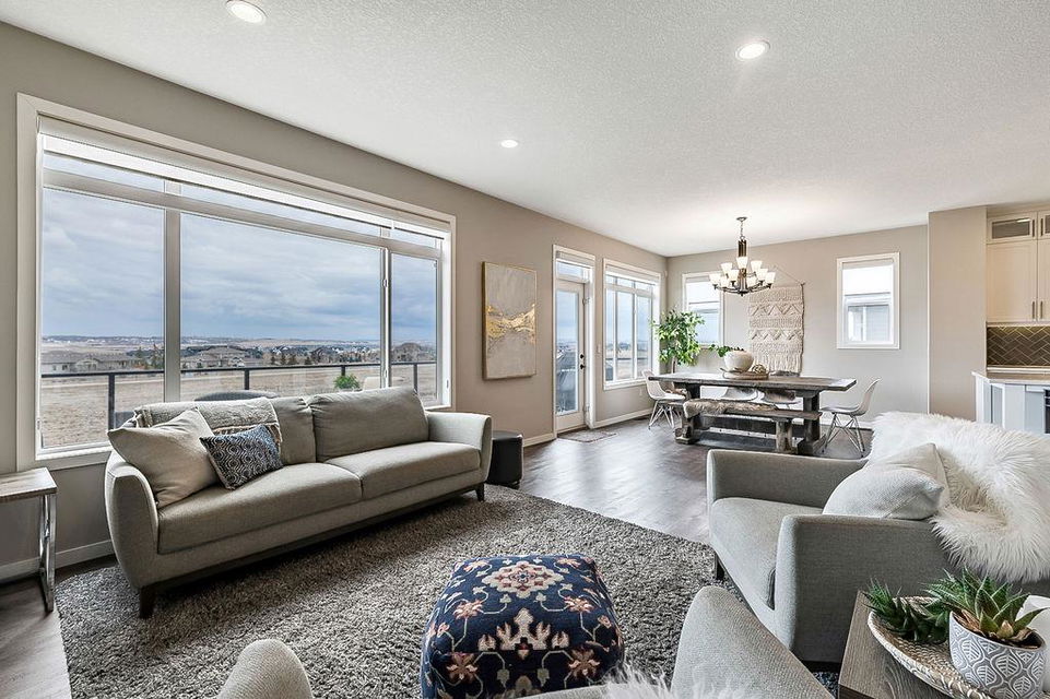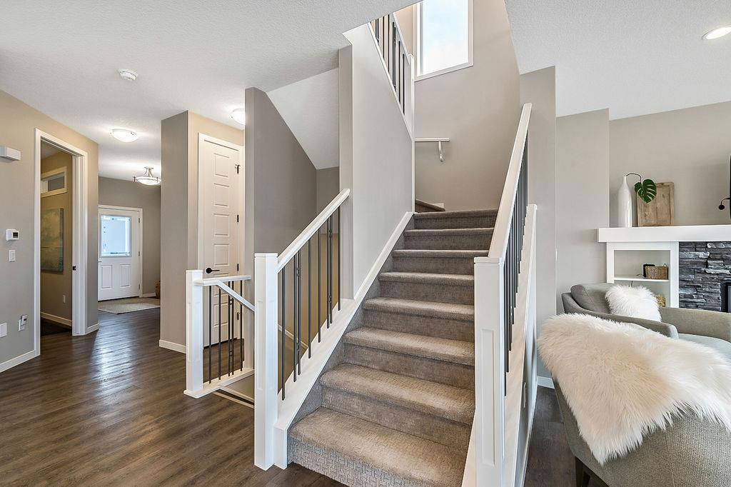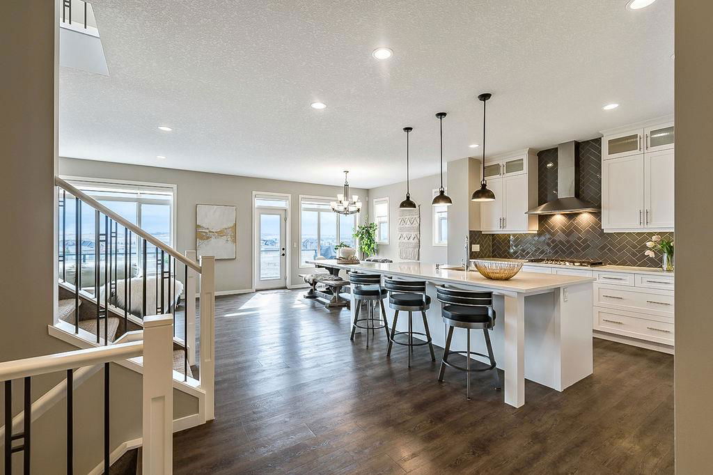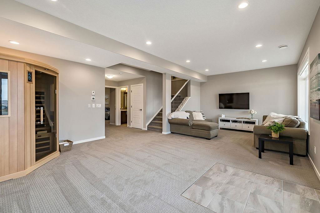 *CLICK 3D for virtual tour* … or VISIT Open House SUN 2-4! GORGEOUS 5bdrm luxury home with OVERSIZED TRIPLE GARAGE overlooking rolling landscapes and pond, with STUNNING MOUNTAIN VIEWS! This five year old Prominent Homes two story exudes elegance and sophistication throughout, and is located in serene & quiet cul-de-sac. MAIN FLOOR features huge entry way, spacious kitchen with oversized island, double wall ovens, extra wide gas cooktop & beautiful cabinetry, living room with gas fireplace, and large dining area with huge windows overlooking back yard & open space beyond. Back hall features spacious boot room with built in locker system. UPPER FLOOR features bonus room with vaulted ceiling, primary bedroom w vaulted ceiling, huge windows, walk-in closet and massive ensuite bathroom with heated floors. Upper floor also features three additional bedrooms each with walk-in closets, full bathroom with private toilet room, and spacious laundry room. WALK-OUT BASEMENT features fifth bedroom, full bathroom, and huge recreation room with plumbing already in place for future wet bar. PLUS … A/C, triple-zone furnace where each floor heats/cools independently, water filtration system, water softener & more. BACK YARD is huge south facing pie shape lot, offers 7-zone irrigation system with remote control ability, hot tub pad with wiring already run, and growing vegetation. GARAGE is a dream, with an OVERSIZED TANDEM TRIPLE size, DOG WASH, gas heat in place, plus extra wide & extra tall doors! All this, in an amazing neighbourhood within minutes of schools, parks, golf, rec centre, shopping & amenities. This one won’t last, so come by this weekend!