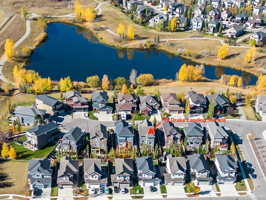 Welcome to this amazing 4 bedroom plus a bonus room up 2,500 sq ft 2 storey in the prestigious Drake Landing Terrace area of Okotoks. Shows like new! This home has all the comforts which includes a massive kitchen and Island with a large dining area for family and friends. The large tiled entry is welcoming and immediately makes you feel you have arrived! From the oversized garage there is an excellent mud room which includes a separate walk in closet for extra items. Laundry is upstairs in its own room for your convenience. Check out the 3D tour for your virtual walkthrough. The walkout level awaits your imagination. Fully landscaped with a large lower deck. Gazebo is included. Gemstone exterior lights on the eaves showcase this home beautifully at night and is great for festive occasions. . A stones throw from the walking paths around the pond with huge mountain views and a short walk to Okotoks main dog park for our pet lovers! Possession available after June 3rd. Book your showing today to come see this great home in person!