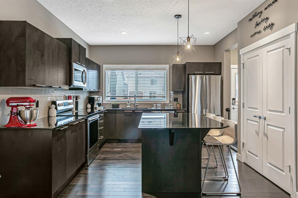 Welcome to this immaculately maintained home nestled in the extremely popular community of Legacy! You’ll immediately notice the modern colour palettes and desirable open plan welcoming you into the spacious main floor that offers an extended sight line to the back of the kitchen creating a smooth transition from your main living area to your designated dining area and wonderful kitchen!! Boasting exquisite granite counters, stainless steel appliances and a large central island with upgraded hardwood floors, this home is sure to impress. Just off the kitchen the functional two piece guest bathroom and mudroom lead out to a beautiful south facing deck. Upstairs you’ll discover the convenient second floor laundry room, two bedrooms, two bathrooms, one four piece main bath and an attractive en-suite bathroom both finished with the same sleek granite counters. The spacious master bedroom with a walk-in closet completes the second floor. The unspoiled basement, with separate side entry, leaves you with various options for your future basement development. Close to green spaces, shopping and all other amenities. Book a private viewing and see for yourself!