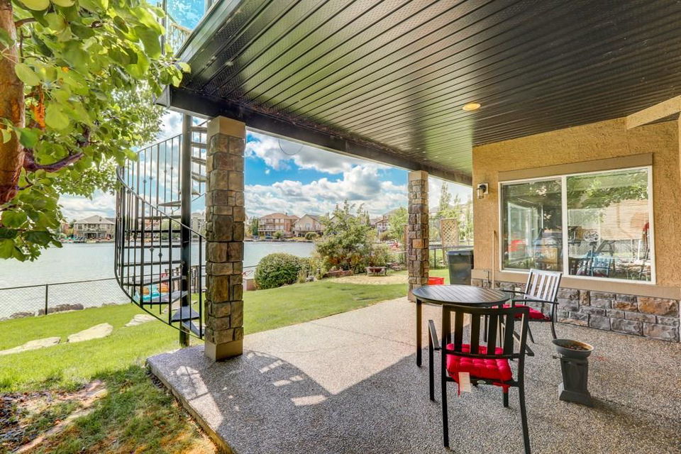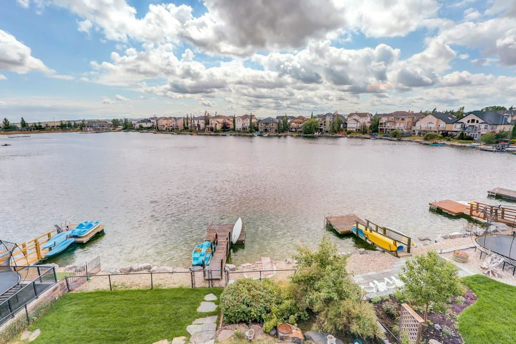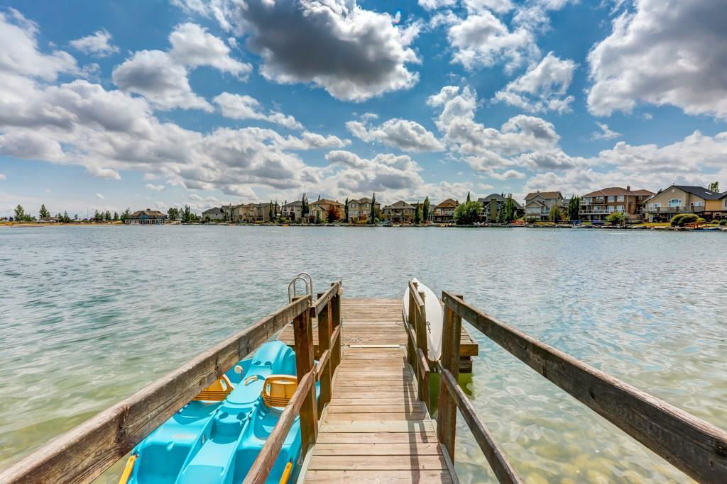 * PRICE REDUCED! * BACKING SOUTH ONTO THE LAKE IN CRYSTAL SHORES! AWESOME LAKE & MOUNTAIN VIEWS FROM THIS SPACIOUS 3 BEDROOM, 3.5 BATHROOM 2 STOREY WITH FULLY DEVELOPED WALKOUT BASEMENT & HEATED TRIPLE FRONT ATTACHED GARAGE. OVER 3900′ DEVELOPED ON ALL 3 LEVELS! LOADED WITH UPGRADES SUCH AS LOW MAINTENANCE STUCCO EXTERIOR, HUGE EXPOSED AGGREGATE DRIVEWAY, 2 AIR CONDITIONERS, 2 FURNACES, UNDERGROUND SPRINKLERS,HARDWOOD FLOORS ON THE MAIN, GRANITE COUNTER TOPS, STAINLESS STEEL APPLIANCES, 3 WAY FIREPLACE, 9′ CEILINGS, PRIVATE MAIN FLOOR DEN, SPACIOUS WALK-THROUGH PANTRY, LARGE MASTER BEDROOM WITH A STONE FEATURE WALL PLUS A SEPARATE RETREAT OVERLOOKING THE LAKE, & A STEAM SHOWER IN THE ENSUITE, WALK-IN CLOSETS IN ALL BEDROOMS, & SECOND FLOOR LAUNDRY! THE PROFESSIONALLY FINISHED BASEMENT WAS DONE WITH PERMITS, & INCLUDES A LARGE WORK-OUT ROOM, FAMILY ROOM WITH WET BAR & BUILT-IN CABINETS, PLUS A 4 PIECE BATH. THE PATIO AREA ON THE WALK OUT LEVEL ALSO HAS ALL THE WIRING & PLUMBING ROUGHED-IN FOR A HOT TUB! THE YARD IS FULLY FENCED, NICELY LANDSCAPED WITH AN INTER-LOCKING BRICK PATIO, AND OF COURSE IT HAS IT’S OWN DOCK! THIS IS A BEAUTY THAT IS NOT TO BE MISSED! CLOSE TO ALL AMENITIES. FLEXIBLE POSSESSION. EASY TO SHOW. GREAT HOME. GREAT VALUE