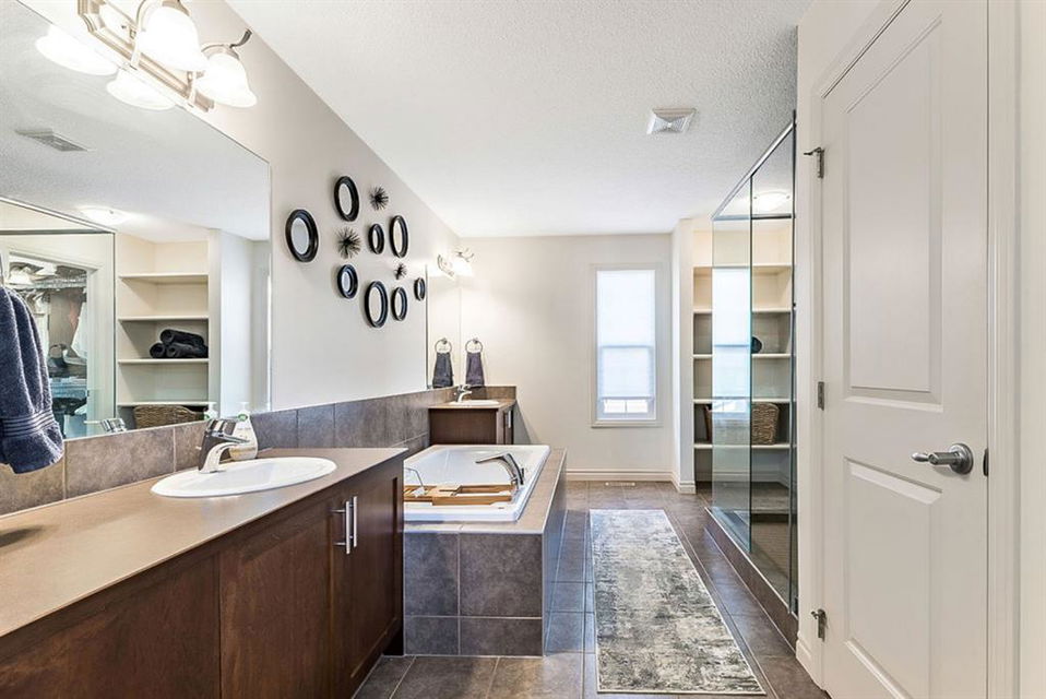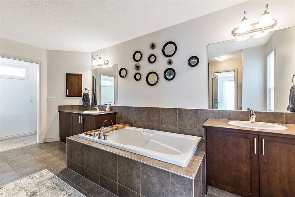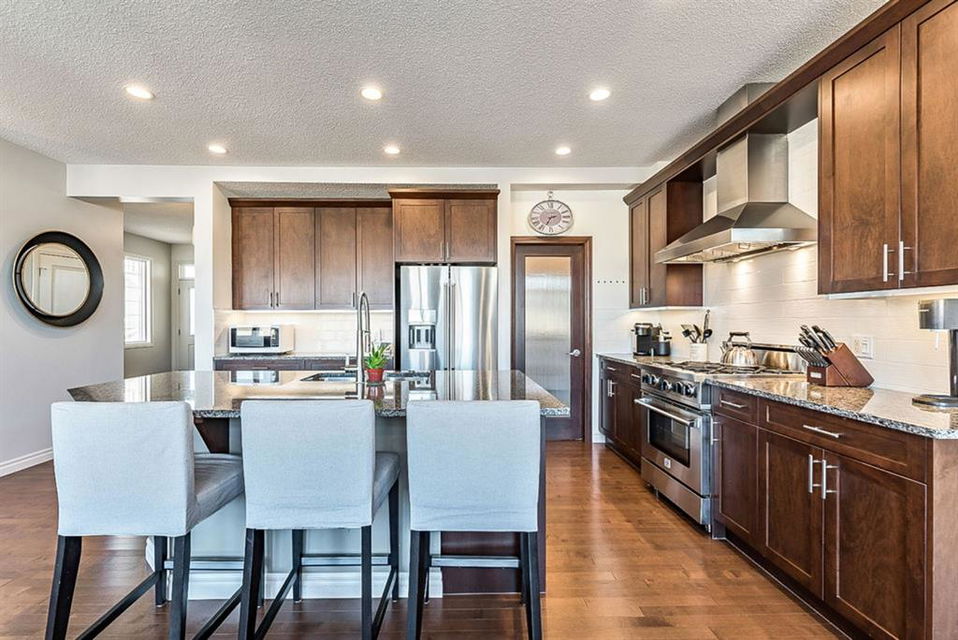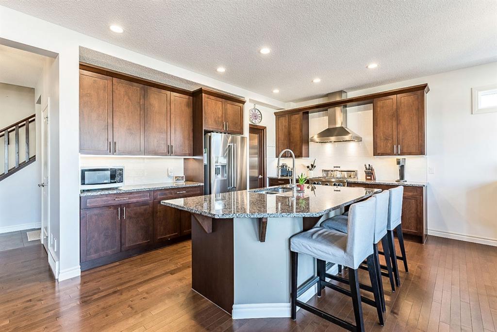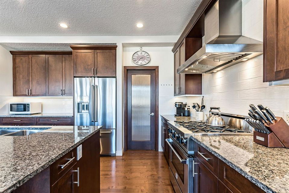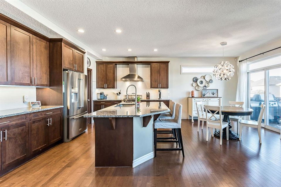 STUNNING, BRIGHT & superbly maintained nearly 2300s.qft. 5BDRM home with WALKOUT BASEMENT & optional mother-in-law suite (not a legal suite)!! **Click 3D to view walkthrough video**. MAIN FLOOR features open-concept plan with spacious kitchen with island & butler’s pantry, living room with gas fireplace, dining room and large windows & gorgeous deck looking over back yard, and even a small office off by main entrance. UPPER FLOOR features awesome bonus room, amazing primary room with gorgeous ensuite bathroom & walk-in coset, three additional kids’ bedrooms, full bath and good sized laundry room. WALKOUT BASEMENT features kitchenette, bedroom, living room with fireplace plus full laundry & storage. OVERSIZED garage is 23′ deep, perfect for even larger vehicles. If you love NATURAL LIGHT, FUNCTIONAL SPACES, plus the optionality of the walk-out basement with kitchenette, then this is the one!!! Property is conveniently located within minutes of shopping, schools, parks and pathways.