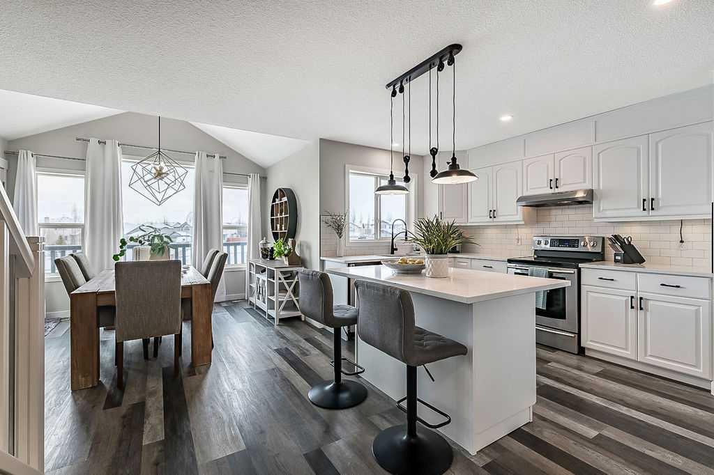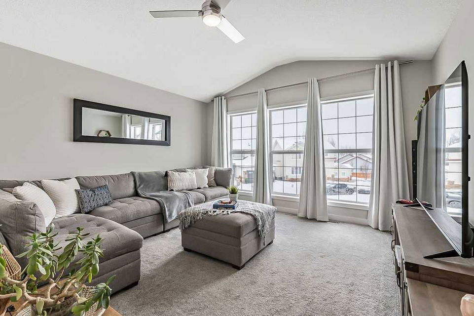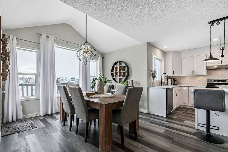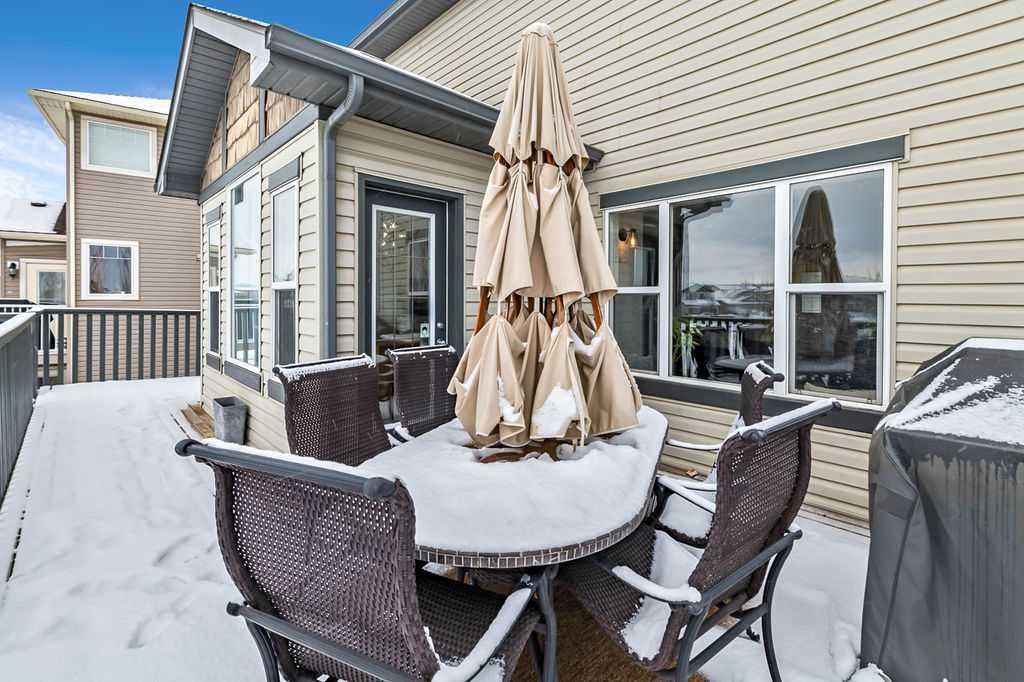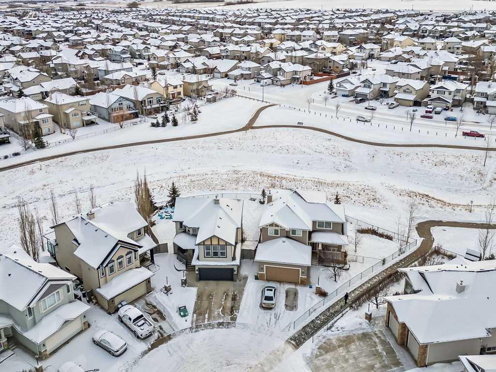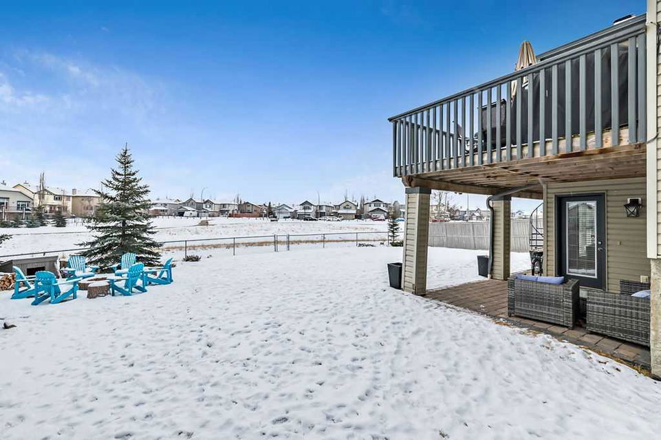 Oh my word … that LOCATION, and THAT YARD!!! Hands down one of the biggest and best yards in Okotoks with full SE exposure plus huge green space behind in superb cul-de-sac! Home has been lovingly cared for over the years with a recent $50K update (new flooring, trim, paint, lighting & faucets, countertops, cabinet repainted, back splash, new appliances & more). Step inside and soak in the warm ambiance & picture-perfect views from this beautiful home. MAIN FLOOR features spacious living room with gas fireplace and cozy window-seat overlooking back yard, dining room with large windows and kitchen with white cabinetry, pantry, island and quartz countertop. UPPER FLOOR features primary bedroom with ensuite bathroom and walk-in closet, large bonus room, full bathroom, plus two spacious bedrooms. WALK-OUT BASEMENT is fully developed with fourth bedroom and walk-in closet, recreation room with wet-bar (currently set up as a kitchenette), full bathroom and storage room. NOTE that basement is currently set up as an illegal suite with a kitchenette and in-suite laundry, however sellers can easily modify and convert kitchenette back to simple wet-bar and remove lower level laundry if that’s preferred. PROPERTY is absolutely gorgeous with 125′ depth and over 90′ width at the back, brick fire pit, stunning morning and daytime exposure. DOUBLE HEATED GARAGE and extended driveway complete this property. If you like beautiful homes with modern updates, want a fully finished home under $720K in a friendly cul-de-sac, hope to be close to schools and amenities, and love the idea of a huge private yard … then THIS IS IT! Call your favourite agent and book your showing as this one won’t last! RECENT WORK – approx $50K on interior updates referenced above, plus roof replaced about 5 years ago, tankless hot water system installed 2 years ago, and garage heater installed about a year ago.