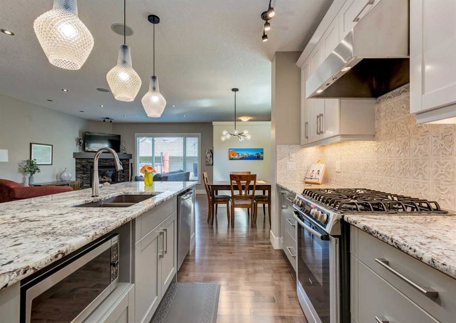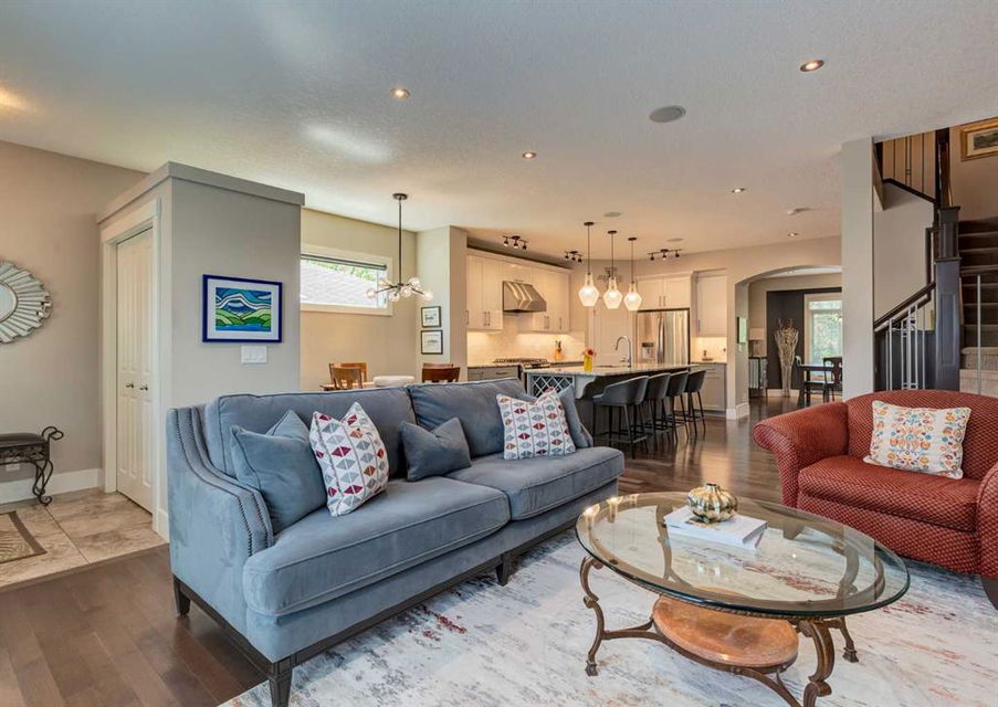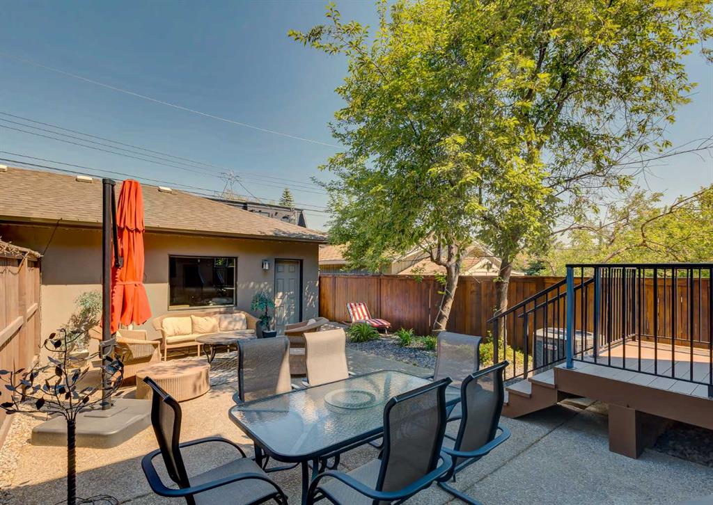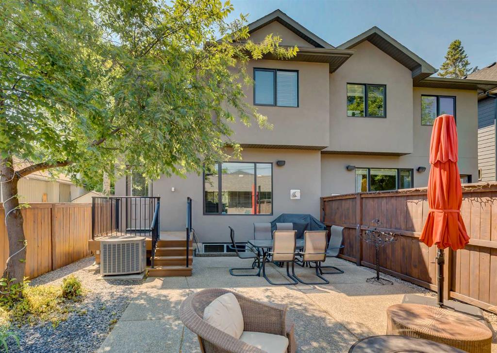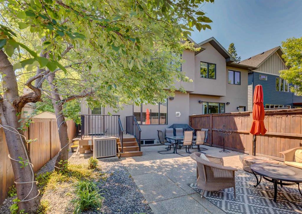 Welcome to this beautifully maintained home in the heart of Altadore, perfectly situated on a picturesque, tree-lined street. Built by renowned custom builder Treehouse Developments, this home stands out with its thoughtful design and premium features. Enjoy the comfort and privacy of a rare concrete party wall, offering superior sound insulation—so quiet, you’ll forget it’s semi-detached. Set on an extra-wide lot, this property allows for a more spacious interior, giving the home a larger, more open feel than typical infills. The main floor features an excellent open-concept layout, ideal for entertaining. Recent updates include freshly painted walls and cabinetry, modern light fixtures, and a stylish new tile backsplash. The entire home is wired with a built-in sound system for seamless audio enjoyment, and Gemstone exterior lighting adds both curb appeal and functionality. Upstairs, the primary retreat boasts a spacious walk-in closet with custom built-ins, and a luxurious ensuite complete with a large tub, steam shower with body sprays and hand shower, double vanities, and in-floor heating. Convenient upstairs laundry, two additional bedrooms, and a full bath round out the upper level. The fully finished basement includes a large rec room, a fourth bedroom suite with its own walk-in closet and ensuite, and features in-floor heating throughout. Thoughtful storage is found throughout the home, including a walk-in pantry, beverage station, front and back closets, and custom cabinetry in the basement. The mechanical system includes a Rinnai hot water system with an upgraded tank (replaced approx. 5 years ago) and central A/C for year-round comfort. Outdoor spaces are just as impressive, with a concrete front patio and a stunning, secluded, and oversized private backyard patio—perfect for summer evenings or quiet mornings. Located just blocks to Sandy Beach Park, close to the shops and restaurants of Marda Loop, and within walking distance to schools including Altadore Elementary School, this home offers the best of inner-city living in a family-friendly neighbourhood.