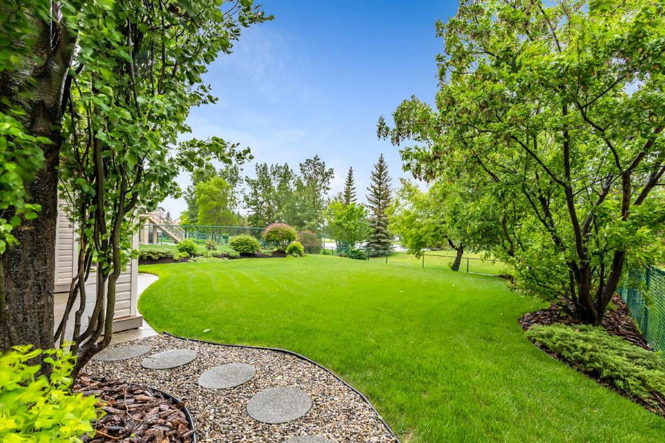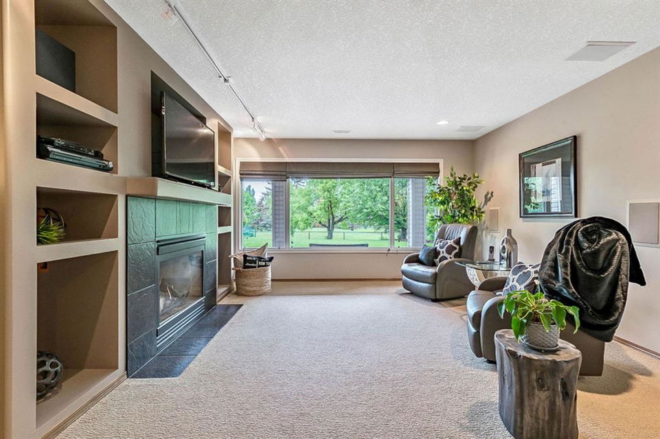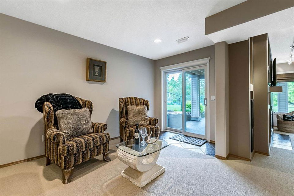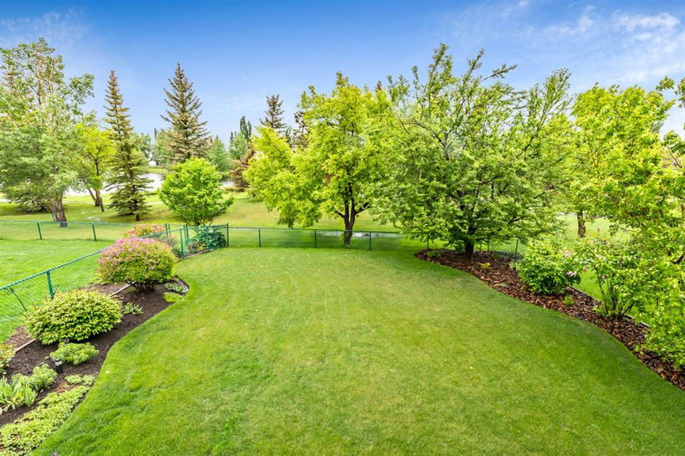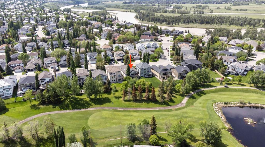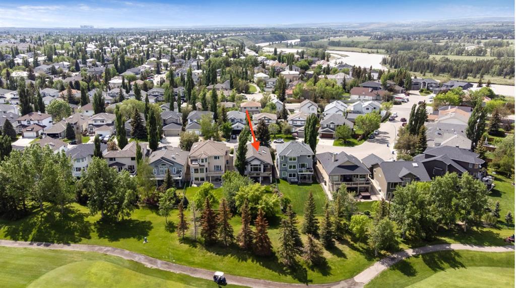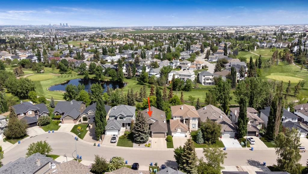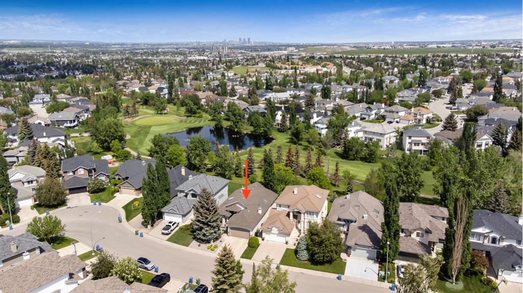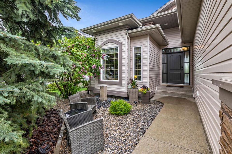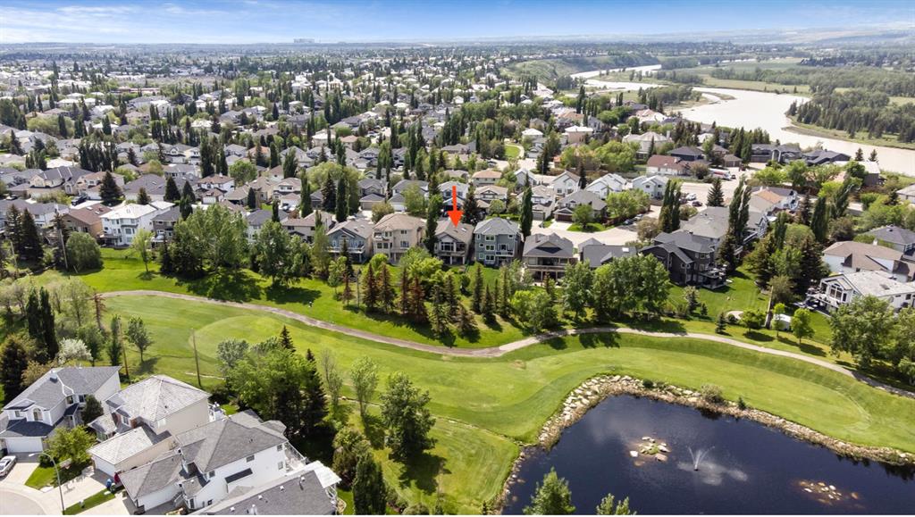 STUNNING ESTATE BUNGALOW with 3200sq.ft.+ of developed space backing onto gorgeous golf course in the community of Douglasdale, just minutes from ravine & paths. You will fall in love with this home’s open-concept large spaces, sophisticated elegance, and beautiful scenic setting. ** Click 3D for virtual walkthrough** MAIN FLOOR features spacious entryway, office with large windows, superb great room with floor to ceiling windows & views of the golf course, kitchen with white cabinetry and eating nook, formal dining room area, three-way gas fire place, large master bedroom with views of open space, huge ensuite bathroom & walk-in closet, second full bathroom, and main floor laundry in rear hall. WALKOUT BASEMENT was professionally finished in 2002, and features two additional bedrooms, full bathroom, wet-bar with built-in cabinetry, dishwasher, sink and bar fridge, and a superb recreation room with fire place & built-in entertainment unit. Oversized windows offer great light & views of golf course on this level as well. BACK YARD is absolutely breathtaking with view to the pond on the 12th fairway, gorgeous mature vegetation, and pebbled concrete patio. A/C and built-in speakers complete this home. Home has been meticulously maintained and has seen numerous updates over the years: hardwood (2019), new paint (2019), new baseboards (2019), two new skylights (2017), new windows in great room (2016), new front door unit (2017), new 30 year shingles (2009), new hot water tank (2017). If you are looking for a luxurious 1700sq.ft.+ home in stunning setting within minutes of river paths & community amenities under $900K, then THIS IS THE ONE!!!