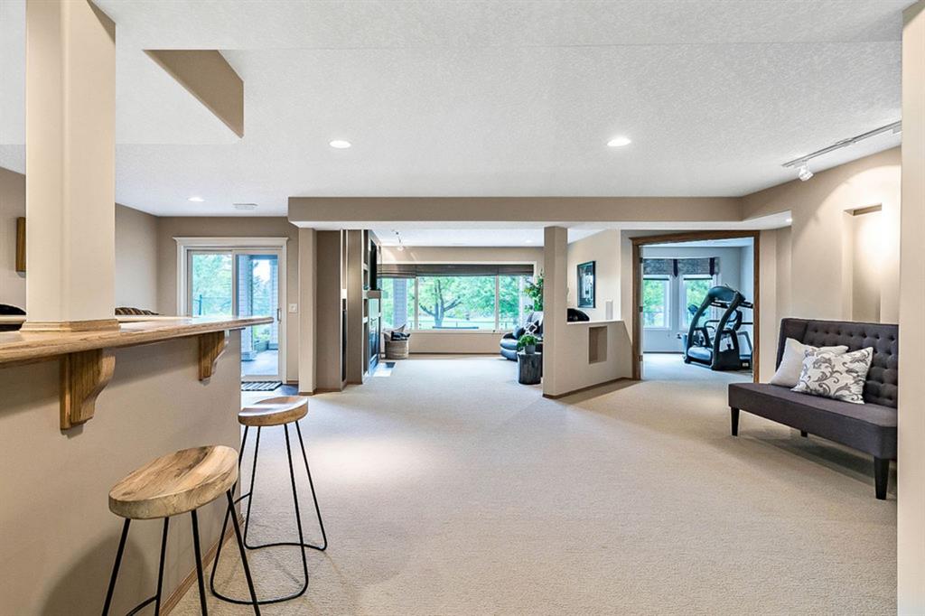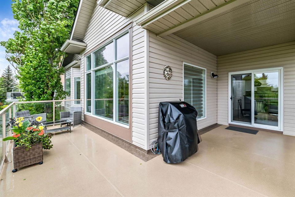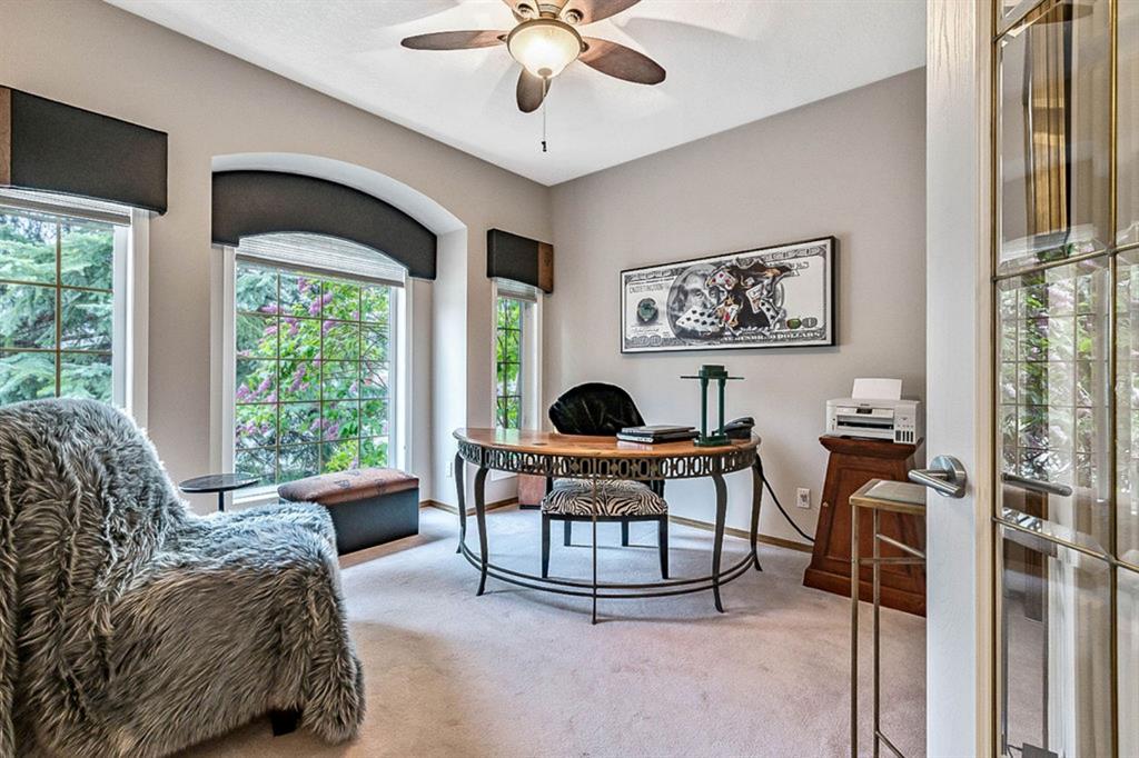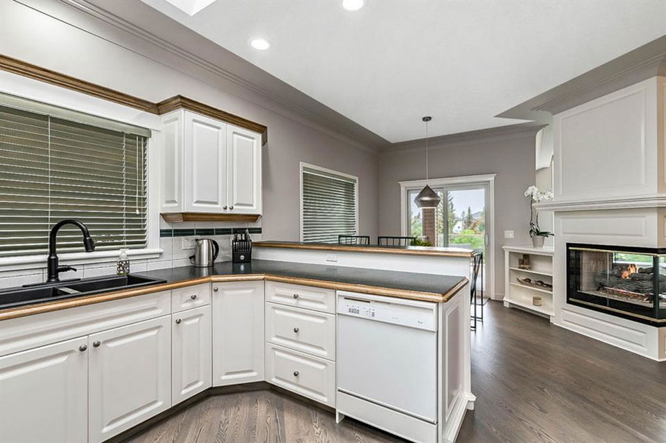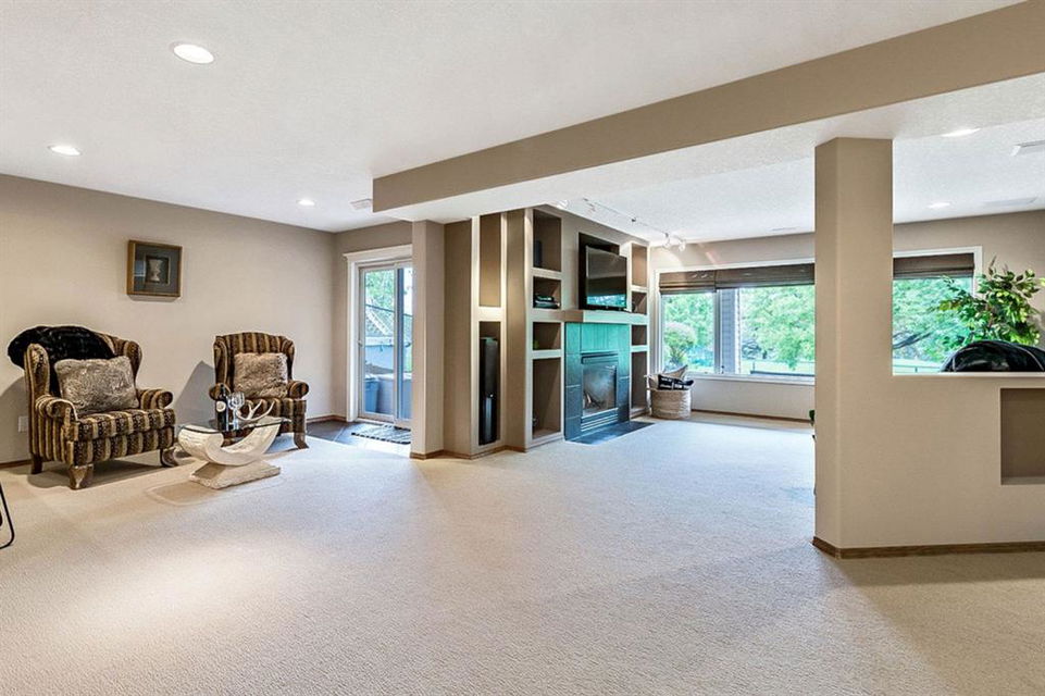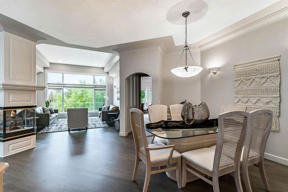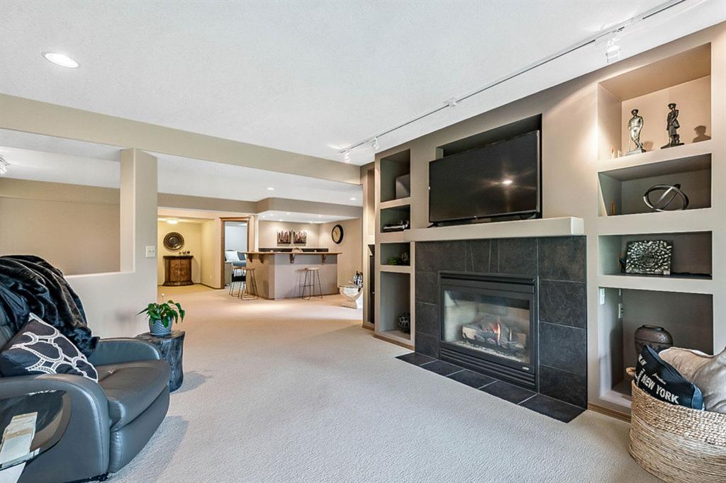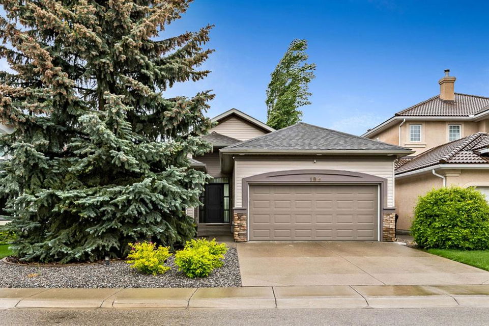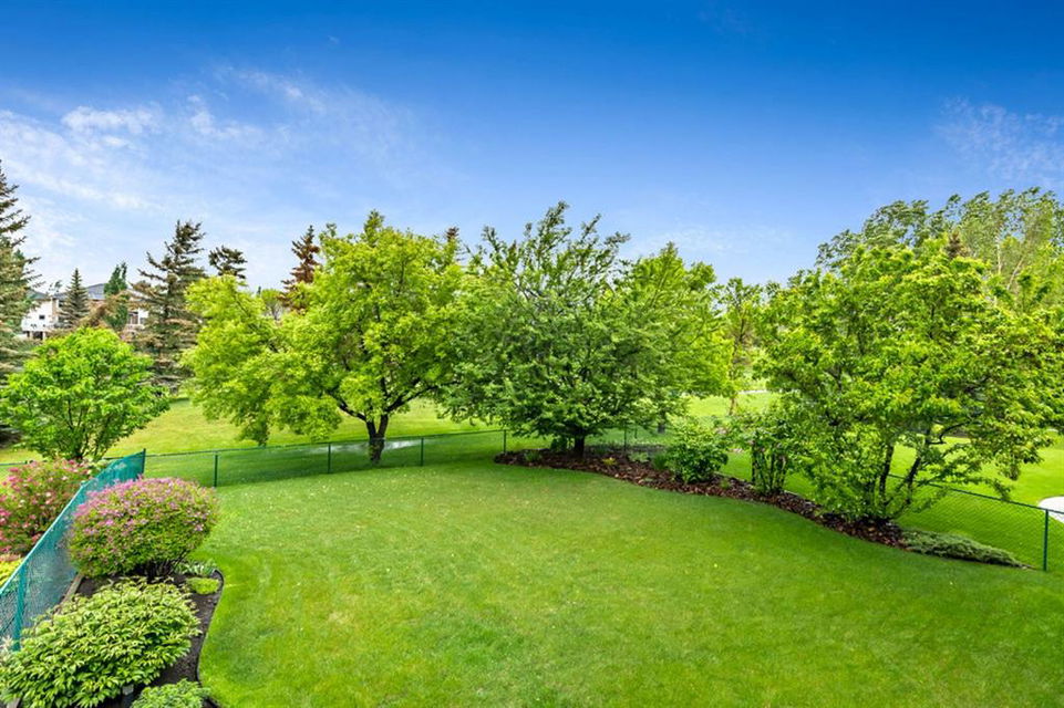 STUNNING ESTATE BUNGALOW with 3200sq.ft.+ of developed space backing onto gorgeous golf course in the community of Douglasdale, just minutes from ravine & paths. You will fall in love with this home’s open-concept large spaces, sophisticated elegance, and beautiful scenic setting. ** Click 3D for virtual walkthrough** MAIN FLOOR features spacious entryway, office with large windows, superb great room with floor to ceiling windows & views of the golf course, kitchen with white cabinetry and eating nook, formal dining room area, three-way gas fire place, large master bedroom with views of open space, huge ensuite bathroom & walk-in closet, second full bathroom, and main floor laundry in rear hall. WALKOUT BASEMENT was professionally finished in 2002, and features two additional bedrooms, full bathroom, wet-bar with built-in cabinetry, dishwasher, sink and bar fridge, and a superb recreation room with fire place & built-in entertainment unit. Oversized windows offer great light & views of golf course on this level as well. BACK YARD is absolutely breathtaking with view to the pond on the 12th fairway, gorgeous mature vegetation, and pebbled concrete patio. A/C and built-in speakers complete this home. Home has been meticulously maintained and has seen numerous updates over the years: hardwood (2019), new paint (2019), new baseboards (2019), two new skylights (2017), new windows in great room (2016), new front door unit (2017), new 30 year shingles (2009), new hot water tank (2017). If you are looking for a luxurious 1700sq.ft.+ home in stunning setting within minutes of river paths & community amenities under $900K, then THIS IS THE ONE!!!