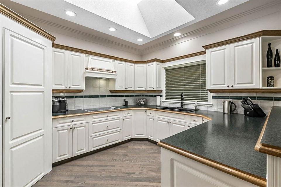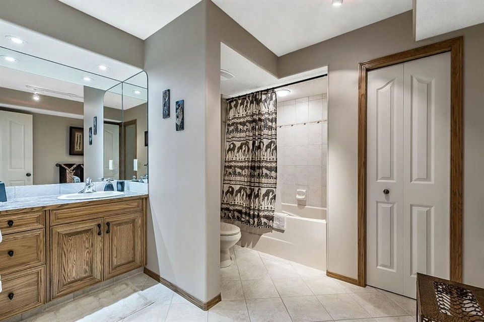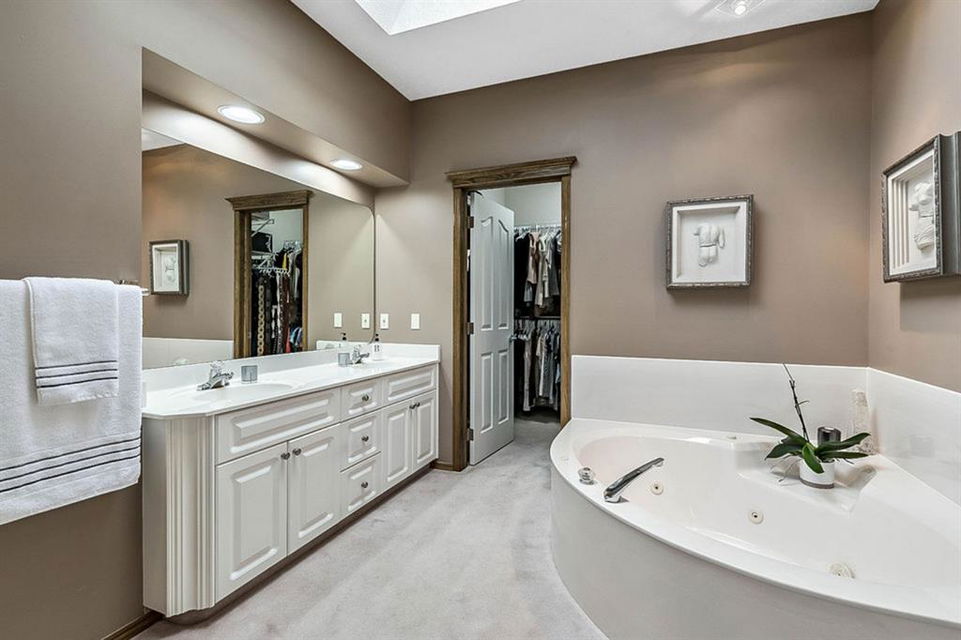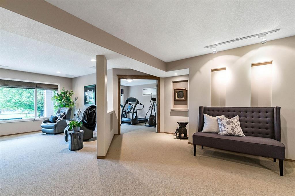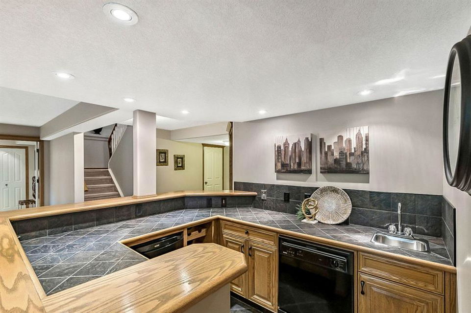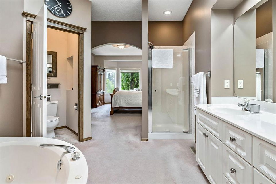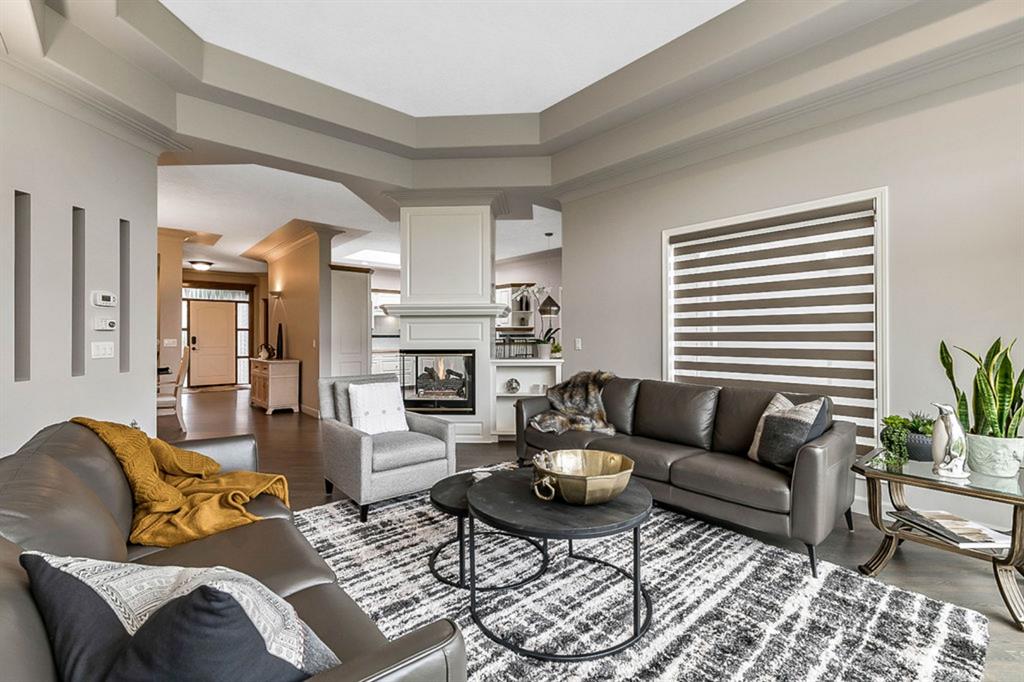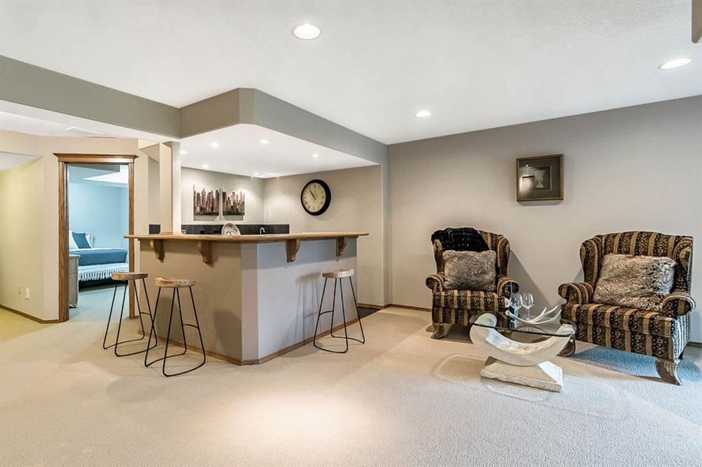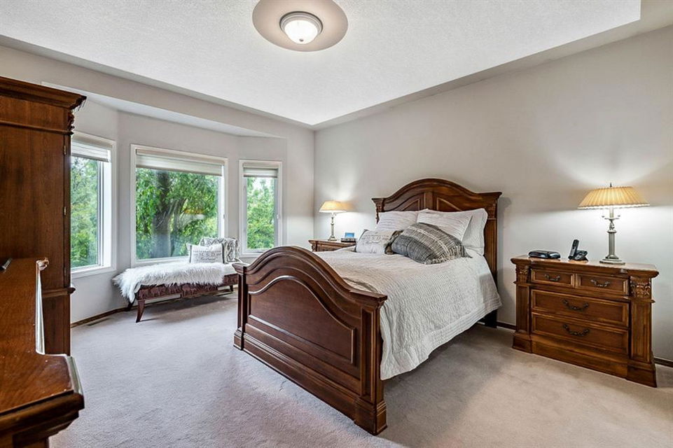 STUNNING ESTATE BUNGALOW with 3200sq.ft.+ of developed space backing onto gorgeous golf course in the community of Douglasdale, just minutes from ravine & paths. You will fall in love with this home’s open-concept large spaces, sophisticated elegance, and beautiful scenic setting. ** Click 3D for virtual walkthrough** MAIN FLOOR features spacious entryway, office with large windows, superb great room with floor to ceiling windows & views of the golf course, kitchen with white cabinetry and eating nook, formal dining room area, three-way gas fire place, large master bedroom with views of open space, huge ensuite bathroom & walk-in closet, second full bathroom, and main floor laundry in rear hall. WALKOUT BASEMENT was professionally finished in 2002, and features two additional bedrooms, full bathroom, wet-bar with built-in cabinetry, dishwasher, sink and bar fridge, and a superb recreation room with fire place & built-in entertainment unit. Oversized windows offer great light & views of golf course on this level as well. BACK YARD is absolutely breathtaking with view to the pond on the 12th fairway, gorgeous mature vegetation, and pebbled concrete patio. A/C and built-in speakers complete this home. Home has been meticulously maintained and has seen numerous updates over the years: hardwood (2019), new paint (2019), new baseboards (2019), two new skylights (2017), new windows in great room (2016), new front door unit (2017), new 30 year shingles (2009), new hot water tank (2017). If you are looking for a luxurious 1700sq.ft.+ home in stunning setting within minutes of river paths & community amenities under $900K, then THIS IS THE ONE!!!