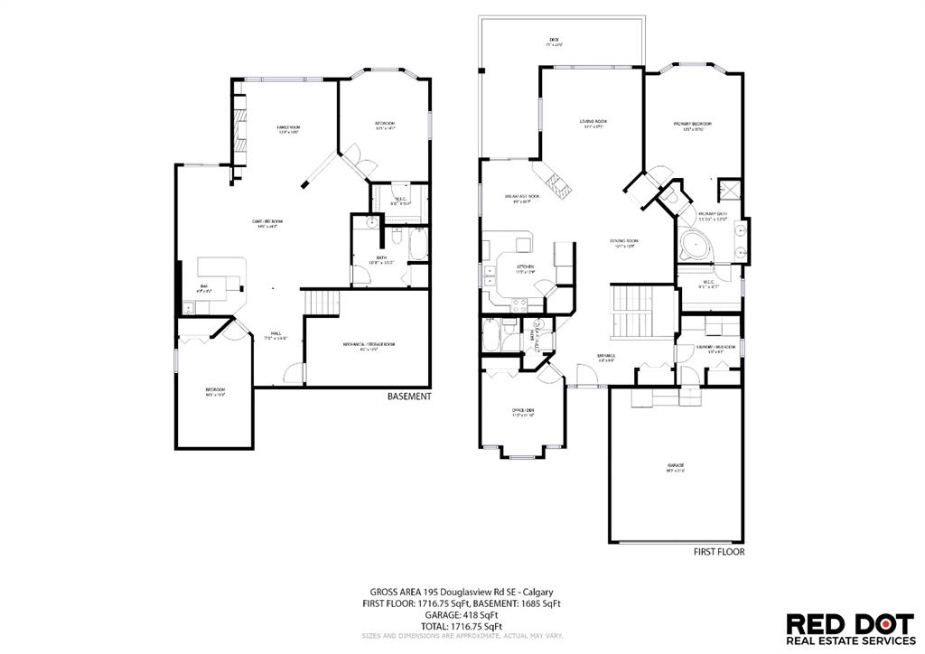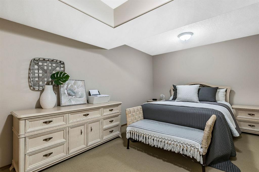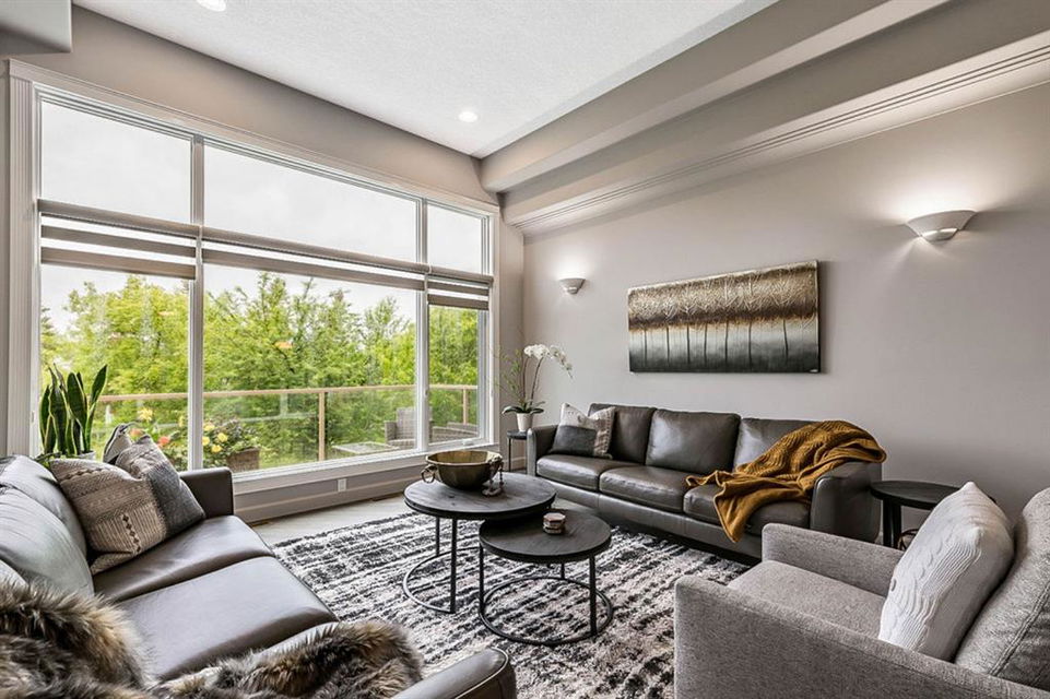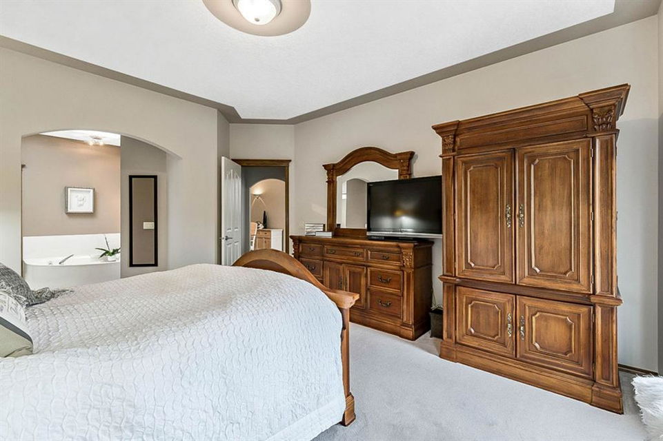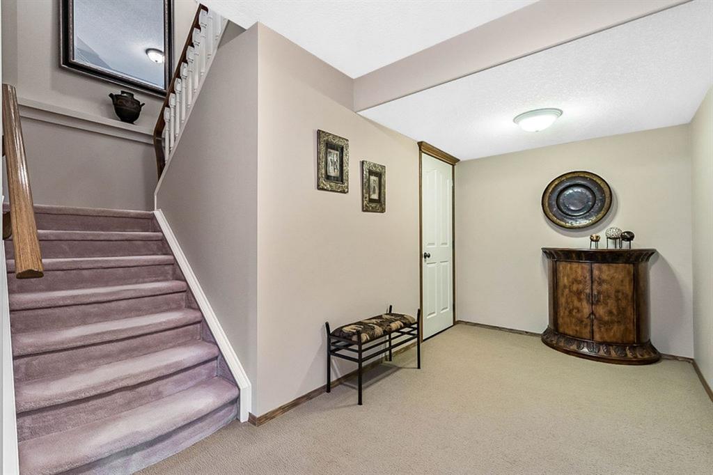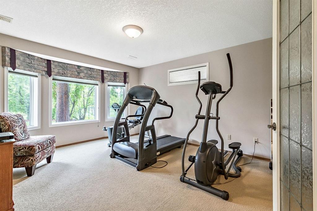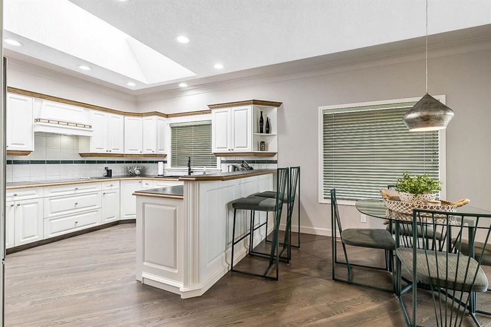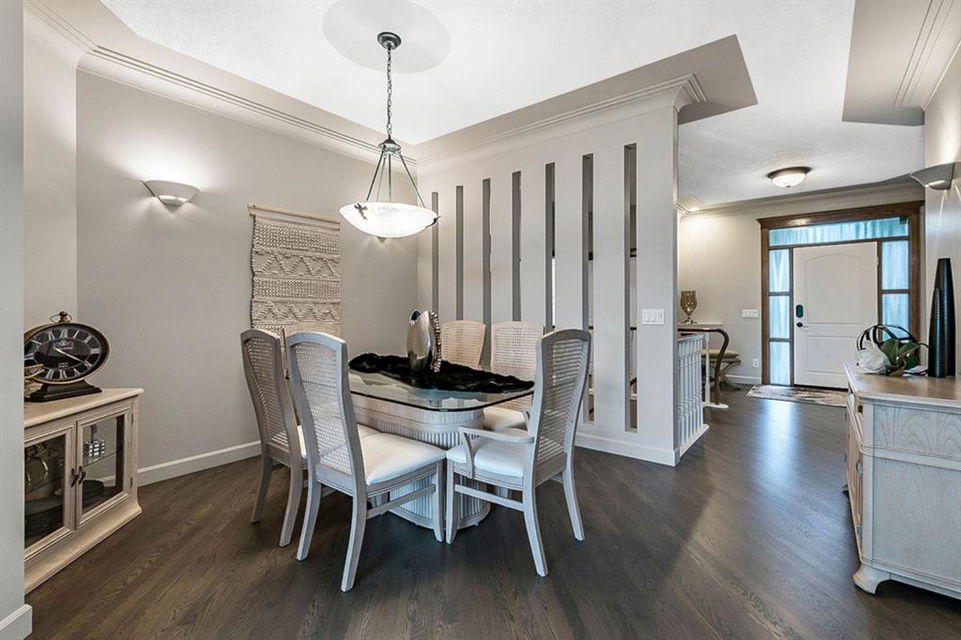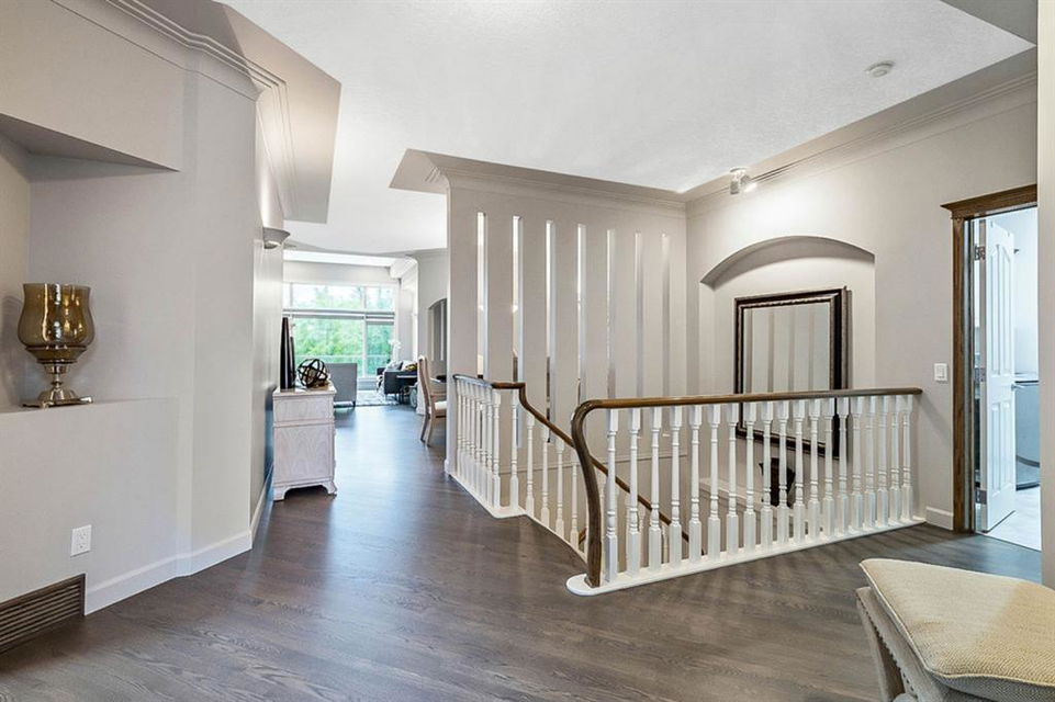 STUNNING ESTATE BUNGALOW with 3200sq.ft.+ of developed space backing onto gorgeous golf course in the community of Douglasdale, just minutes from ravine & paths. You will fall in love with this home’s open-concept large spaces, sophisticated elegance, and beautiful scenic setting. ** Click 3D for virtual walkthrough** MAIN FLOOR features spacious entryway, office with large windows, superb great room with floor to ceiling windows & views of the golf course, kitchen with white cabinetry and eating nook, formal dining room area, three-way gas fire place, large master bedroom with views of open space, huge ensuite bathroom & walk-in closet, second full bathroom, and main floor laundry in rear hall. WALKOUT BASEMENT was professionally finished in 2002, and features two additional bedrooms, full bathroom, wet-bar with built-in cabinetry, dishwasher, sink and bar fridge, and a superb recreation room with fire place & built-in entertainment unit. Oversized windows offer great light & views of golf course on this level as well. BACK YARD is absolutely breathtaking with view to the pond on the 12th fairway, gorgeous mature vegetation, and pebbled concrete patio. A/C and built-in speakers complete this home. Home has been meticulously maintained and has seen numerous updates over the years: hardwood (2019), new paint (2019), new baseboards (2019), two new skylights (2017), new windows in great room (2016), new front door unit (2017), new 30 year shingles (2009), new hot water tank (2017). If you are looking for a luxurious 1700sq.ft.+ home in stunning setting within minutes of river paths & community amenities under $900K, then THIS IS THE ONE!!!