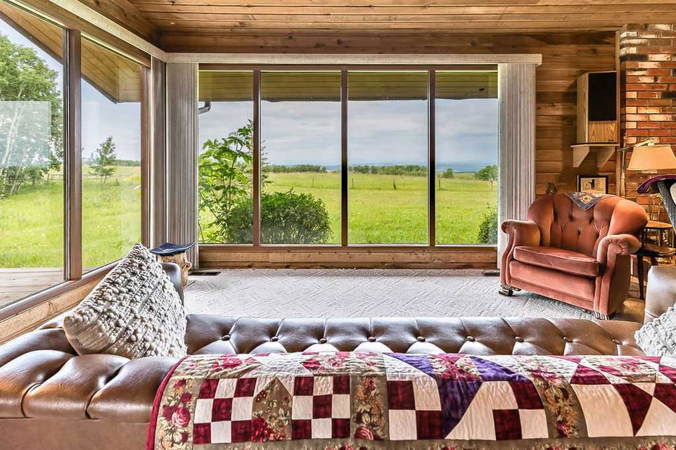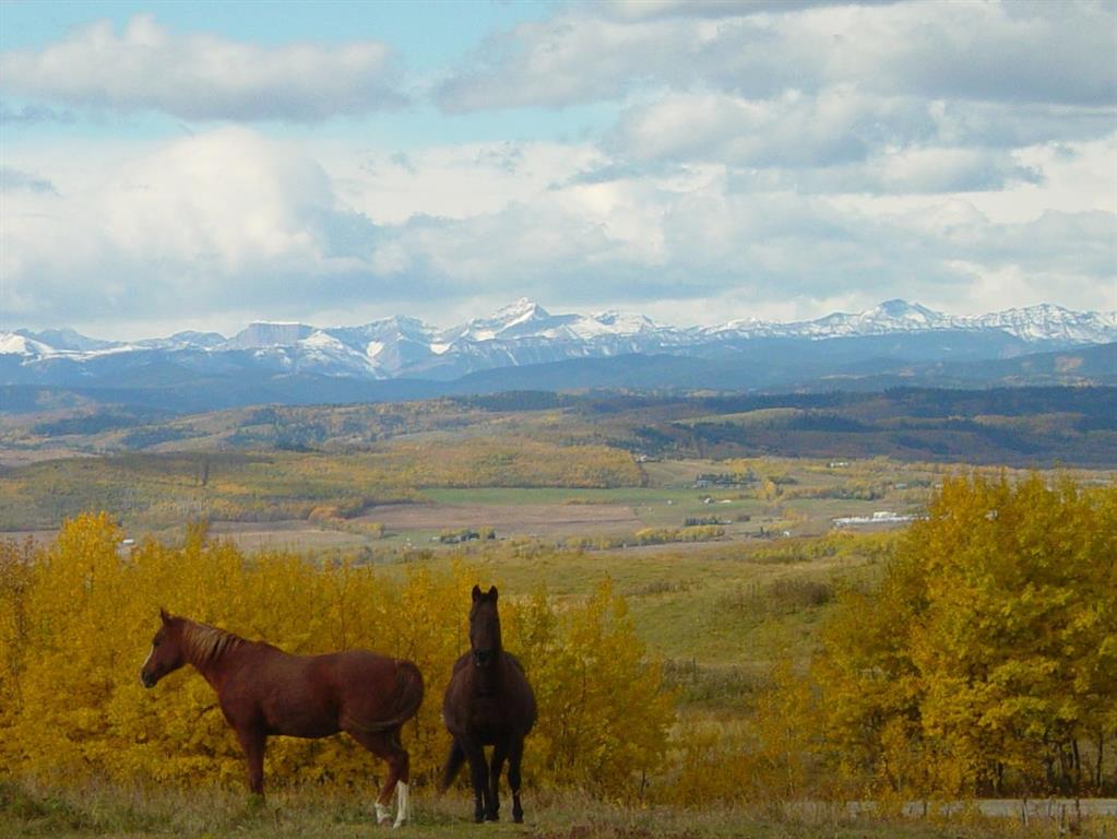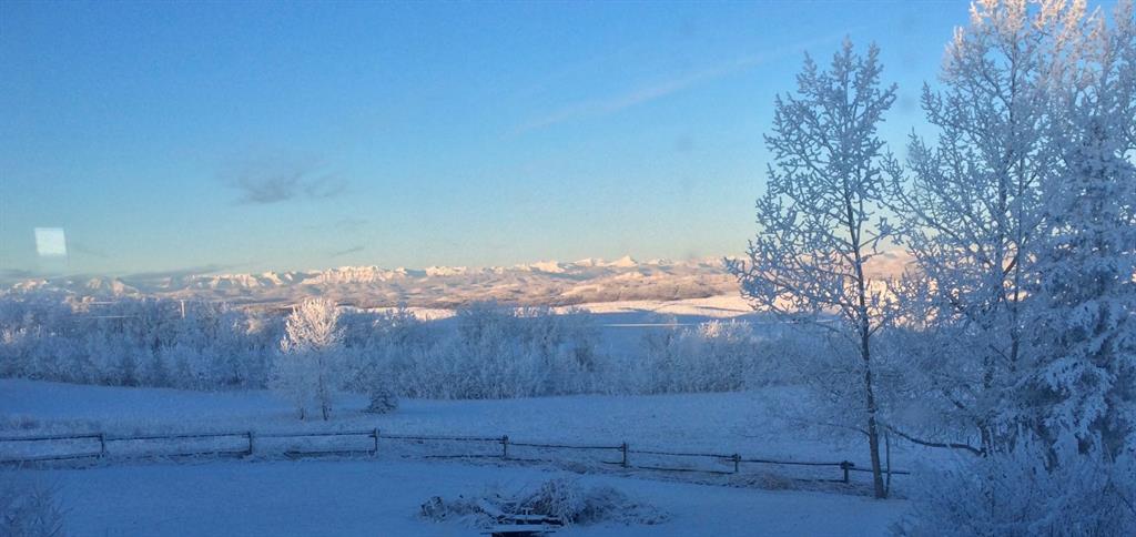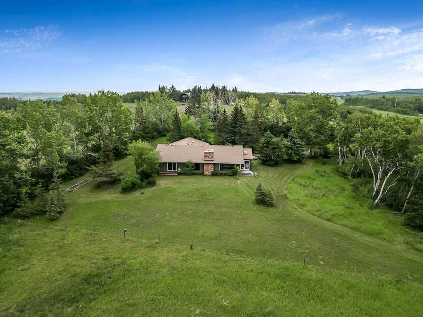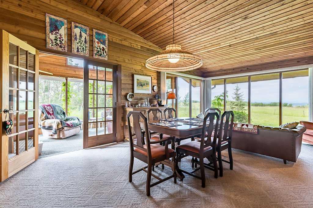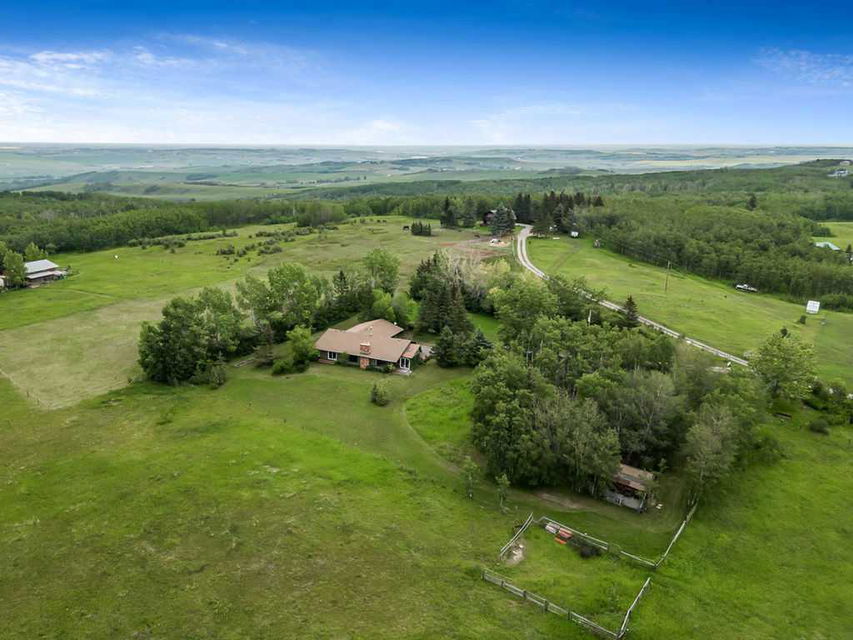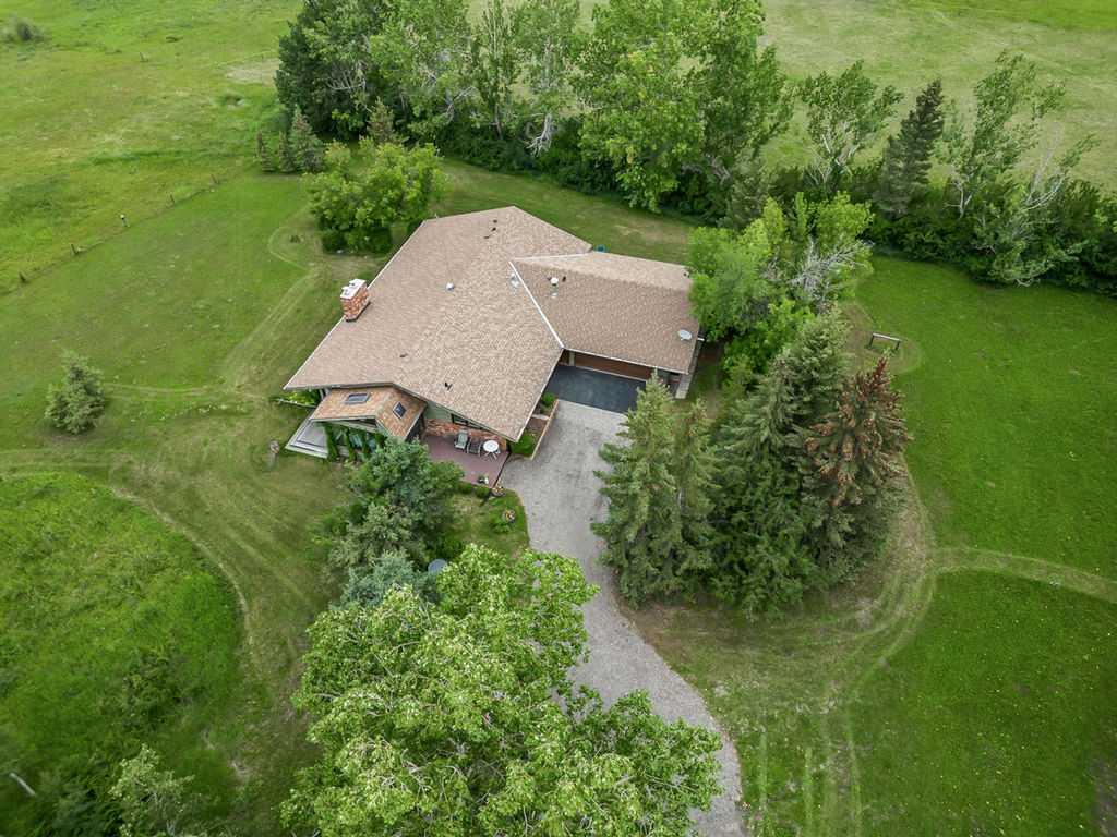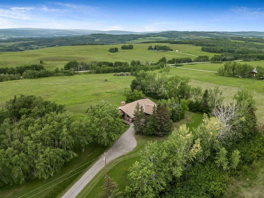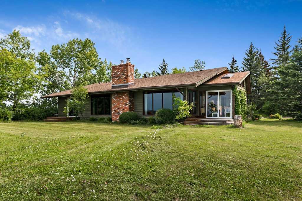 Dreaming of PANORAMIC MOUNTAIN VIEWS, a private oasis of 13+ acres of gorgeous natural land, and a SPACIOUS 1800sq.ft.+ BUNGALOW with vaulted ceiling & warm country ambiance? This may be the one for you then, as it’s truly a remarkable property with the perfect blend of privacy, views, natural tranquility, charm, space and ample outdoor room. Situated in the Foothills with an easy 20 minute access from Calgary and Okotoks via fully paved roads, this 1975 charmer boasts stunning elegance throughout. Step inside (*click 3D video*), and you will fall in love with this home’s expansive living room with soaring vaulted ceilings, floor to ceiling windows and wood burning fireplace, kitchen with newer cabinetry and large dining area with double French doors to gorgeous sunroom w windows all around. Three bedrooms, bathrooms and laundry complete this floor. Step outside, and you will fall in love yet again with this property’s breathtaking mountain views, abundance of trees, seclusion and stunning tranquility. If you’re an equestrian enthusiast, you’ll appreciate the generous land size with plenty of room for your horses to roam and graze. Indeed, this property is a rare find that combines the allure of country living with the comfort of modern conveniences. Don’t miss the opportunity to make this enchanting bungalow your own! Contact us today to schedule a private viewing and to experience the serenity and beauty this home has to offer. RECENT UPDATES include – windows (last 10 years), exterior painted, updated countertops and cabinets, furnace (2022), new hot water tank (2022), and a new pressure tank (2023) guarantees optimal water pressure throughout the home.