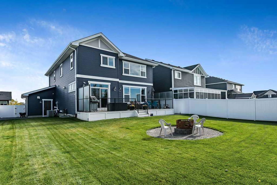 Have you been to Langdon lately? BIGGER LOTS, BIGGER SPACES & BETTER PRICES! This GORGEOUS 5BDRM HOME w MOUNTAIN VIEWS in the estate community of Boulder Creek Estates within the quiet hamlet of Langdon, a superb bedroom community near Calgary! This amazing location offers the benefits of small town living with bigger lots, better prices and great amenities, together with the perk of being just 20 minutes from a major centre. Home is truly jaw-dropping gorgeous … STEP IN (click 3D video) or book showing to see in person. MAIN FLOOR features spacious entrance, private den, stunning executive kitchen with white cabinetry and top of the line appliances including gas stove and two ovens, huge island, designer lighting package, quartz & granite countertops, walkthrough pantry & more. Living room with gas fireplace & dining room overlook back yard with floor to ceiling windows, superb natural lighting, and views of the Rockies. Mud room & half bath complete this floor. Did we mention 9′ ceiling, engineered hardwood flooring, A/C, humidifier, alarm system, and custom window covering package? UPPER LEVEL features superb primary bedroom with mountain views, huge walk-in closet & stunning ensuite bathroom w soaker tub, three additional bedrooms, full 4pc jack-and-jill bathroom, laundry room, and bonus room with views of golf course. BASEMENT is professionally developed with fifth bedroom, full bathroom and spacious recreation room. OVERSIZED TRIPLE 30′ x 25′ GARAGE is insulated, drywalled and heated (gas). WEST FACING BACK YARD is fully landscaped with mature vegetation, large 29′ x 12’/10′ deck, underground sprinkler system and fire pit. Front driveway is long enough for RV PARKING. RECENT UPDATES – A/C (approx $7K), custom window coverings including auto-blinds ($15K), landscaping (approx $40K). LANGDON / BOULDER CREEK ESTATES – Langdon is a quiet hamlet next to Calgary with a wide variety of amenities including schools, parks, sports fields, golf course, child care, restaurants, retail and a Farmer’s market. Boulder Creek Estates is a golf course community within Langdon with large lots, spacious estate homes, and easy access to 18-hole Boulder Creek Golf Course and surrounding natural spaces. If you’re looking for a gorgeous estate home with triple garage in a quiet setting within 20 minutes of Calgary for under $890K, then this is the one!!!