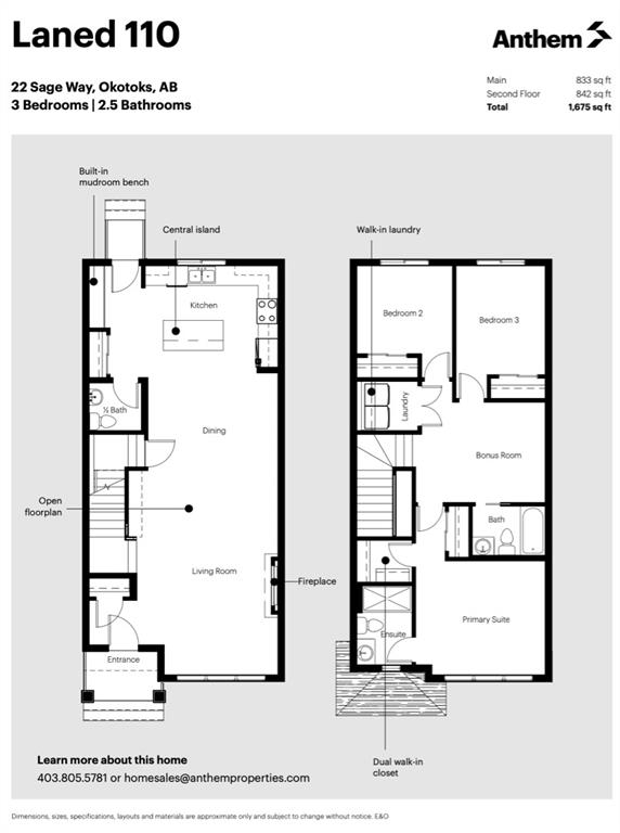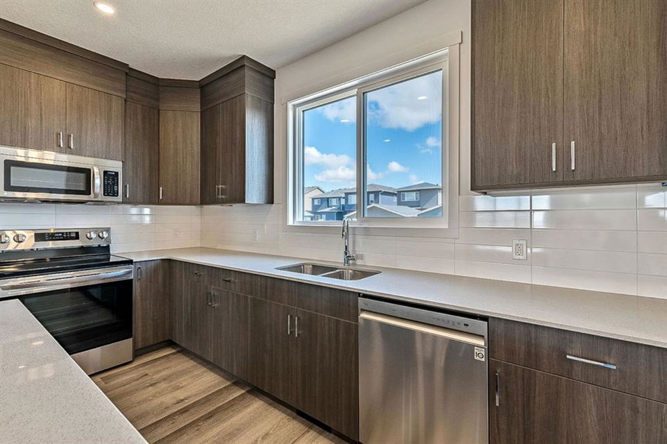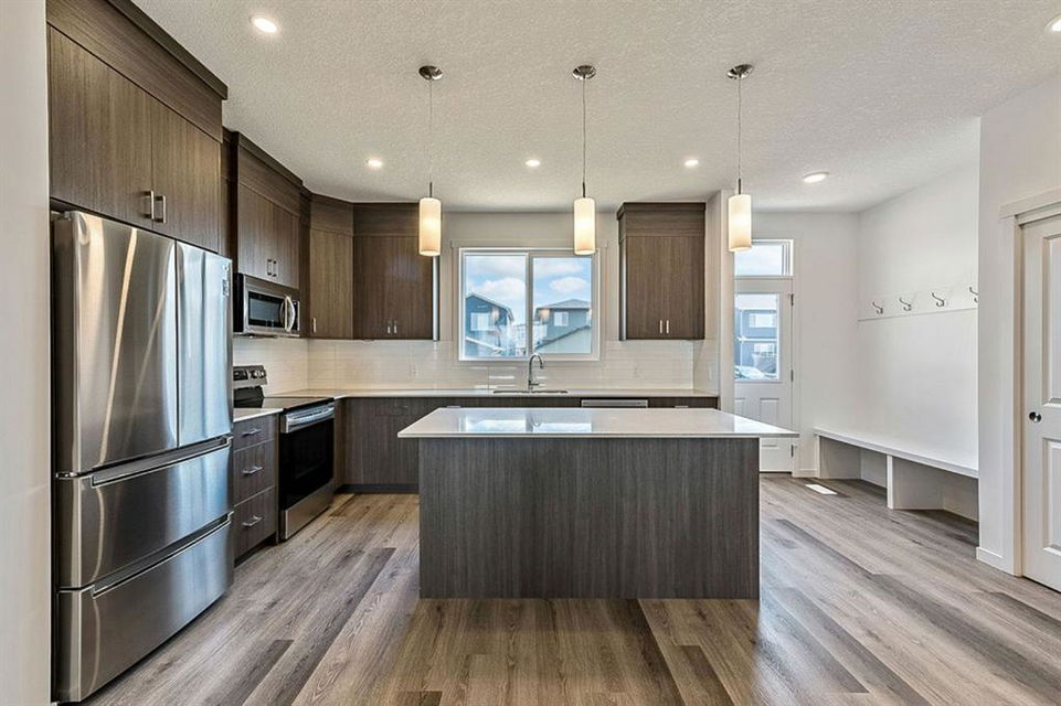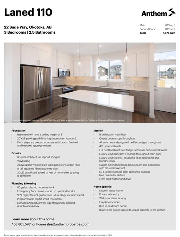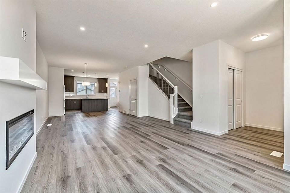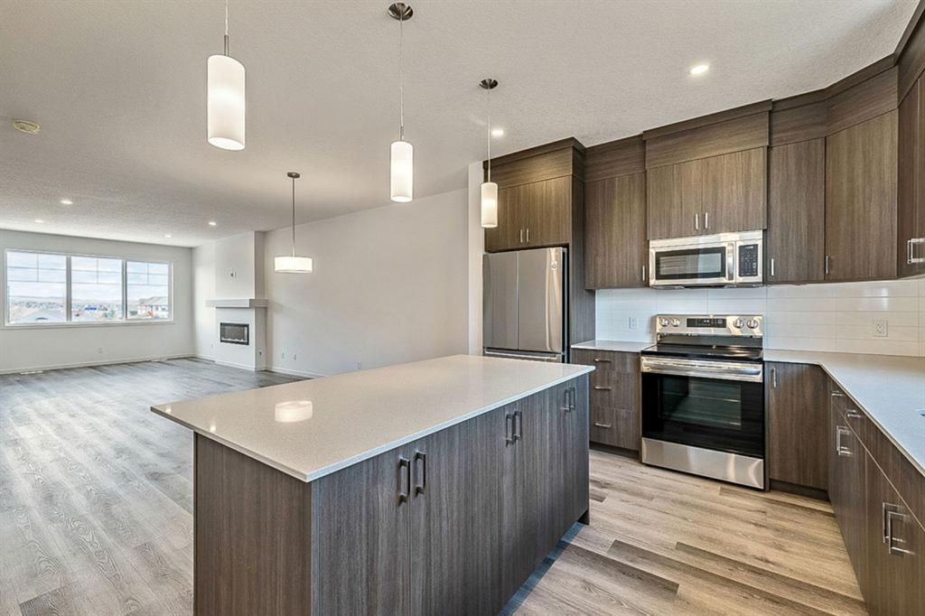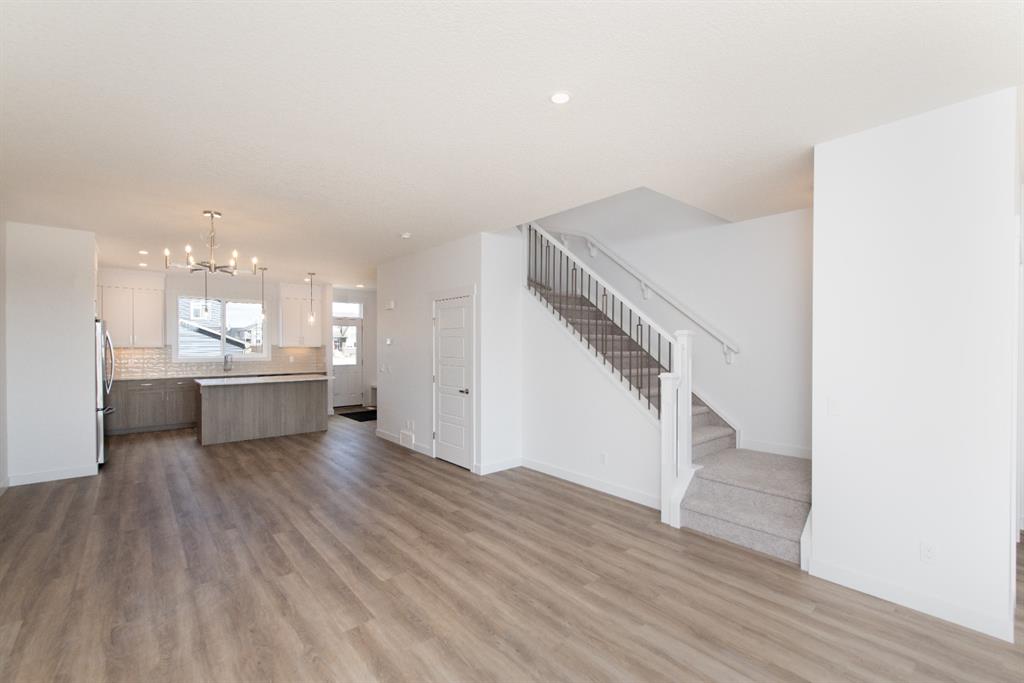 BRAND NEW single family Anthem home under $540K & ready for quick possession in the beautiful community of D’Arcy Ranch, just minutes from local shops, schools, golf courses, restaurants, river paths and gorgeous open spaces, and just 12 minutes south of Calgary! HOME is beautifully finished with 9′ main floor ceiling, large windows, luxury vinyl plank flooring, soft-close cabinetry (40? uppers with riser to ceiling) and quartz countertops throughout. LAYOUT IS SUPERB … MAIN FLOOR features spacious open-concept design with living room & gorgeous fire place, dining room and large kitchen with LG Stainless Steel appliances & oversized island, plus rear hall with built-in mudroom bench. UPPER FLOOR features primary suite with walk-in closet and ensuite bath, two more bedrooms, full bathroom, upstairs walk-in laundry room with LG front load washer & dryer, PLUS a loft/bonus room area. BASEMENT is spacious and offers plenty of optionality for future development with an additional SIDE ENTRANCE (ideal especially for those who are looking to have a home-based business or have extended family living with them). NOTE: photos are of a different home with the identical layout and slightly different cabinet colours. New photos will be uploaded on Saturday.
