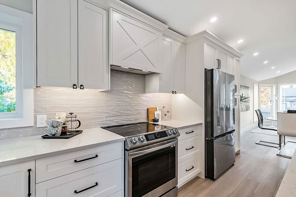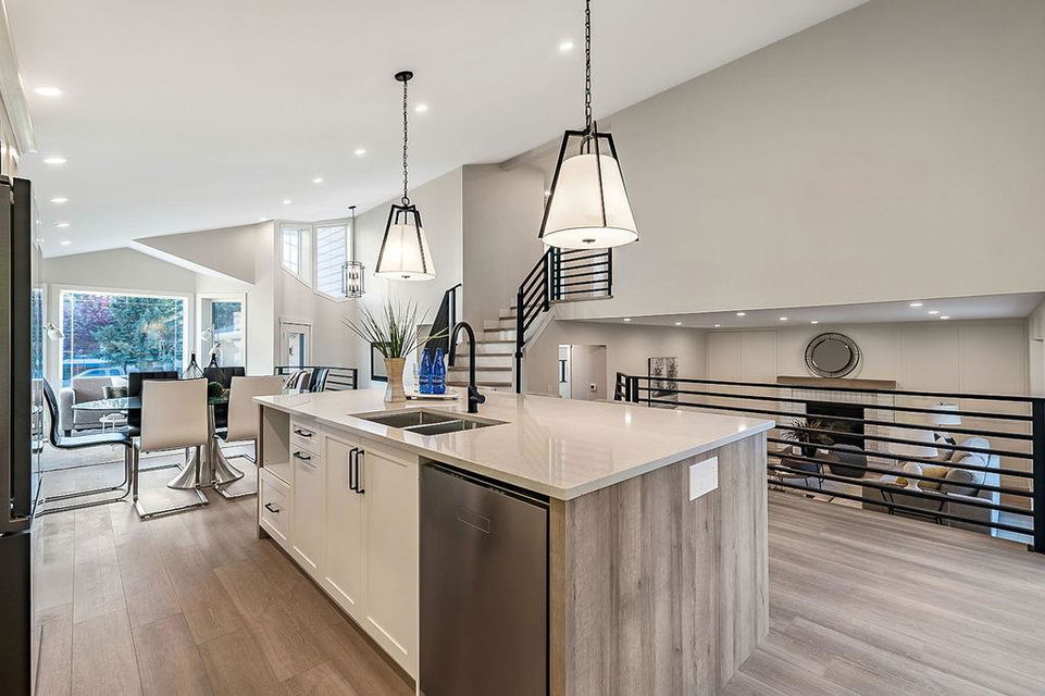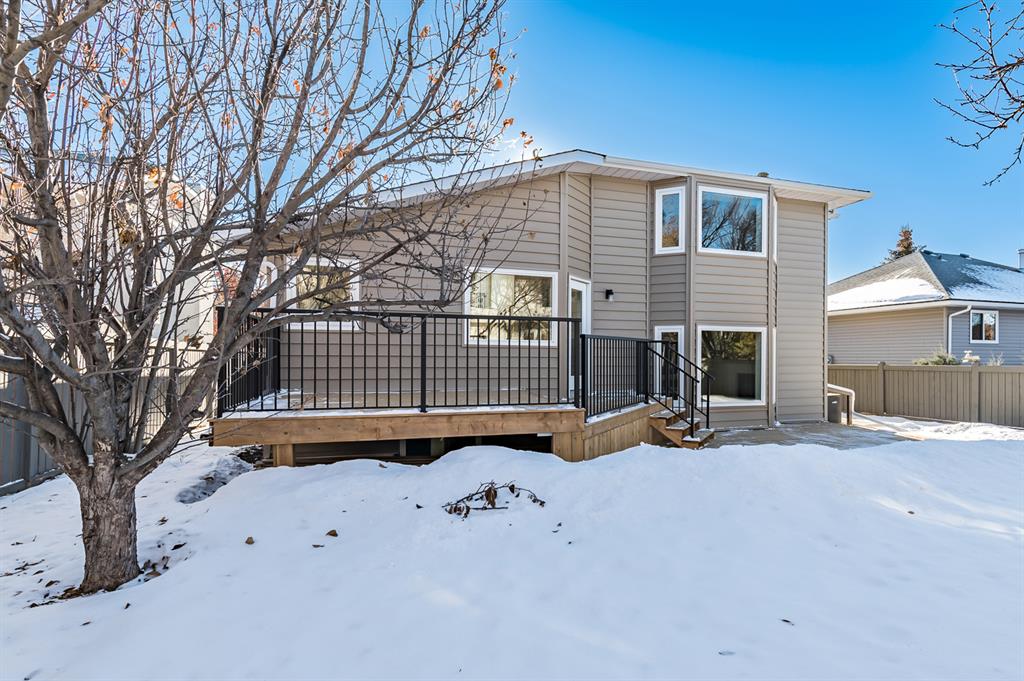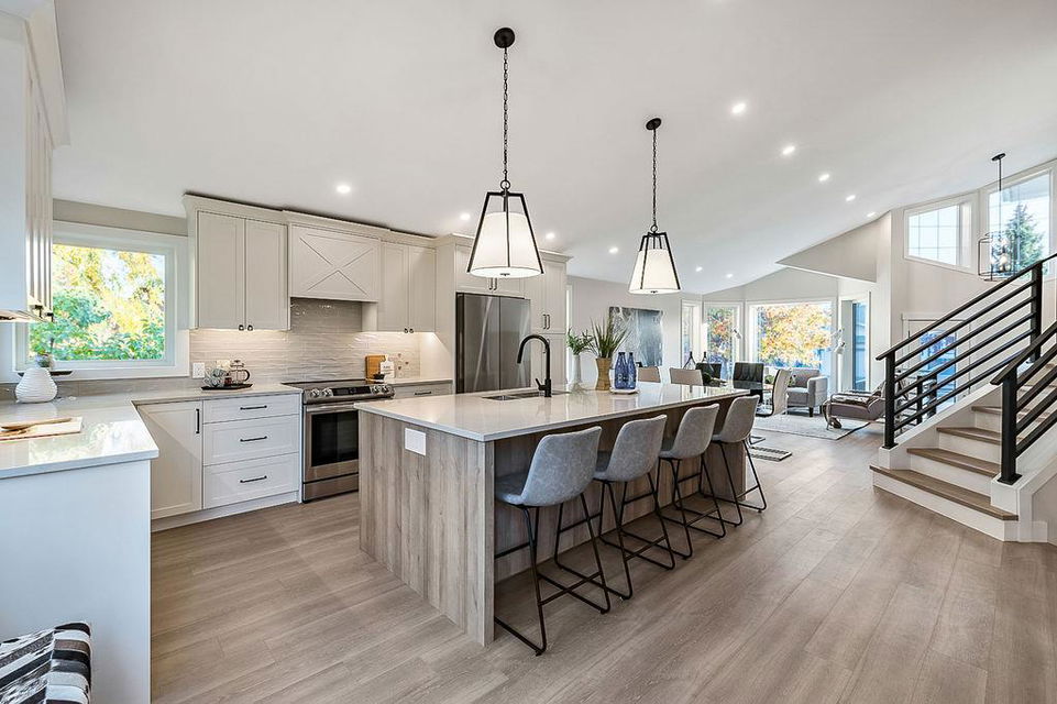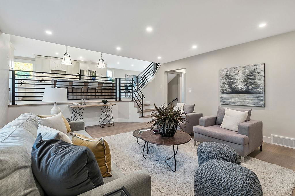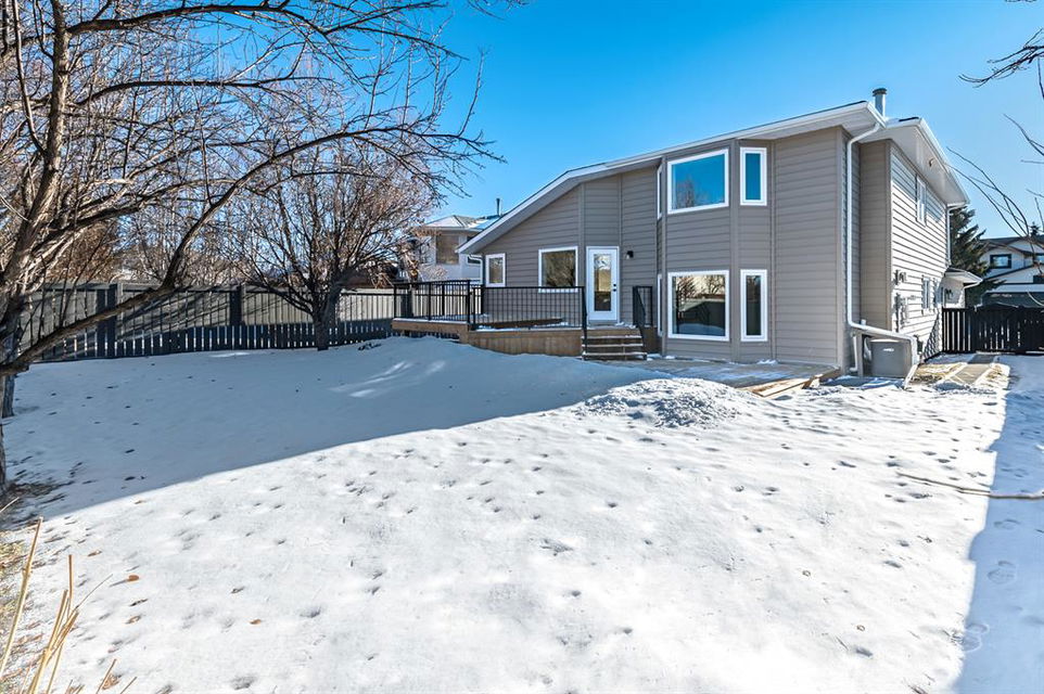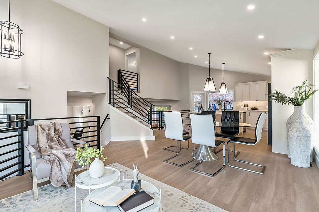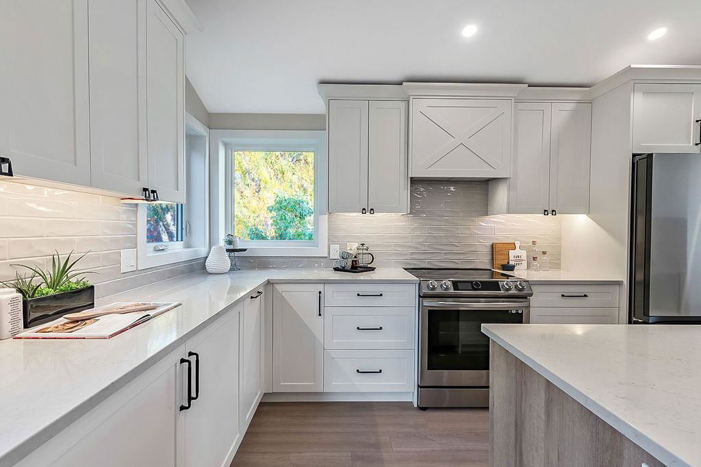 Looking for a gorgeous 5bdrm SUNTREE home w vaulted ceilings and a $355K+ FULL RENOVATION? With 3000sq.ft.+ of MODERN LUXURIES, large yard & mature trees, and a SUPERB LOCATION that’s walking distance to schools, shops, restaurants, cafes … this one checks all the boxes! Home has LARGE WINDOWS & NATURAL LIGHT throughout, DESIGNER FINISHING, 5 BDRMS, spacious MAIN-FLOOR STUDY, two living/family room spaces, games room, and superbly planned storage spaces throughout. MAIN floor features soaring vaulted ceiling plus open-concept style living room, dining area and gorgeous white kitchen with oversized island (with high end appliances, built-in storage under the island, pull-out pantry drawers, Hanstone Quartz & more), family room with fireplace, plus spacious main-floor study with double doors. UPPER floor features primary bedroom with ensuite bath & walk-in closet, two more bedrooms & full bathroom. LOWER level features fourth & fifth bedrooms, another full bathroom, plus huge games room. List of CUSTOM FEATURES is extensive, and includes luxury vinyl plank flooring, upgraded carpet, custom metal railing, designer tiling details in bathrooms, and stunning hardware & lighting throughout. Home comes with A/C, two NEW furnaces, NEW 50gal hot water tank, NEW plex plumbing. BACK YARD is large with mature trees & oversized deck. 5-year warranty from award-winning ReBorn Renovations. All this, in the highly desirable community of Suntree, just blocks from schools, parks, rec centre, and shops/restaurants.