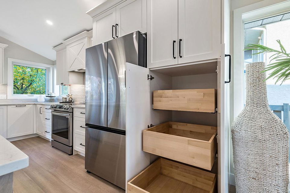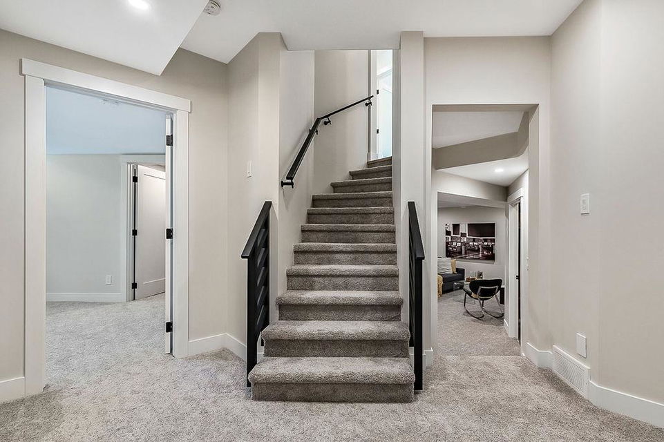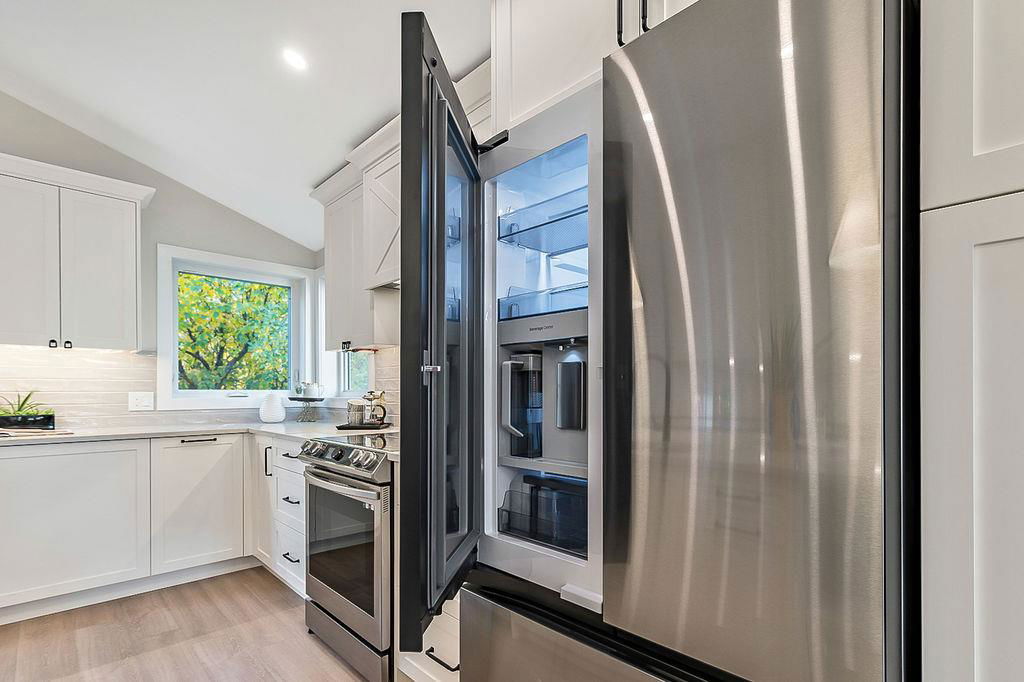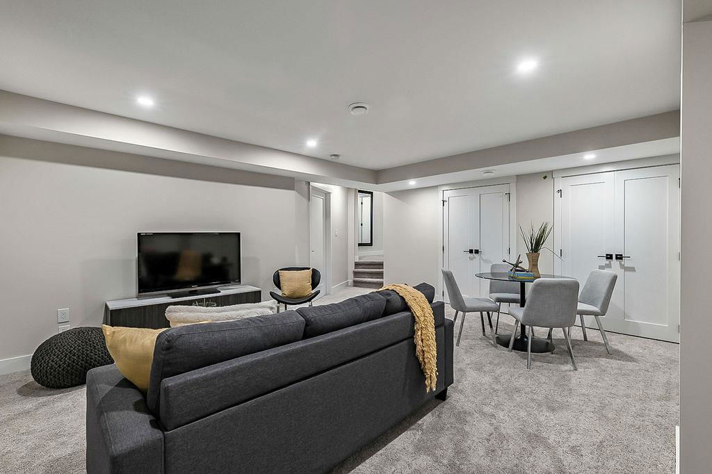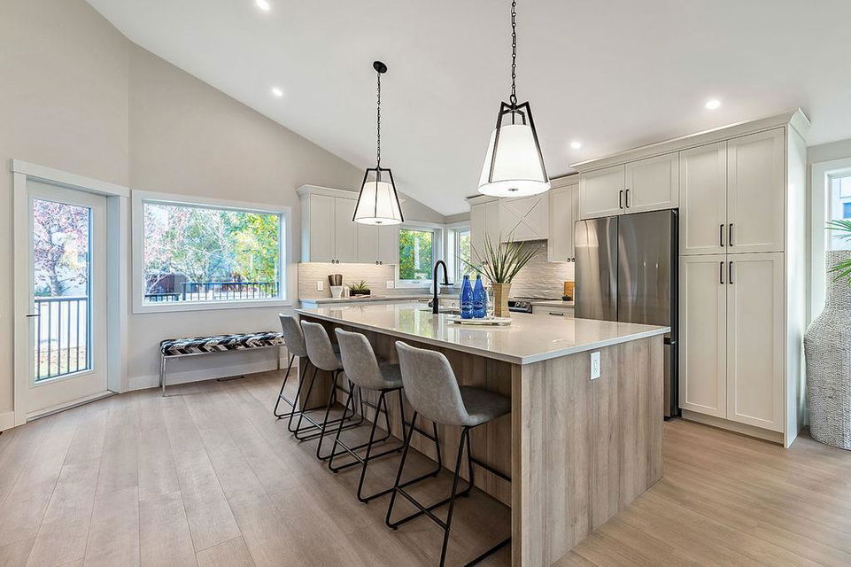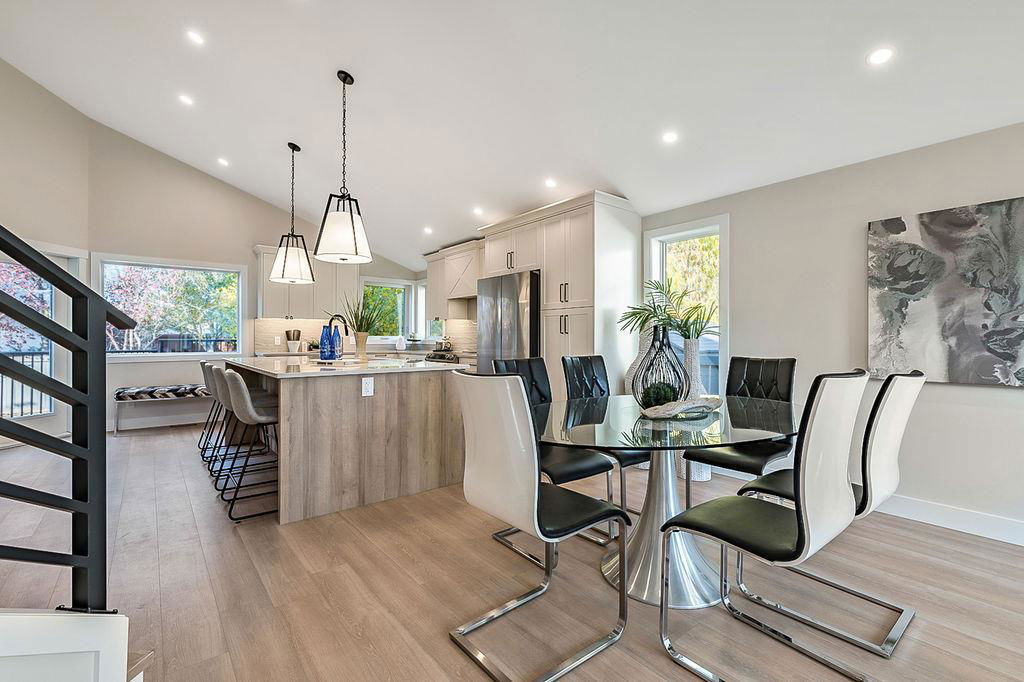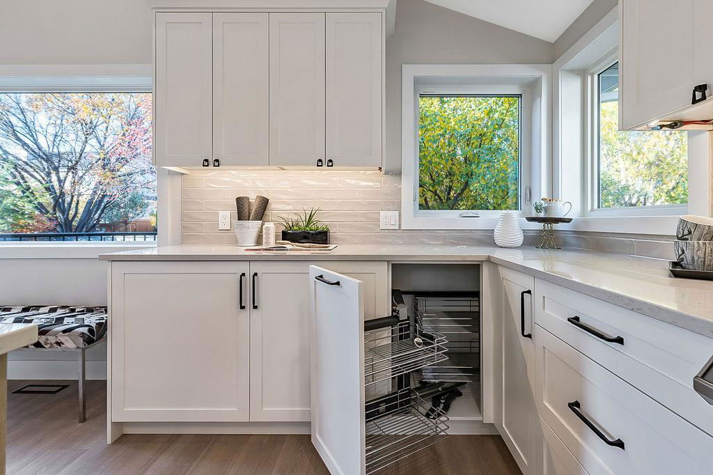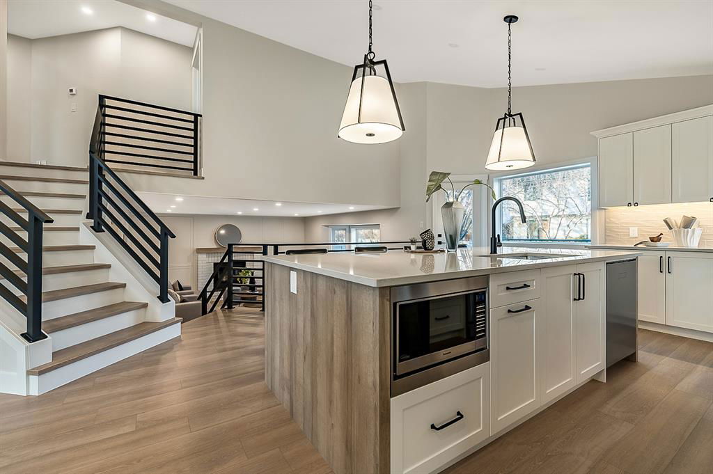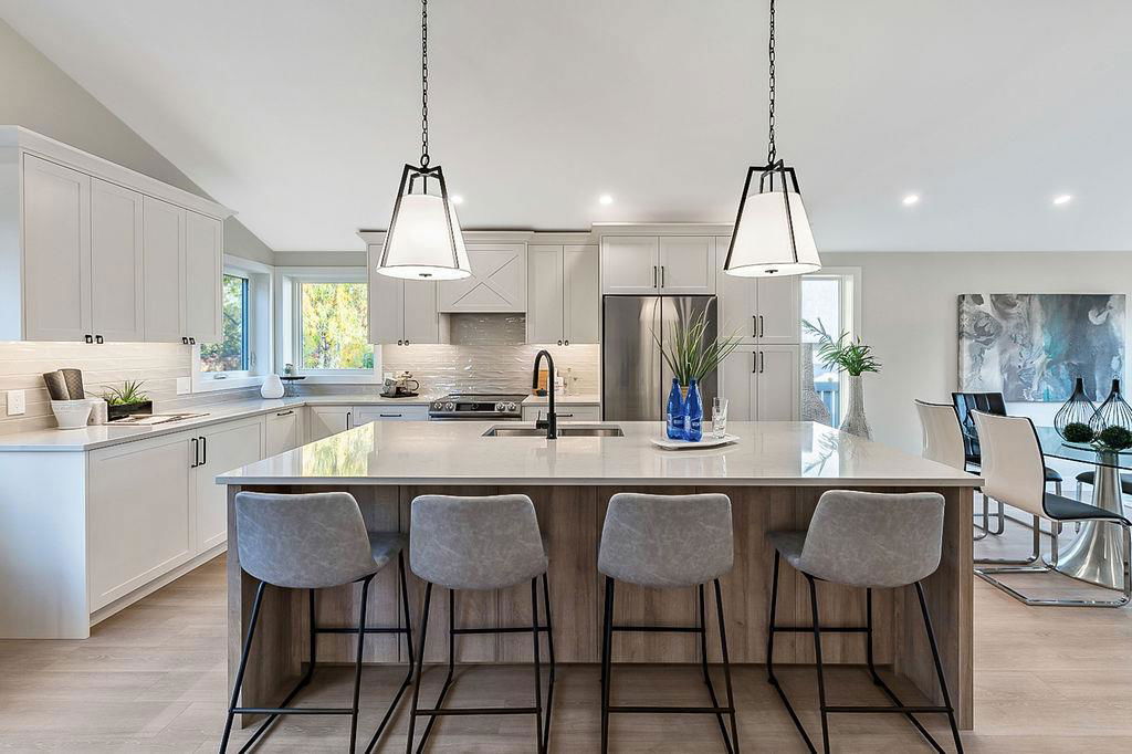Looking for a gorgeous 5bdrm SUNTREE home w vaulted ceilings and a $355K+ FULL RENOVATION? With 3000sq.ft.+ of MODERN LUXURIES, large yard & mature trees, and a SUPERB LOCATION that’s walking distance to schools, shops, restaurants, cafes … this one checks all the boxes! Home has LARGE WINDOWS & NATURAL LIGHT throughout, DESIGNER FINISHING, 5 BDRMS, spacious MAIN-FLOOR STUDY, two living/family room spaces, games room, and superbly planned storage spaces throughout. MAIN floor features soaring vaulted ceiling plus open-concept style living room, dining area and gorgeous white kitchen with oversized island (with high end appliances, built-in storage under the island, pull-out pantry drawers, Hanstone Quartz & more), family room with fireplace, plus spacious main-floor study with double doors. UPPER floor features primary bedroom with ensuite bath & walk-in closet, two more bedrooms & full bathroom. LOWER level features fourth & fifth bedrooms, another full bathroom, plus huge games room. List of CUSTOM FEATURES is extensive, and includes luxury vinyl plank flooring, upgraded carpet, custom metal railing, designer tiling details in bathrooms, and stunning hardware & lighting throughout. Home comes with A/C, two NEW furnaces, NEW 50gal hot water tank, NEW plex plumbing. BACK YARD is large with mature trees & oversized deck. 5-year warranty from award-winning ReBorn Renovations. All this, in the highly desirable community of Suntree, just blocks from schools, parks, rec centre, and shops/restaurants.