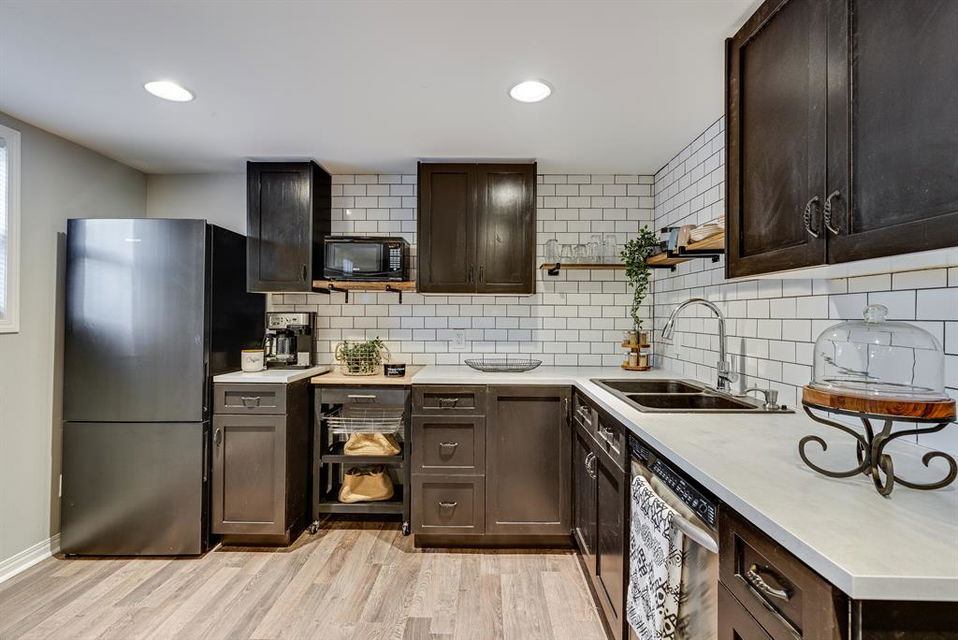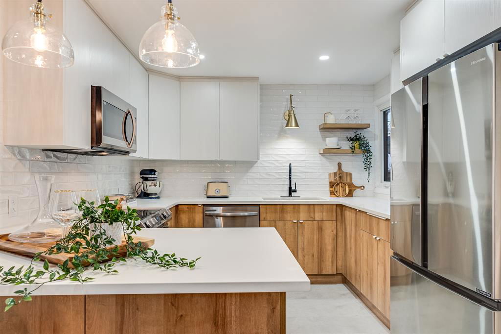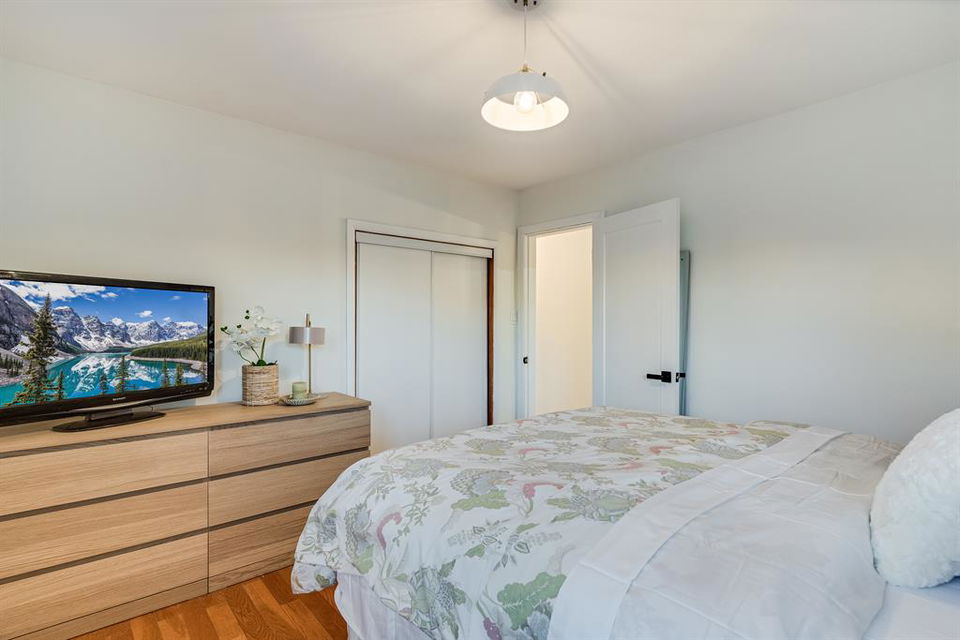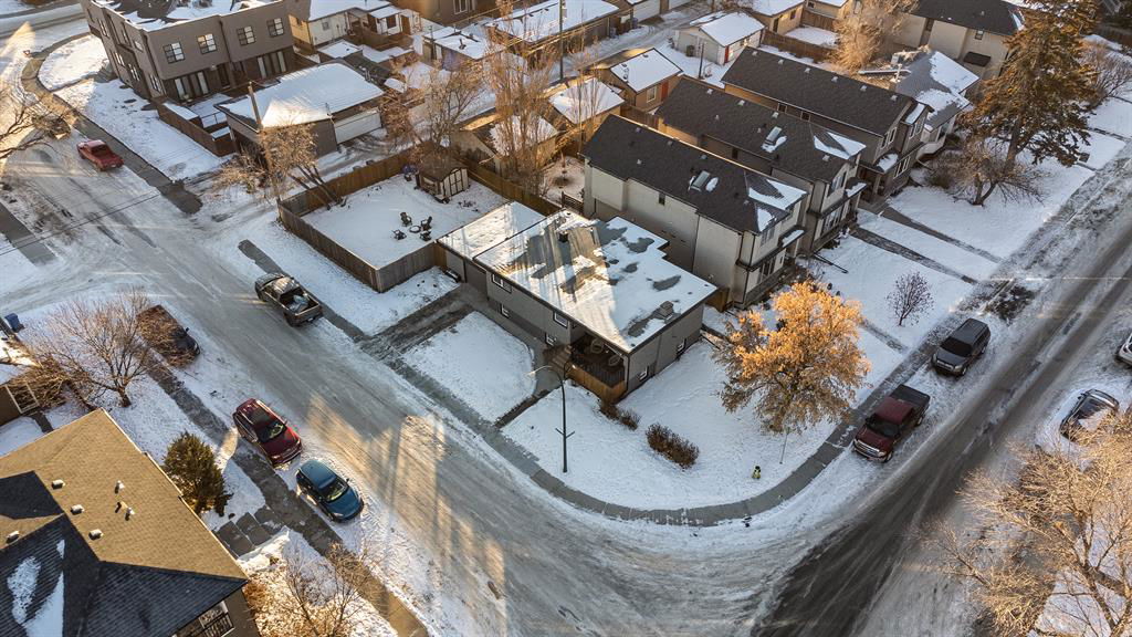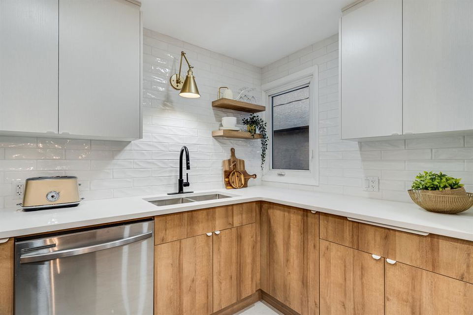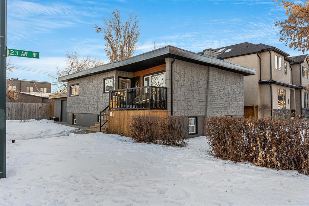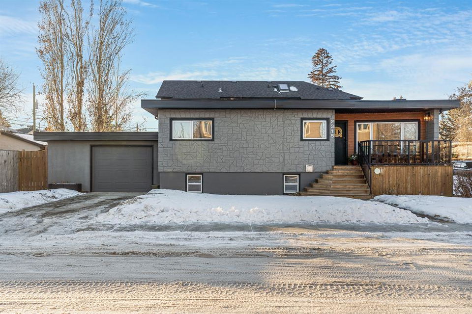 Set on a corner lot, this Winston Heights-Mountview home has been completely transformed, and this fully renovated, professionally decorated property absolutely exudes charm. Original hardwood is a beautiful base for a Scandinavian design, full of light woods and bright whites. Statement elements include exposed beams and decorative wall cut-outs that add personality to the space. The living room looks out through big picture windows and is open to a large dining area. The kitchen offers extensive counterspace, including a serving bar adjacent to the dining room, and a coffee credenza. An eat-up peninsula island with quartz countertops makes entertaining and cooking a breeze, and again, the contrast of white and wood is serene and inviting. High-end appliances in stainless steel include a French door fridge, flat-top range, a dishwasher, and a microwave hood fan. Thoughtful lighting is evident, with pot lights and unique pendants, as well as a retractable lamp over the sink. A big window keeps your prep area bright and luxury vinyl plank flooring is an additional upgrade, plus, the entire house has been freshly painted. Two bedrooms are both sizable with large closets, and the main bathroom features an absolutely stunning remodel. A dual vanity offers tons of storage, and the tub surround is gorgeous in oversize subway tiles. This home has an attached garage as well! In the basement, a newly renovated illegal suite is also beautiful! A large living and dining area is next to a kitchenette, where full-size windows, luxury finishes and quality appliances are rare and coveted elements, as is the statement gas fireplace. Two more bedrooms here make this a great option for in-laws or a couple, and the bathrooms includes plenty of storage, a tiled shower, and a laundry area with hanging and folding space as well as extra storage. Outside, the backyard is massive with a large deck, a shed, and a firepit, as well as mature trees. Exterior upgrades include paint and cedar siding, and this home is amazingly located. Just a few blocks will take you to the off-leash park or the golf club, and nearby 16th Avenue and Edmonton Trail conveniently connect you to downtown, or around town. There are several restaurants and shops within walking distance, as well as schools and parks, and you can access all the amenities you need in just minutes. This is an amazing opportunity to own with a potential mortgage helper! Book your showing today!