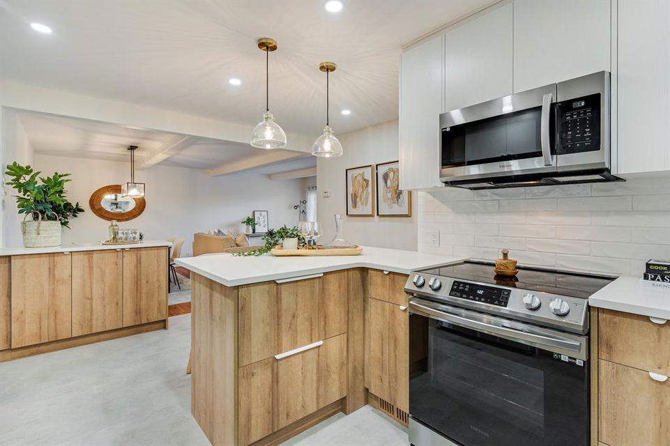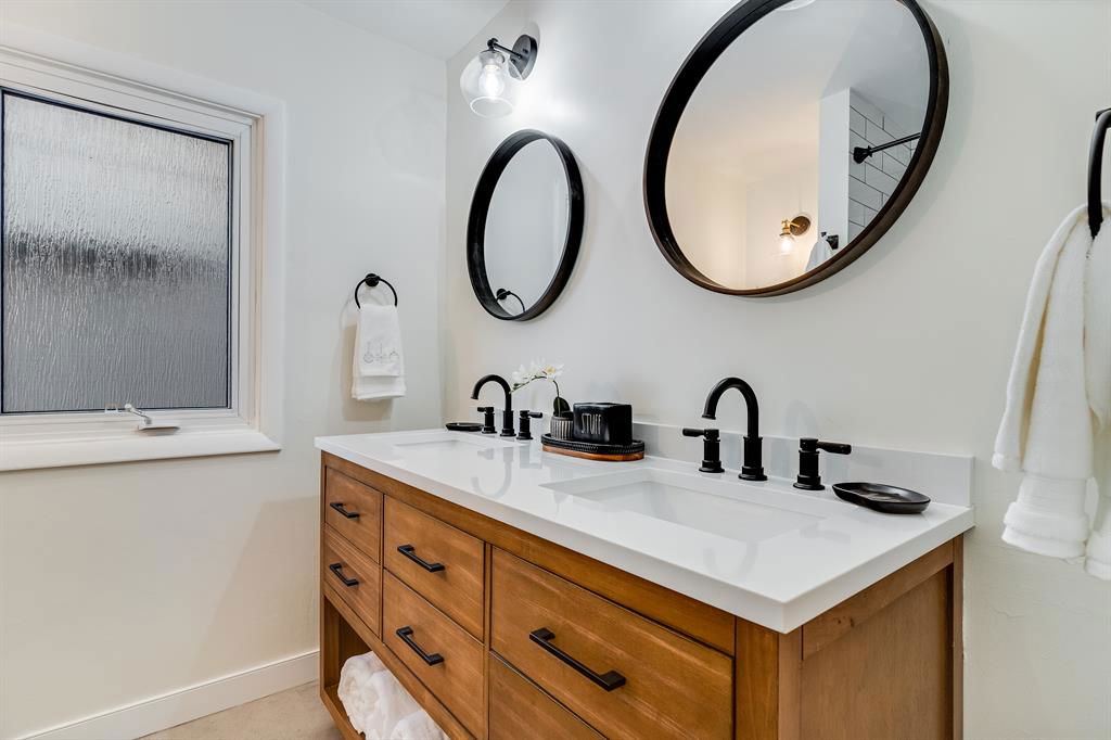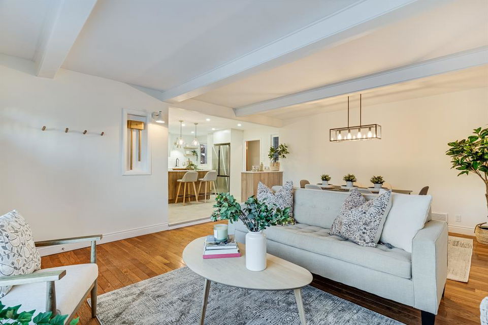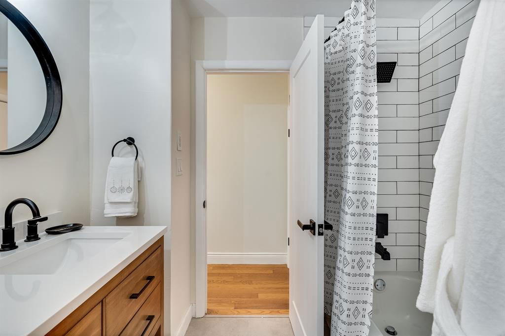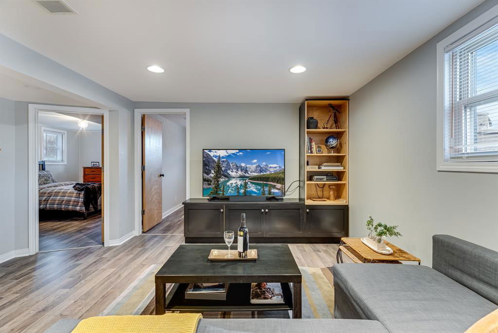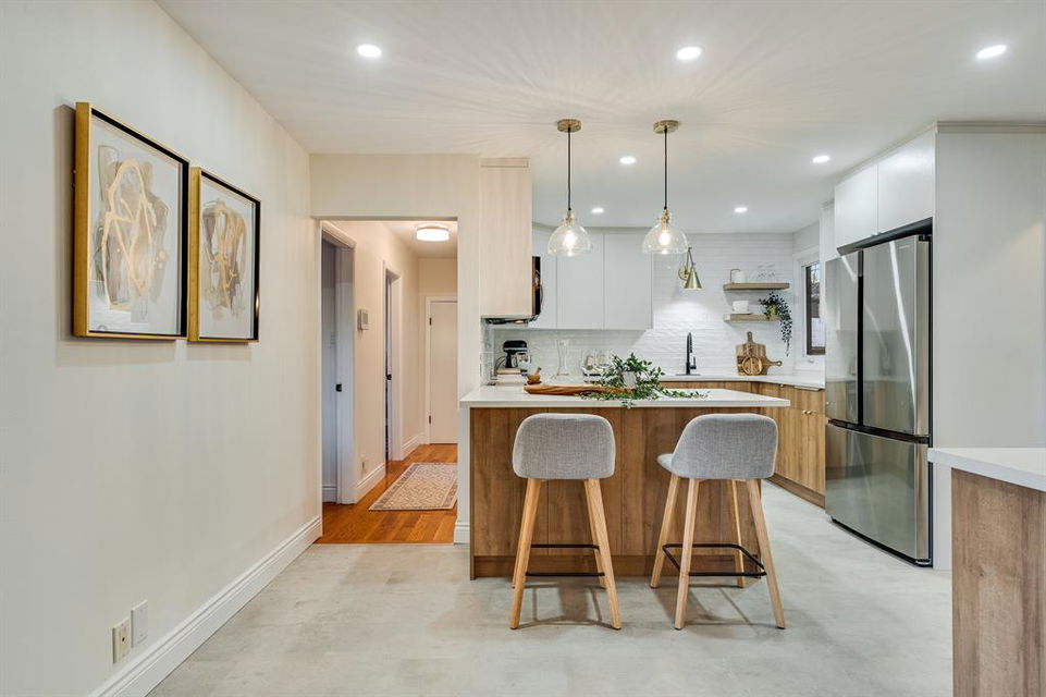 Set on a corner lot, this Winston Heights-Mountview home has been completely transformed, and this fully renovated, professionally decorated property absolutely exudes charm. Original hardwood is a beautiful base for a Scandinavian design, full of light woods and bright whites. Statement elements include exposed beams and decorative wall cut-outs that add personality to the space. The living room looks out through big picture windows and is open to a large dining area. The kitchen offers extensive counterspace, including a serving bar adjacent to the dining room, and a coffee credenza. An eat-up peninsula island with quartz countertops makes entertaining and cooking a breeze, and again, the contrast of white and wood is serene and inviting. High-end appliances in stainless steel include a French door fridge, flat-top range, a dishwasher, and a microwave hood fan. Thoughtful lighting is evident, with pot lights and unique pendants, as well as a retractable lamp over the sink. A big window keeps your prep area bright and luxury vinyl plank flooring is an additional upgrade, plus, the entire house has been freshly painted. Two bedrooms are both sizable with large closets, and the main bathroom features an absolutely stunning remodel. A dual vanity offers tons of storage, and the tub surround is gorgeous in oversize subway tiles. This home has an attached garage as well! In the basement, a newly renovated illegal suite is also beautiful! A large living and dining area is next to a kitchenette, where full-size windows, luxury finishes and quality appliances are rare and coveted elements, as is the statement gas fireplace. Two more bedrooms here make this a great option for in-laws or a couple, and the bathrooms includes plenty of storage, a tiled shower, and a laundry area with hanging and folding space as well as extra storage. Outside, the backyard is massive with a large deck, a shed, and a firepit, as well as mature trees. Exterior upgrades include paint and cedar siding, and this home is amazingly located. Just a few blocks will take you to the off-leash park or the golf club, and nearby 16th Avenue and Edmonton Trail conveniently connect you to downtown, or around town. There are several restaurants and shops within walking distance, as well as schools and parks, and you can access all the amenities you need in just minutes. This is an amazing opportunity to own with a potential mortgage helper! Book your showing today!