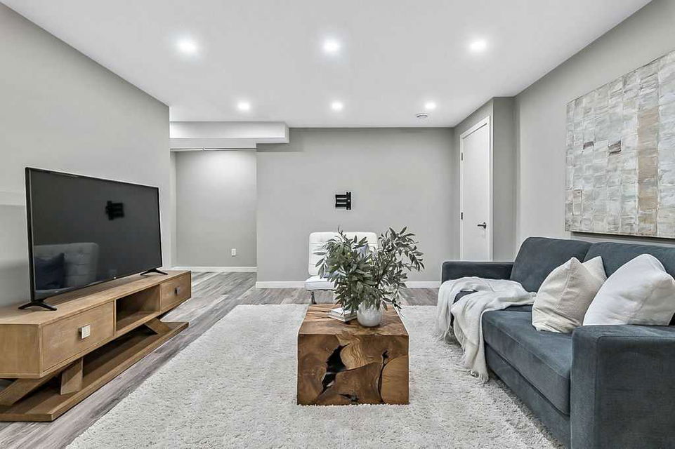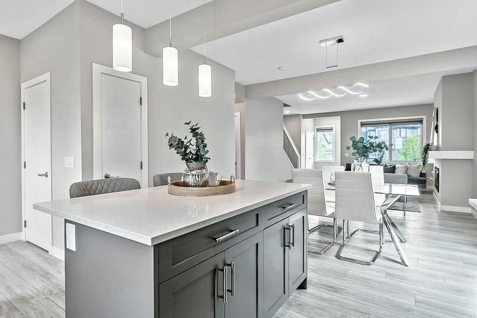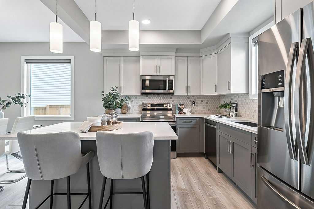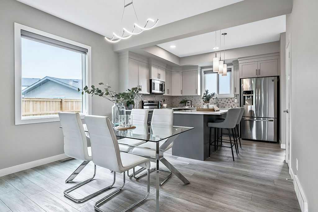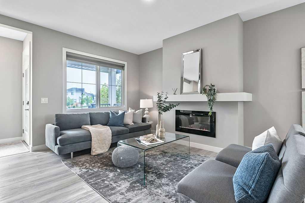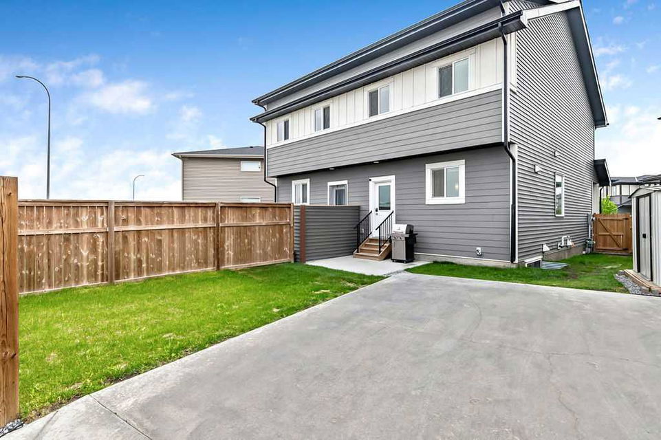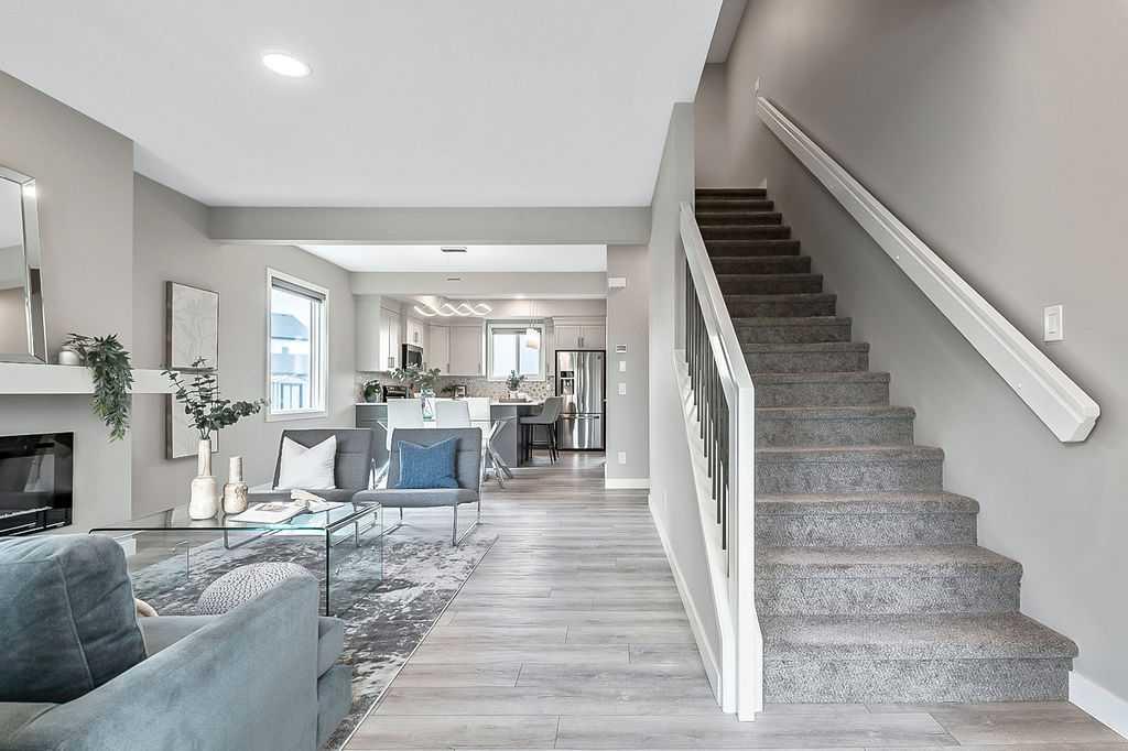 FULLY DEVELOPED nearly new 4BDRM 3.5BATH HOME ON GORGEOUS PIE LOT in the beautiful community of Pine Creek! One step inside this home and you will fall in love with its open concept layout, beautiful contemporary finishing, and superb natural lighting with large windows throughout. MAIN FLOOR features large living room with fire place, dining area, and stunning kitchen with light & dark cabinetry, quartz, stainless steel appliances and island. UPPER FLOORS features primary bedroom with en-suite bath and walk-in closet, two additional bedrooms, full bathroom, and laundry. BASEMENT is fully developed with recreation room, fourth bedroom, fifth room which is perfect as a home office, and another full bathroom. BACK YARD is absolutely perfect, as it is landscaped, private with views & no homes behind, offers immediate access to private laned cul-de-sac out back for endless hours of fun for kids (who else has a private cul-de-sac out back where kids can ride their bicycles without the threat of cars?), larger than most, and ready for onsite parking with 22’x22′ garage pad. LOCATION is great with very quiet crescent in family-oriented neighbourhood, walking paths and ponds and playgrounds nearby, and easy proximity to Stoney Trail & Macleod with unlimited amenities. Truly, this home is stunning, turn-key and completely move-in ready!