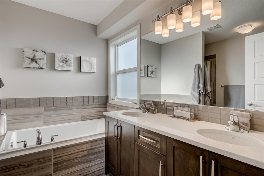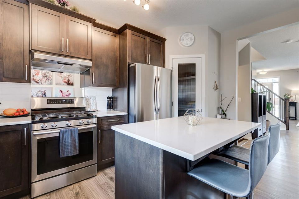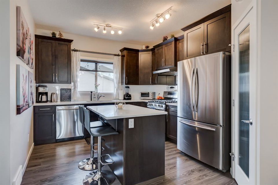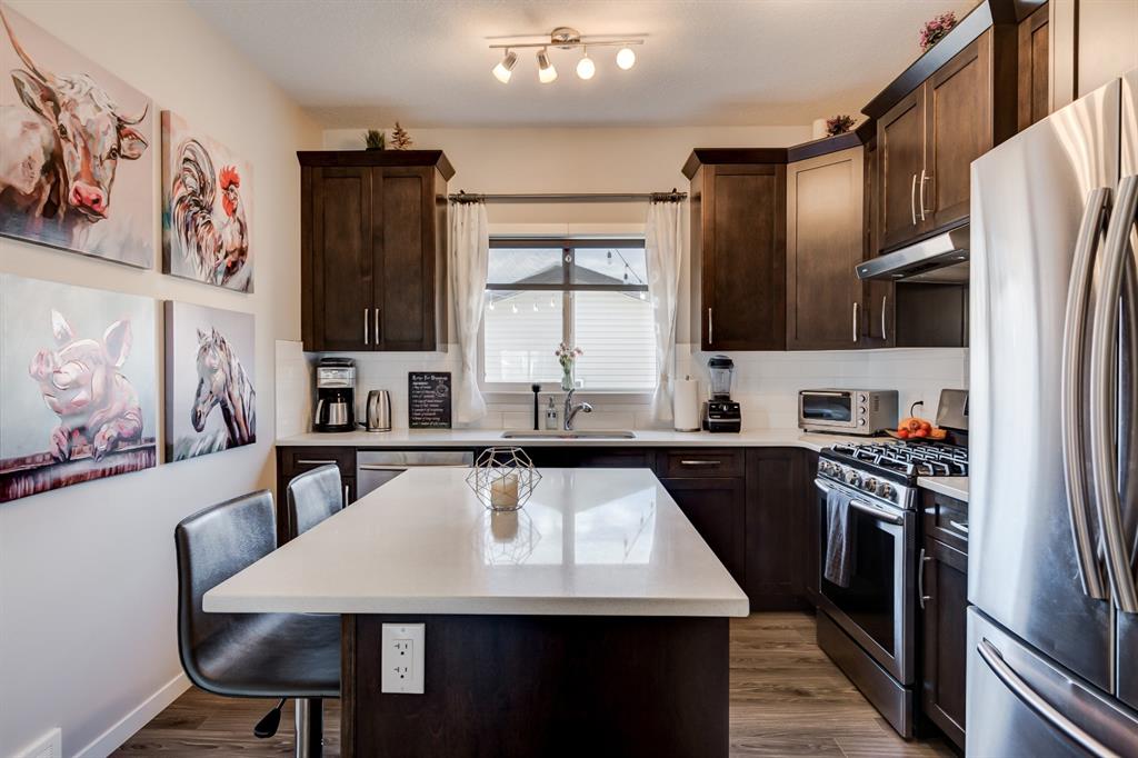 Welcome to this fantastic upgraded detached family home in Drake Landing. Loads of upgrades throughout including granite counters for all countertops including bathrooms, gas stove, luxury laminate floors, extended height kitchen cabinets, 9ft ceiling on main, vinyl flooring in basement, Hunter Douglas Blinds, pot lighting and a large 24’ X 24’ detached garage. Your first impression is the beauty curb appeal with a lovely covered porch and stone work at the front of the home. Inside is a bright & airy living room with gas fireplace, spacious dining room & great kitchen with upgraded stainless steel appliances including gas stove, gleaming granite, extended height cabinets & a walk in pantry. There is a nice office space on the main floor, 1/2 bath and a mud room. Upstairs features 3 good sized bedrooms, the master with vaulted ceiling, large walk-in closet, 5pc ensuite with his and hers sinks, deep soaker tub and separate shower. A nice laundry room with added storage space and 4pc bath complete this level. The basement is fully finished with a rec room that includes a nice bar/kitchen space with sink and fridge, 4th bedroom, loads of storage and utility room. Outside we have a large west facing deck, nice landscaping and a huge 24’ X 24’ garage. Fantastic move-in ready family home.