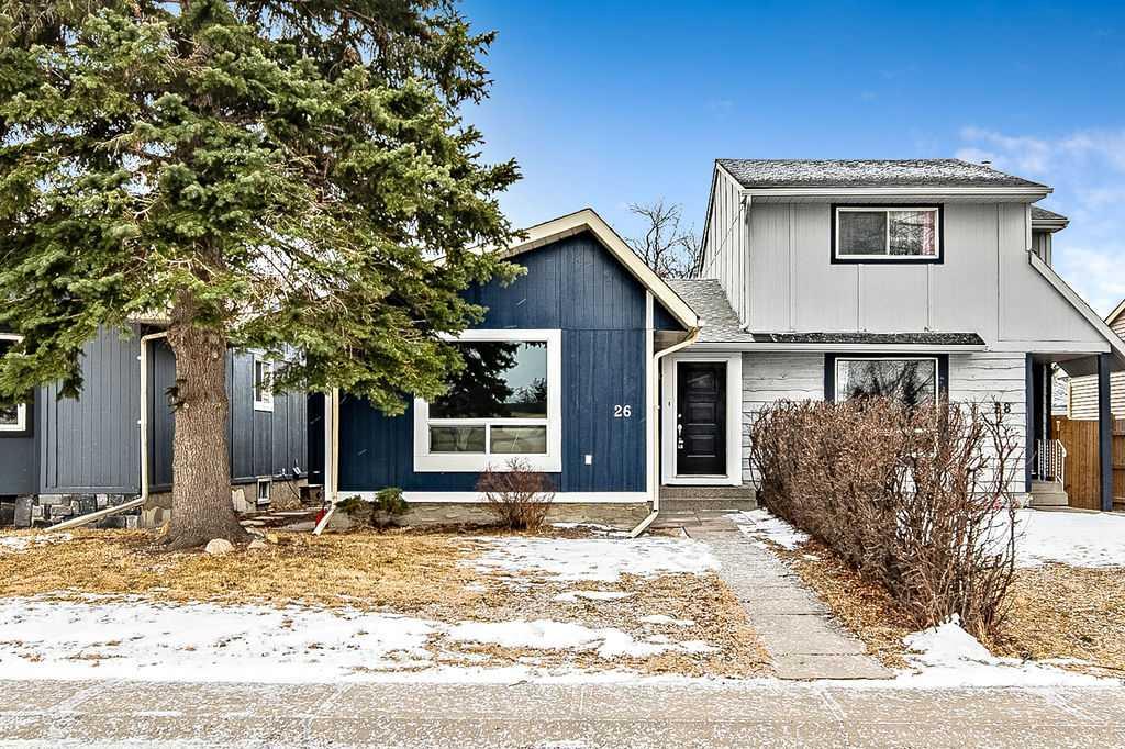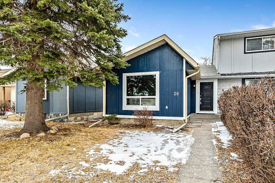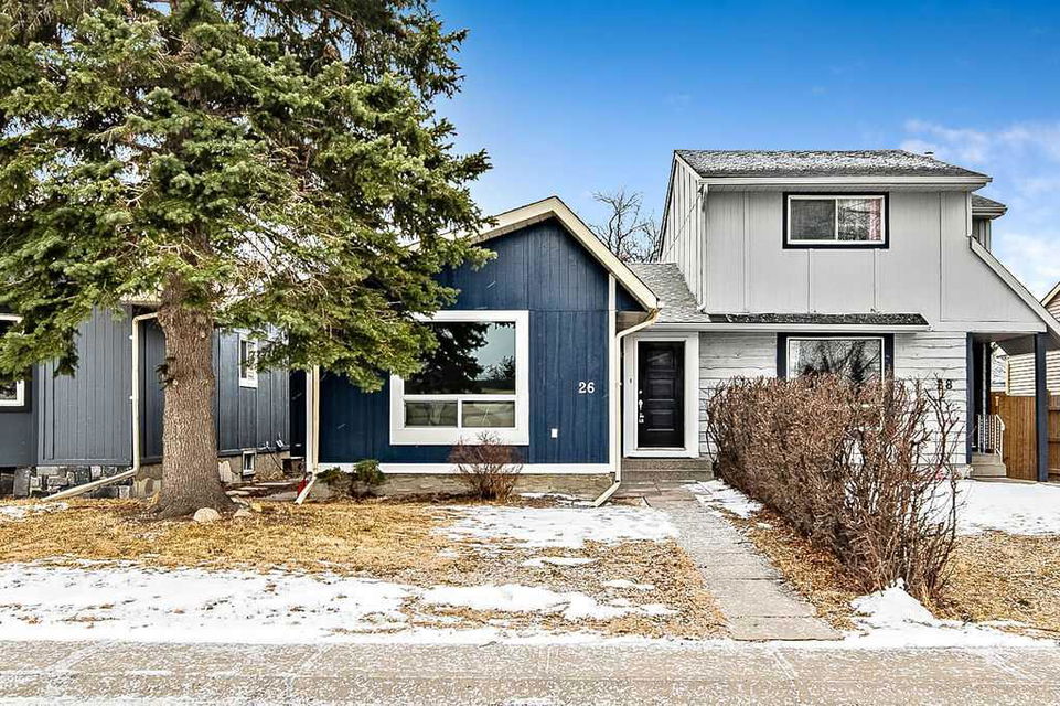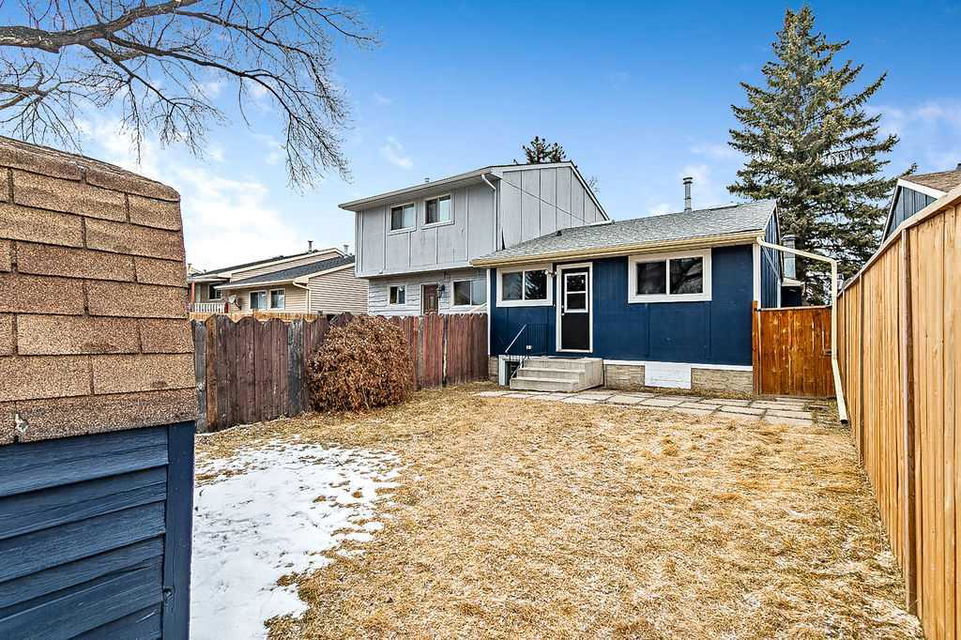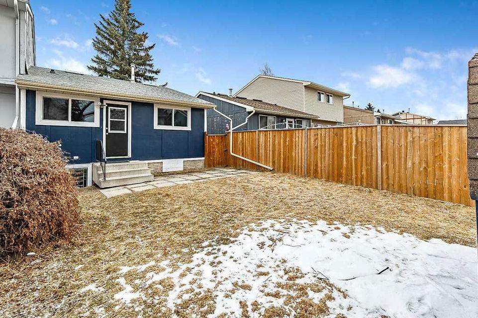 **OPEN HOUSE Sat 3-5** BEAUTIFULLY UPDATED Falconridge bungalow across from school park and with separate illegal basement suite! MAIN FLOOR features living room with wood burning fireplace and large windows, kitchen with white cabinets, butcher block countertops & stainless steel appliances, and spacious dining nook. Two bedrooms, full bathroom, and stacked laundry complete this level. BASEMENT is well appointed and features open concept living room, second kitchen, second set of laundry, full bathroom, bedroom and study. SOUTH EXPOSURE BACK YARD is fully fenced and features mature vegetation. FANTASTIC LOCATION in family neighbourhood on quiet street across from school yard, close to shopping and amenities, and with easy access to Stoney Trail and Mcknight Blvd. RECENT UPDATES – new paint (2025), new vinyl plank & carpet (2025), newer kitchen appliances (2020-2025), roof (2014), windows (2019), new paint exterior (2024).