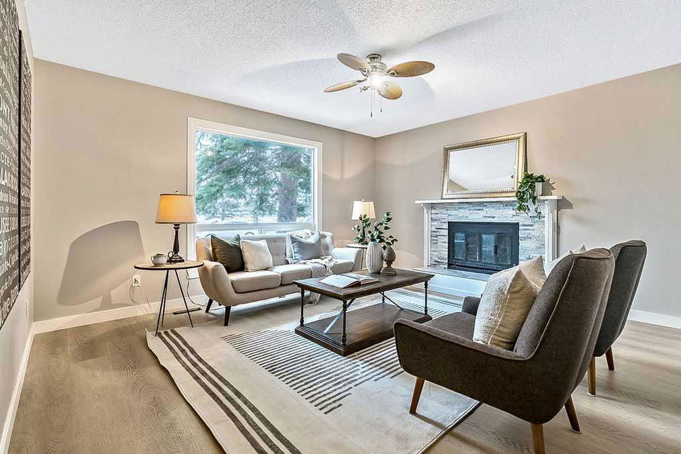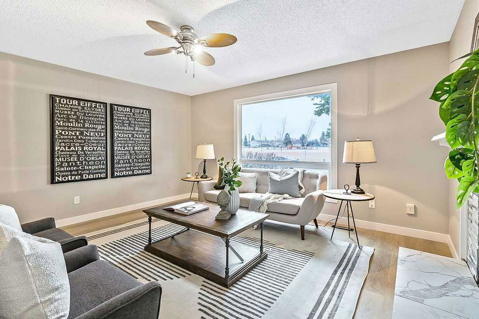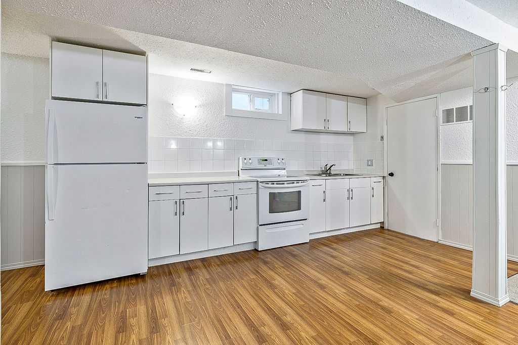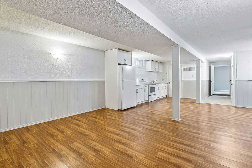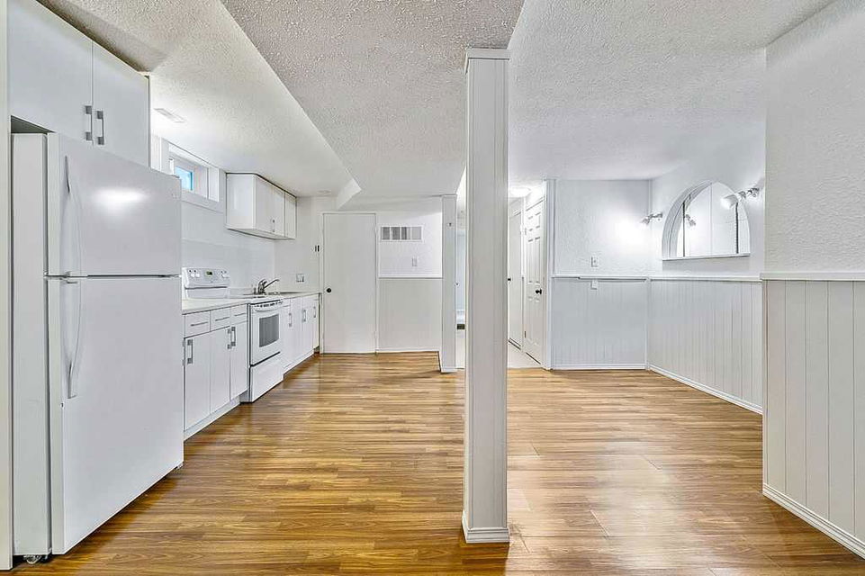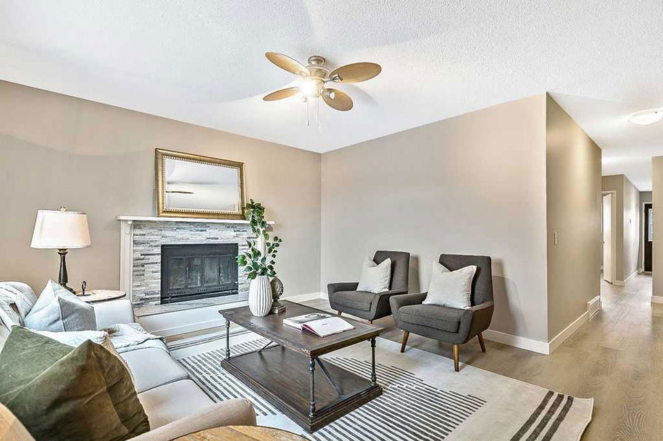 **OPEN HOUSE Sat 3-5** BEAUTIFULLY UPDATED Falconridge bungalow across from school park and with separate illegal basement suite! MAIN FLOOR features living room with wood burning fireplace and large windows, kitchen with white cabinets, butcher block countertops & stainless steel appliances, and spacious dining nook. Two bedrooms, full bathroom, and stacked laundry complete this level. BASEMENT is well appointed and features open concept living room, second kitchen, second set of laundry, full bathroom, bedroom and study. SOUTH EXPOSURE BACK YARD is fully fenced and features mature vegetation. FANTASTIC LOCATION in family neighbourhood on quiet street across from school yard, close to shopping and amenities, and with easy access to Stoney Trail and Mcknight Blvd. RECENT UPDATES – new paint (2025), new vinyl plank & carpet (2025), newer kitchen appliances (2020-2025), roof (2014), windows (2019), new paint exterior (2024).