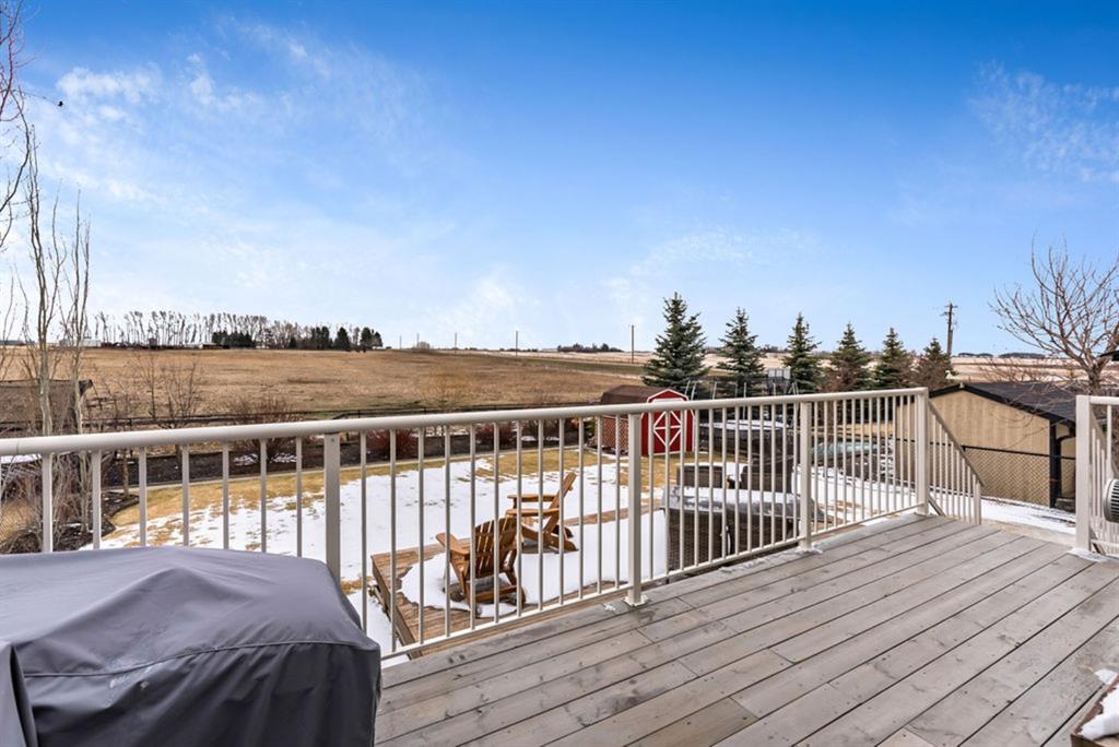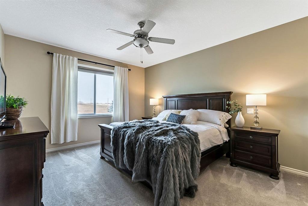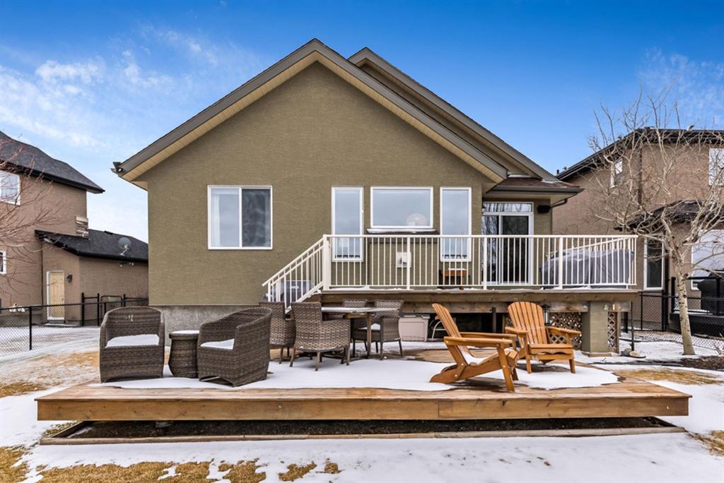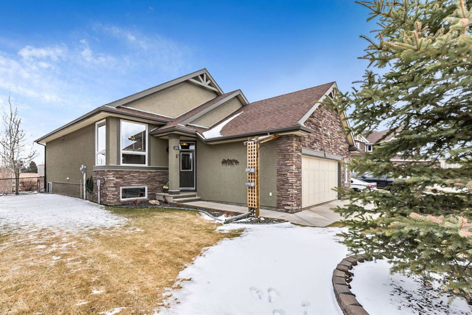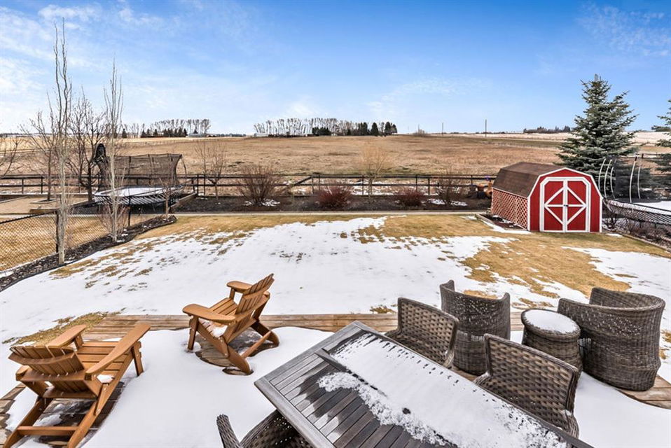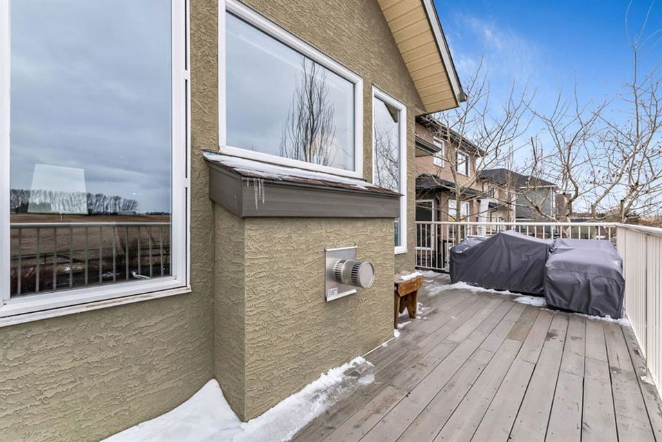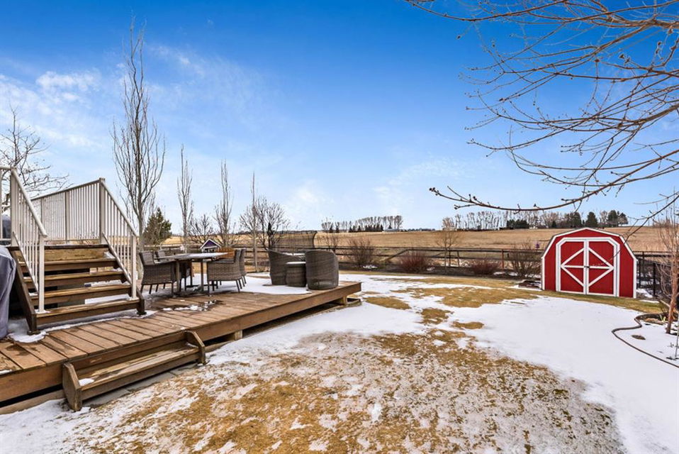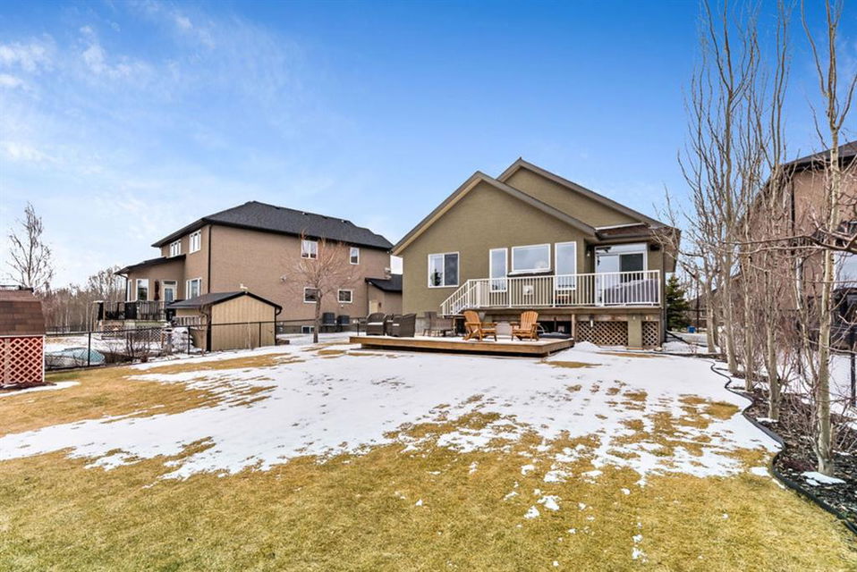 BEAUTIFUL BUNGALOW in the upscale neighbourhood of AIR RANCH, located in a QUIET CUL-DE-SAC on HUGE 167’ by 59’ LOT with mature vegetation! Main floor features front flex room, followed by open concept living room w fireplace, dining room, and awesome kitchen with large island, maple cabinetry, granite and ss appliances. This space opens up to stunning back yard with tiered 20’ by 20’ deck great for entertaining, and offers views of farmers’ fields & horses grazing in the distance. Master bedroom with 5 piece ensuite and walk-in closet, a second bedroom and second bathroom, and main floor laundry complete this level. Basement features 10’ CEILING HEIGHT, OVERSIZED WINDOWS, and offers a huge recreation room with fire place, rough-in for wetbar, third bedroom and a third full bathroom. Fourth bedroom is framed. A/C, new water heater, water softener, and oversized 21’4″x24’3″ garage with heater complete this home. Truly a gem, and PERFECT for discerning buyers who want QUALITY, AFFORDABILITY, COMFORT, EASE, AND QUIET SETTING within easy access of great amenities, parks, paths, shopping, and recreation. CLICK 3D for virtual tour!