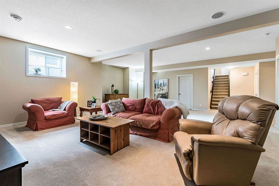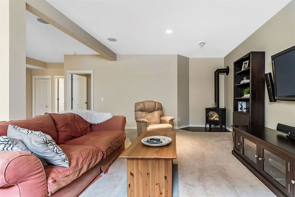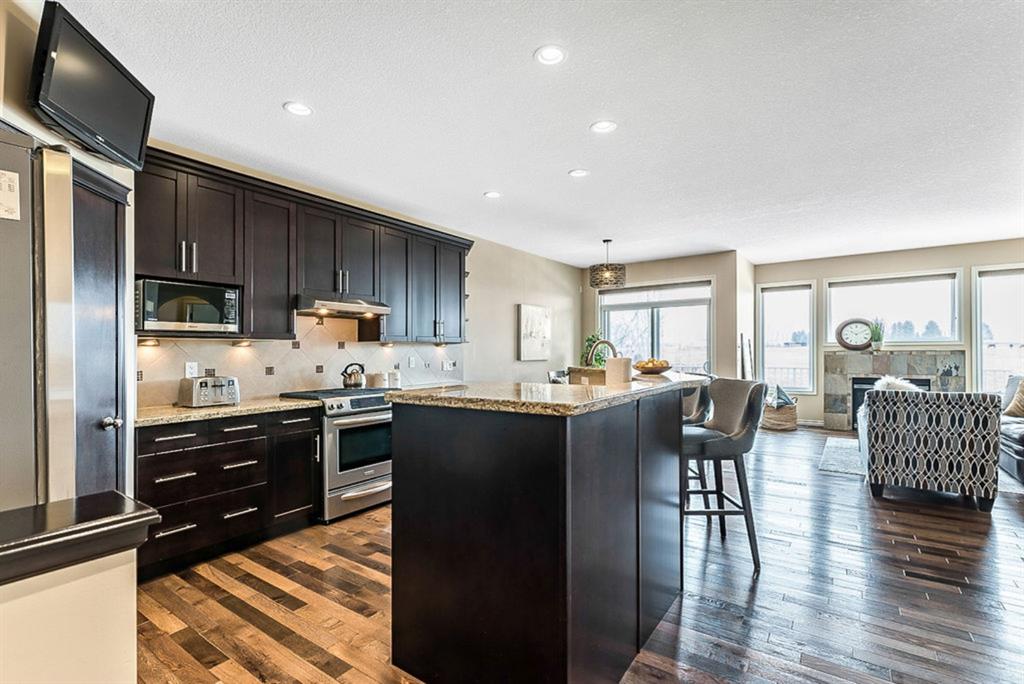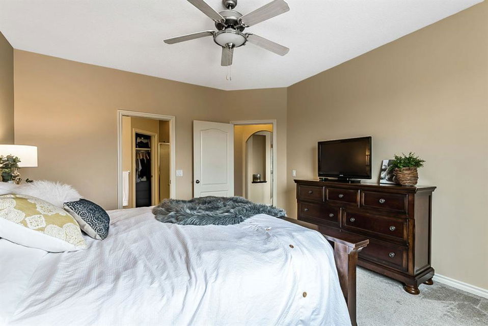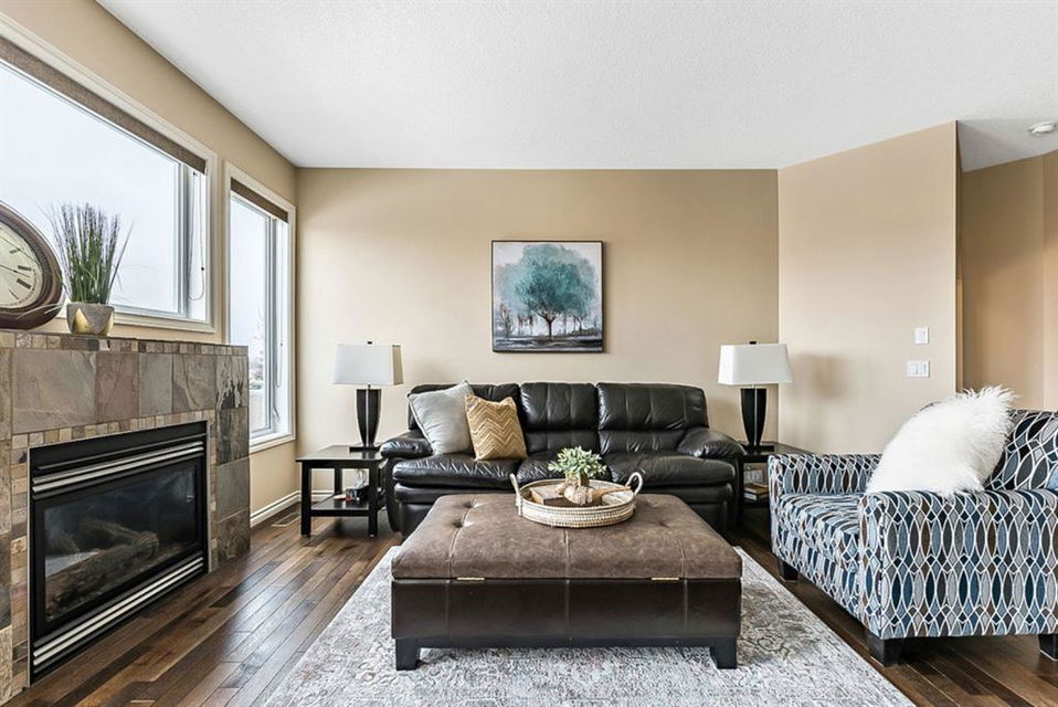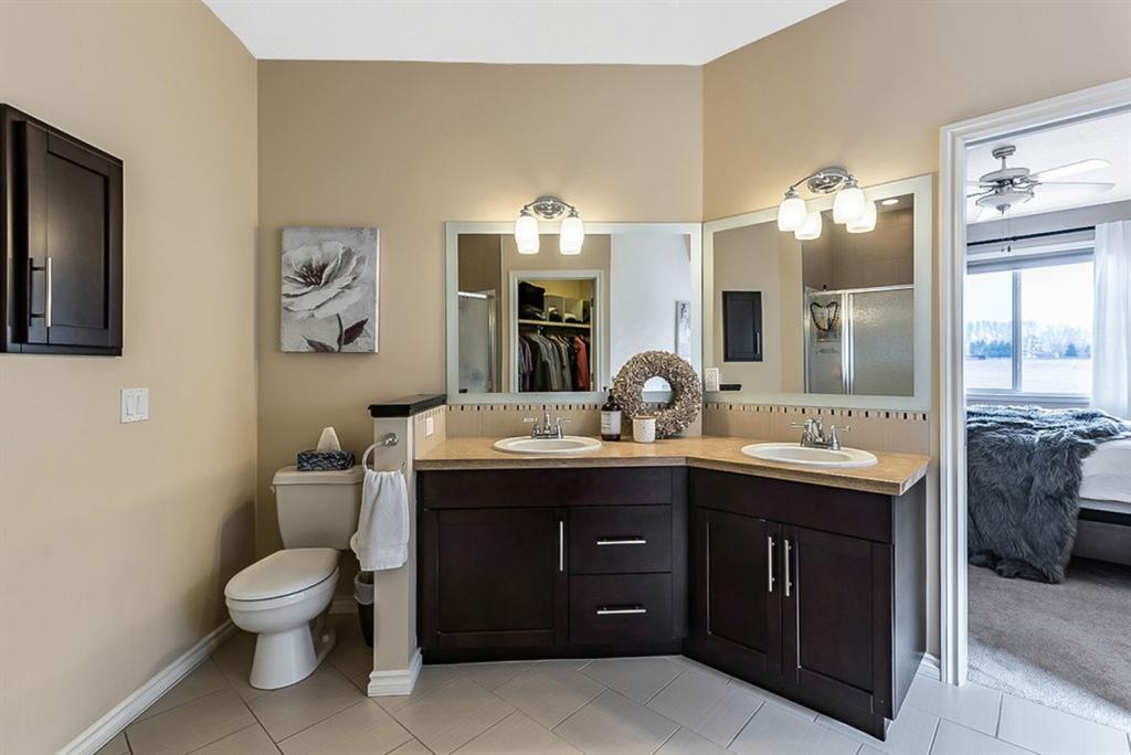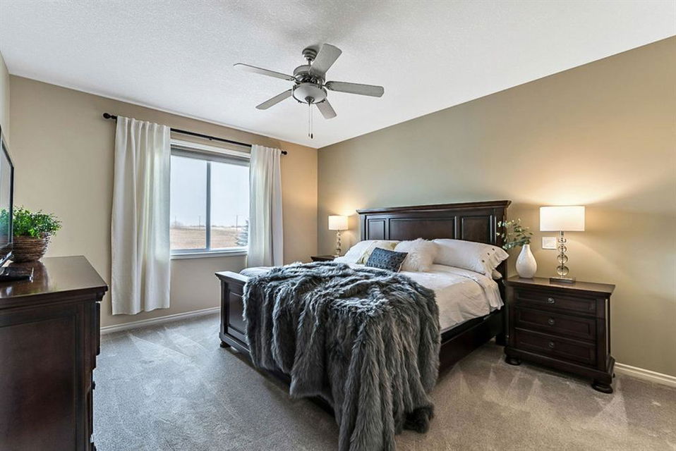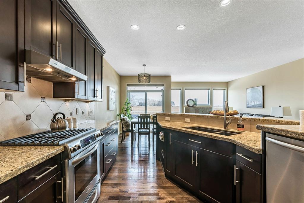 BEAUTIFUL BUNGALOW in the upscale neighbourhood of AIR RANCH, located in a QUIET CUL-DE-SAC on HUGE 167’ by 59’ LOT with mature vegetation! Main floor features front flex room, followed by open concept living room w fireplace, dining room, and awesome kitchen with large island, maple cabinetry, granite and ss appliances. This space opens up to stunning back yard with tiered 20’ by 20’ deck great for entertaining, and offers views of farmers’ fields & horses grazing in the distance. Master bedroom with 5 piece ensuite and walk-in closet, a second bedroom and second bathroom, and main floor laundry complete this level. Basement features 10’ CEILING HEIGHT, OVERSIZED WINDOWS, and offers a huge recreation room with fire place, rough-in for wetbar, third bedroom and a third full bathroom. Fourth bedroom is framed. A/C, new water heater, water softener, and oversized 21’4″x24’3″ garage with heater complete this home. Truly a gem, and PERFECT for discerning buyers who want QUALITY, AFFORDABILITY, COMFORT, EASE, AND QUIET SETTING within easy access of great amenities, parks, paths, shopping, and recreation. CLICK 3D for virtual tour!