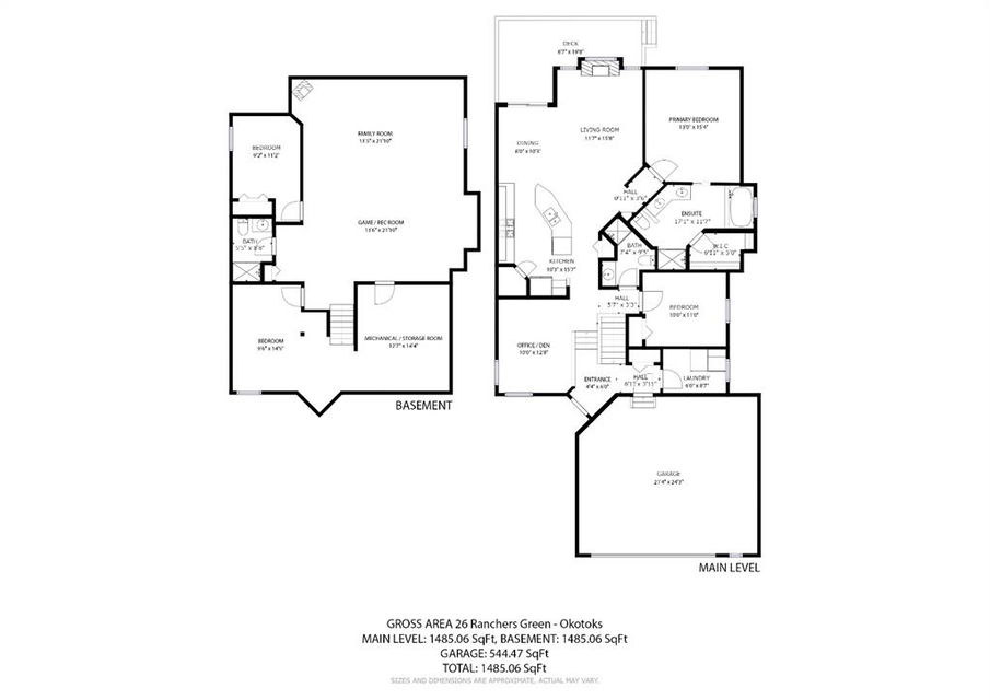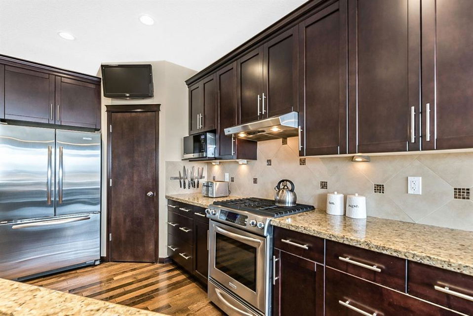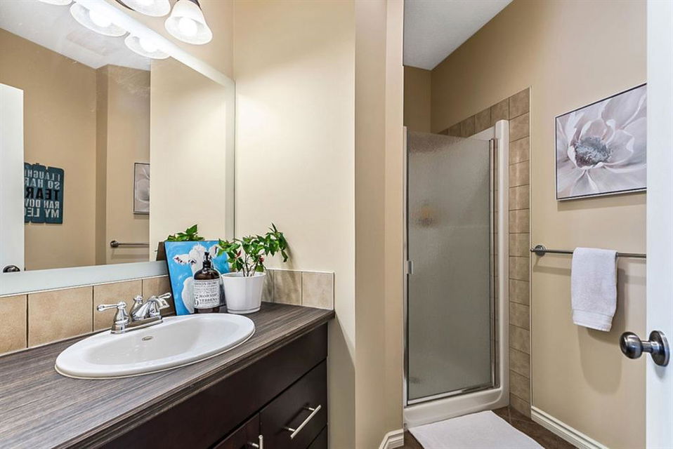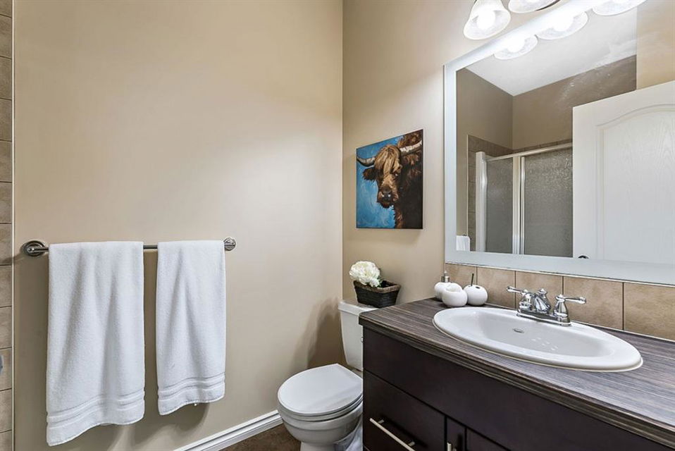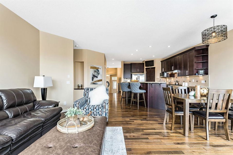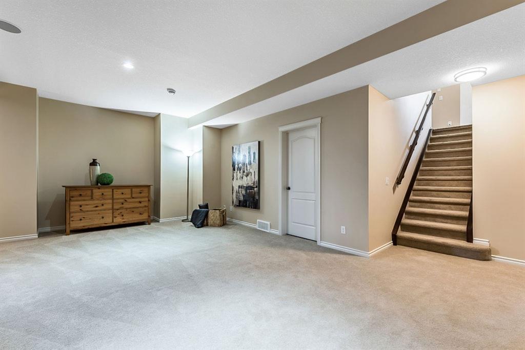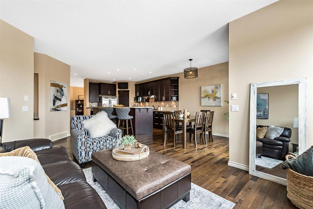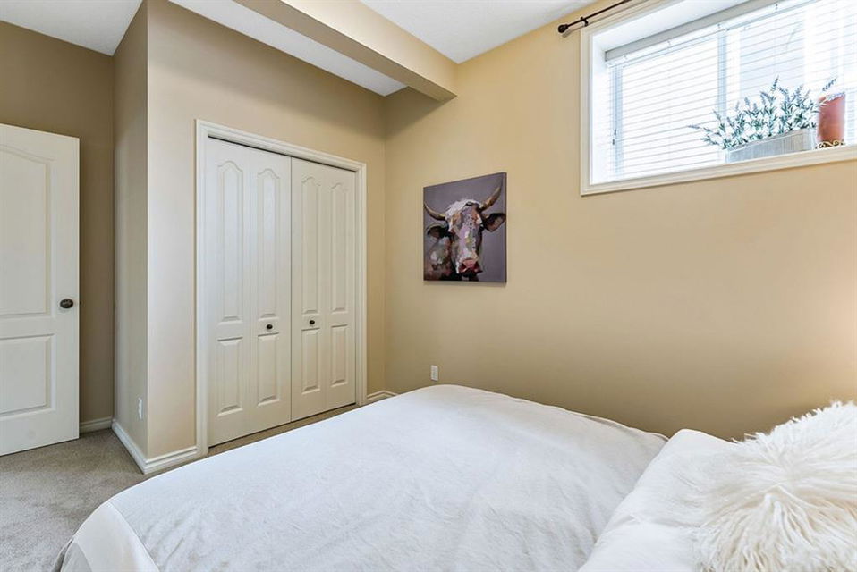 BEAUTIFUL BUNGALOW in the upscale neighbourhood of AIR RANCH, located in a QUIET CUL-DE-SAC on HUGE 167’ by 59’ LOT with mature vegetation! Main floor features front flex room, followed by open concept living room w fireplace, dining room, and awesome kitchen with large island, maple cabinetry, granite and ss appliances. This space opens up to stunning back yard with tiered 20’ by 20’ deck great for entertaining, and offers views of farmers’ fields & horses grazing in the distance. Master bedroom with 5 piece ensuite and walk-in closet, a second bedroom and second bathroom, and main floor laundry complete this level. Basement features 10’ CEILING HEIGHT, OVERSIZED WINDOWS, and offers a huge recreation room with fire place, rough-in for wetbar, third bedroom and a third full bathroom. Fourth bedroom is framed. A/C, new water heater, water softener, and oversized 21’4″x24’3″ garage with heater complete this home. Truly a gem, and PERFECT for discerning buyers who want QUALITY, AFFORDABILITY, COMFORT, EASE, AND QUIET SETTING within easy access of great amenities, parks, paths, shopping, and recreation. CLICK 3D for virtual tour!