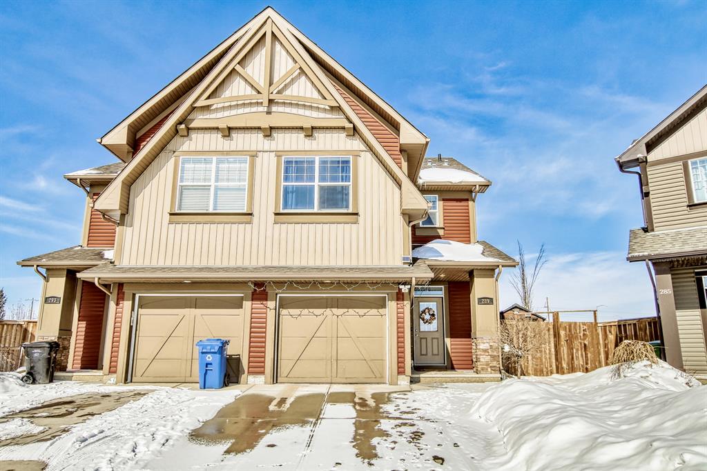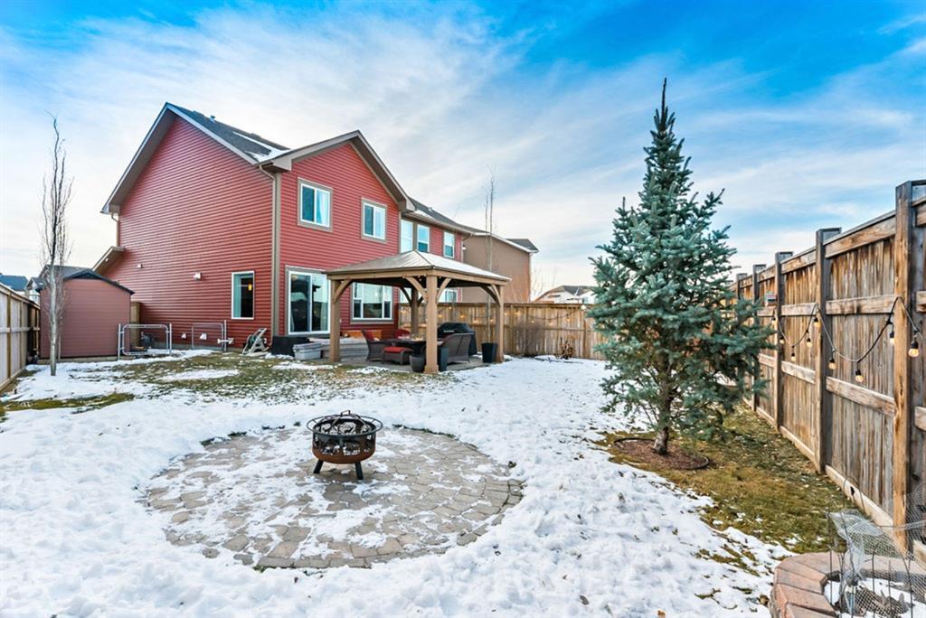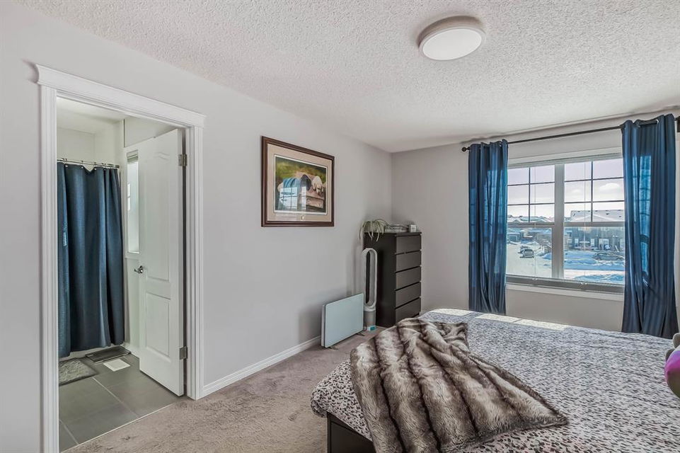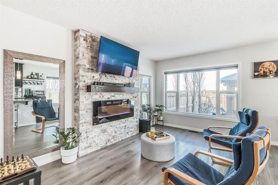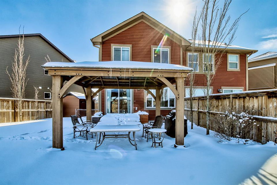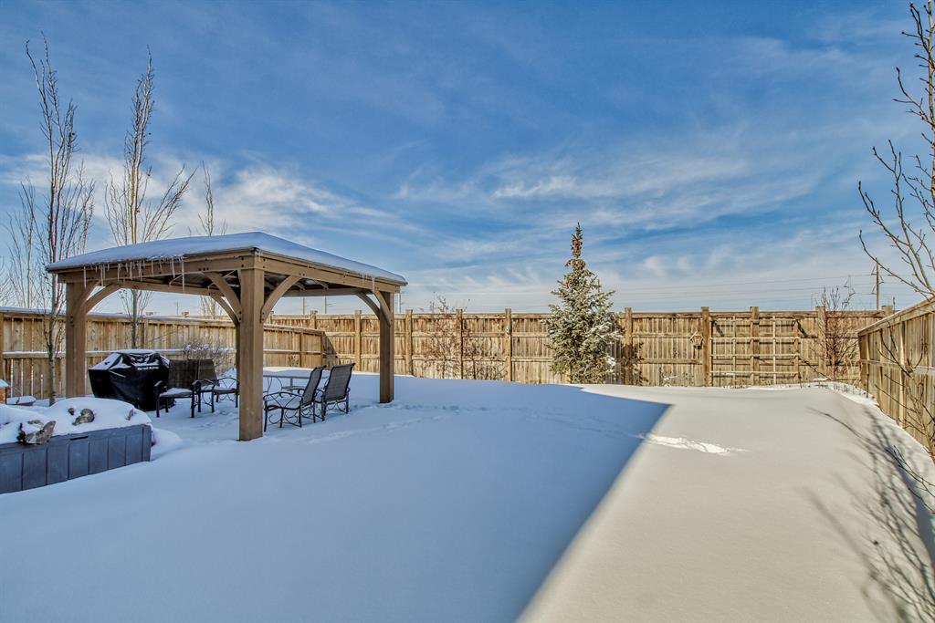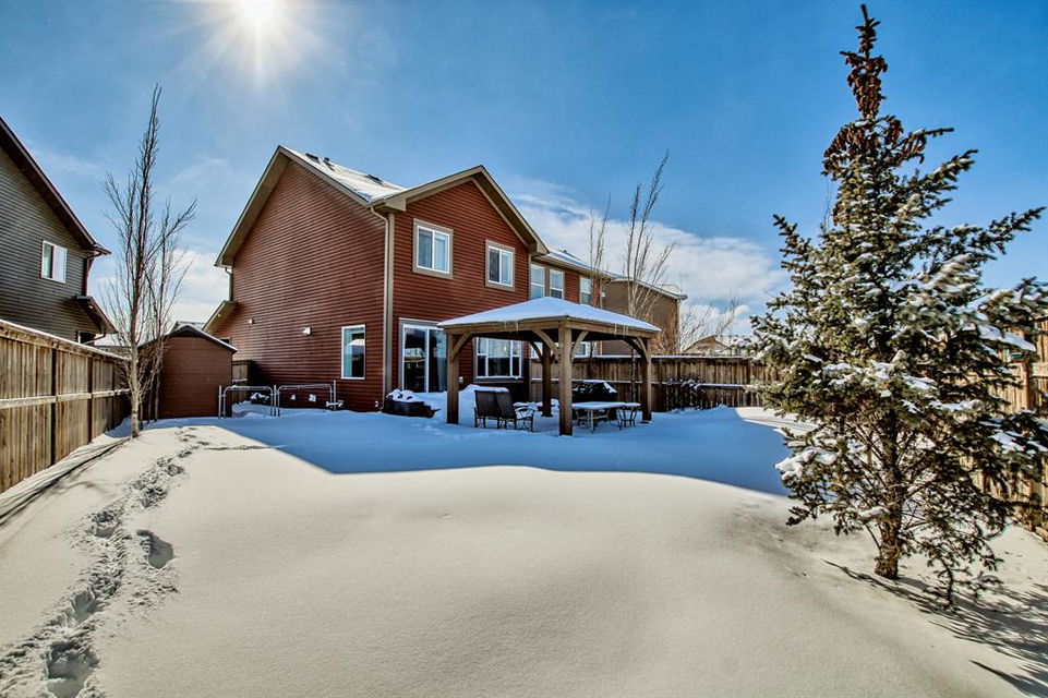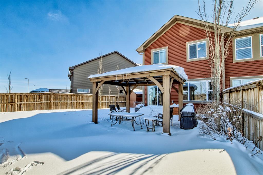 Open house this Saturday, March 11 from 2-4 p.m. Welcome to this gorgeous semi-detached home located in the desirable lake community of Auburn Bay, with a front attached garage that has 220v electrical outlet for electric car charger. The home is situated in a cul-de-sac and backs onto a green space/Auburn Dog Park with the views of the city and mountains. The main level features an open living area with a electrical fireplace and media components wired in for a wall-mounted TV system. The functional kitchen features upgraded ceiling height cabinets, quartz countertops, stainless steel appliances, and a breakfast bar. The adjacent dining area leads you to the northwest facing backyard. The second floor of the home features a master bedroom with a 4-piece ensuite and a walk-in closet, a laundry room with a window, a main bathroom, and two additional bedrooms. The open railing in the stairwell adds a modern touch to the home’s design. The basement is fully finished and includes a family room and a 3-piece bathroom, providing additional living space for your family. The backyard of this home is simply stunning, beautiful landscaping with flower beds, trees and a 12’x14′ gazebo. It is the perfect spot for enjoying the warm summer days and evenings. The location of this home is excellent, close to the Lake, South Calgary Hospital, YMCA, shops, restaurants, and more. Overall, this is a fantastic opportunity to own a beautiful home in a desirable location.