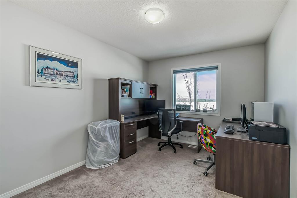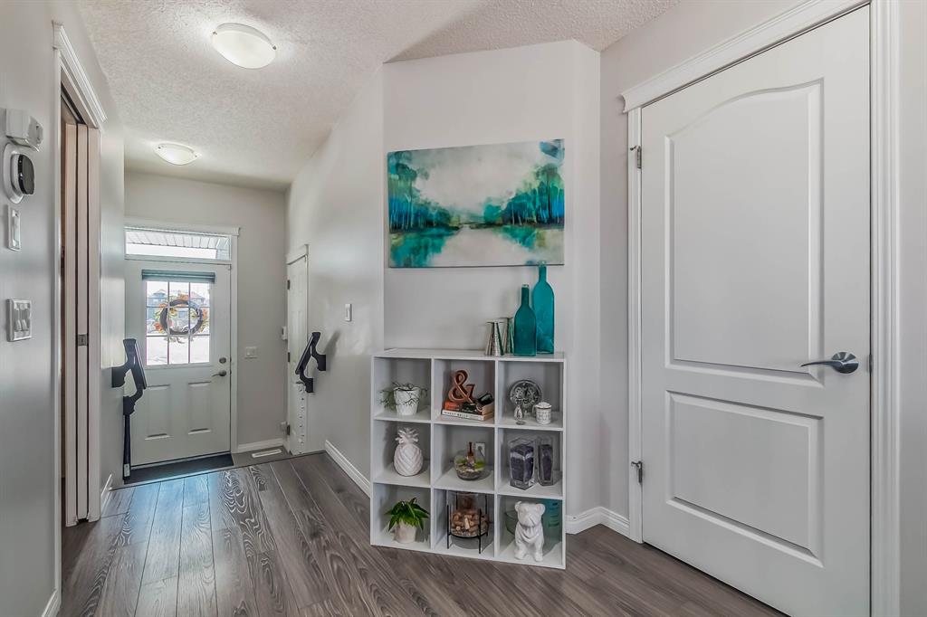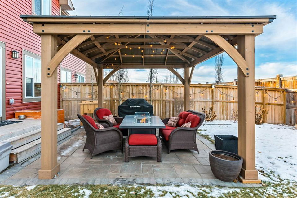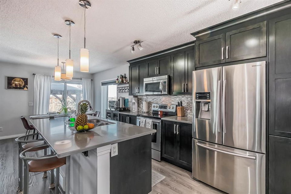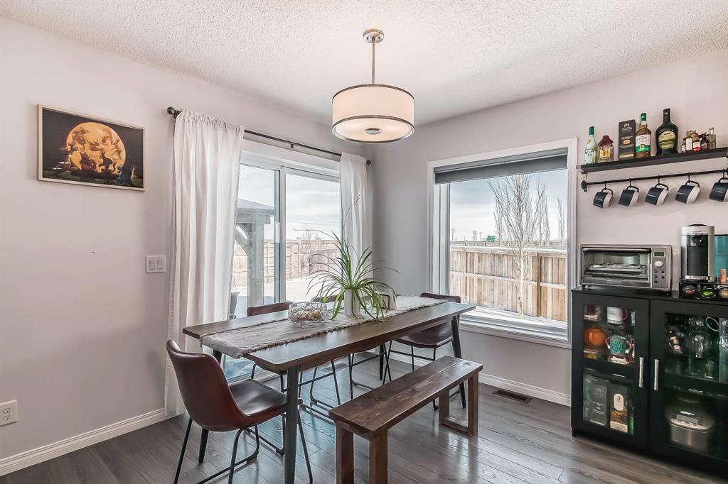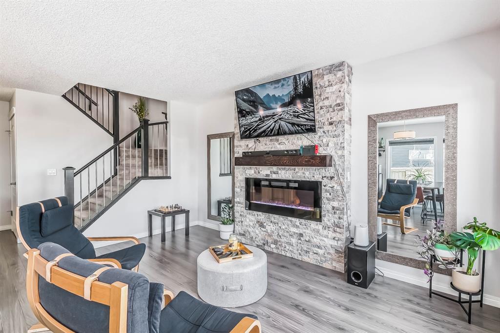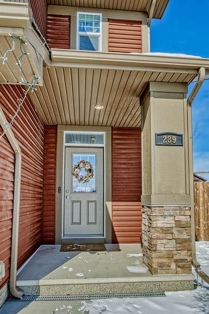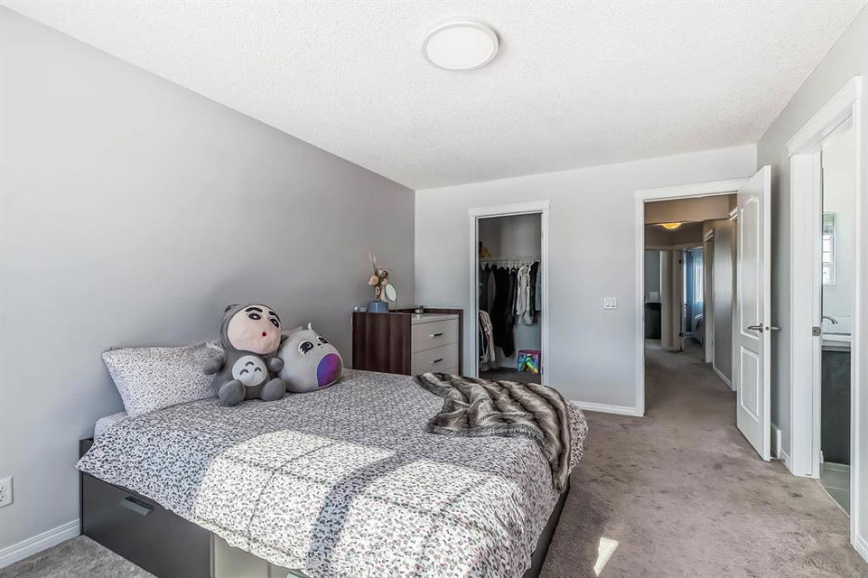 Open house this Saturday, March 11 from 2-4 p.m. Welcome to this gorgeous semi-detached home located in the desirable lake community of Auburn Bay, with a front attached garage that has 220v electrical outlet for electric car charger. The home is situated in a cul-de-sac and backs onto a green space/Auburn Dog Park with the views of the city and mountains. The main level features an open living area with a electrical fireplace and media components wired in for a wall-mounted TV system. The functional kitchen features upgraded ceiling height cabinets, quartz countertops, stainless steel appliances, and a breakfast bar. The adjacent dining area leads you to the northwest facing backyard. The second floor of the home features a master bedroom with a 4-piece ensuite and a walk-in closet, a laundry room with a window, a main bathroom, and two additional bedrooms. The open railing in the stairwell adds a modern touch to the home’s design. The basement is fully finished and includes a family room and a 3-piece bathroom, providing additional living space for your family. The backyard of this home is simply stunning, beautiful landscaping with flower beds, trees and a 12’x14′ gazebo. It is the perfect spot for enjoying the warm summer days and evenings. The location of this home is excellent, close to the Lake, South Calgary Hospital, YMCA, shops, restaurants, and more. Overall, this is a fantastic opportunity to own a beautiful home in a desirable location.
