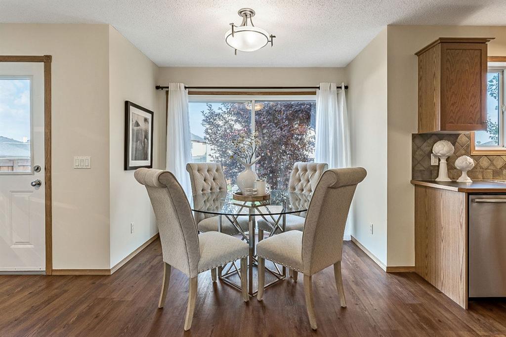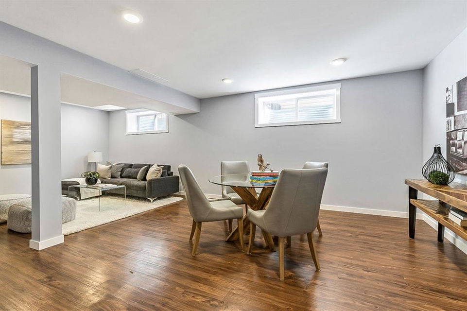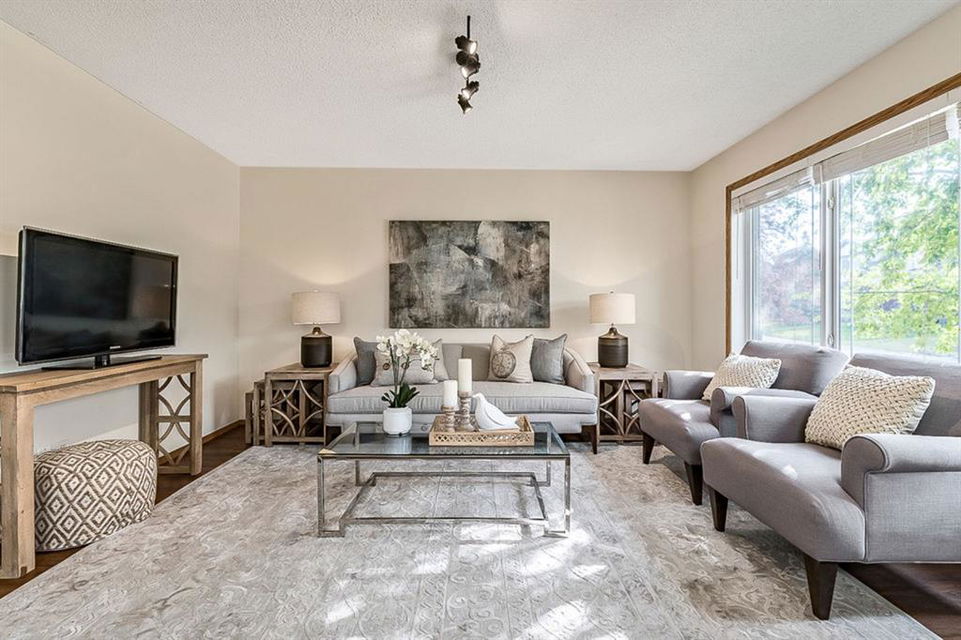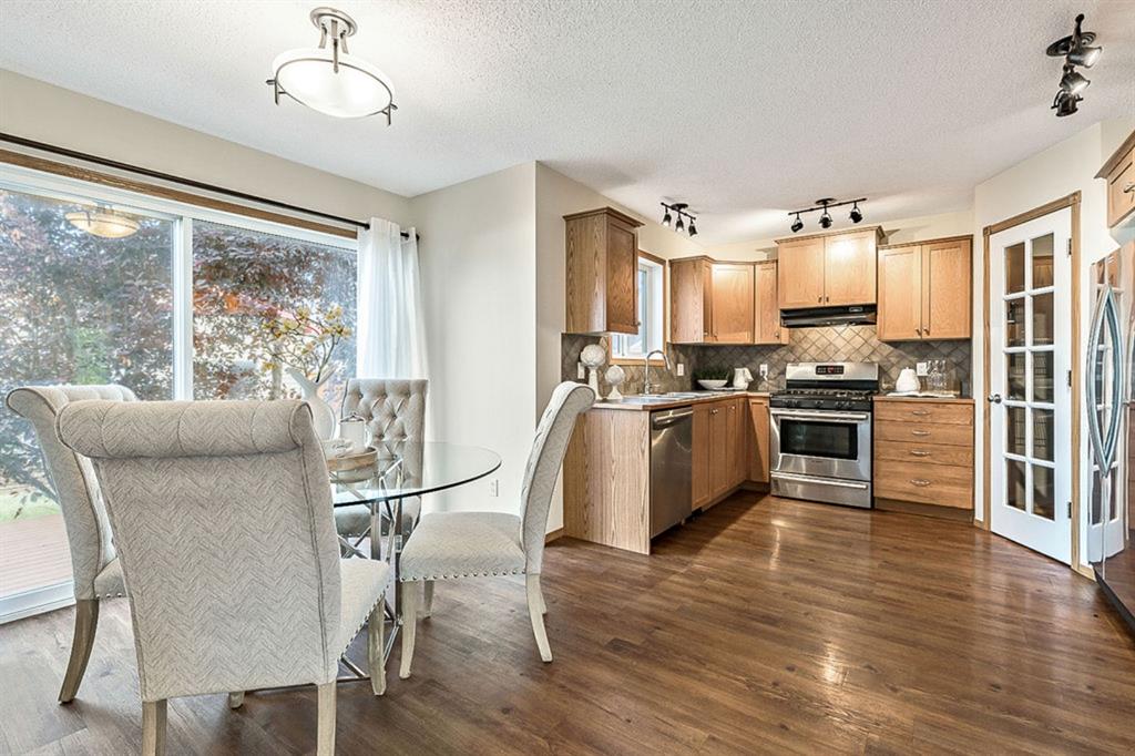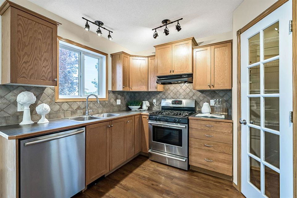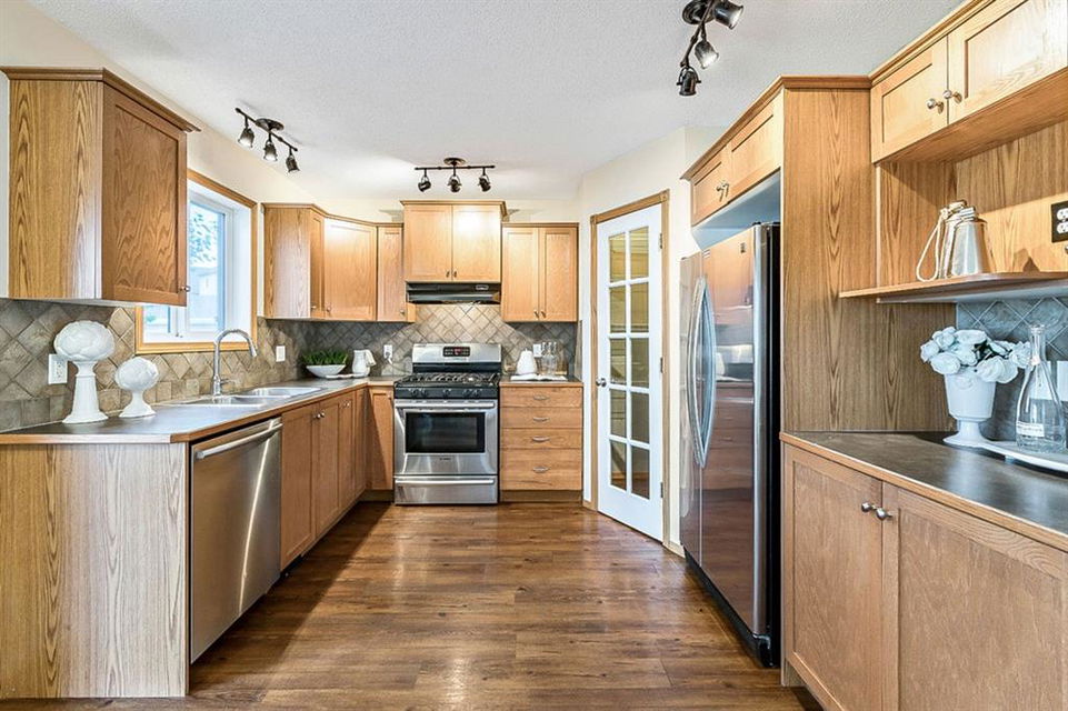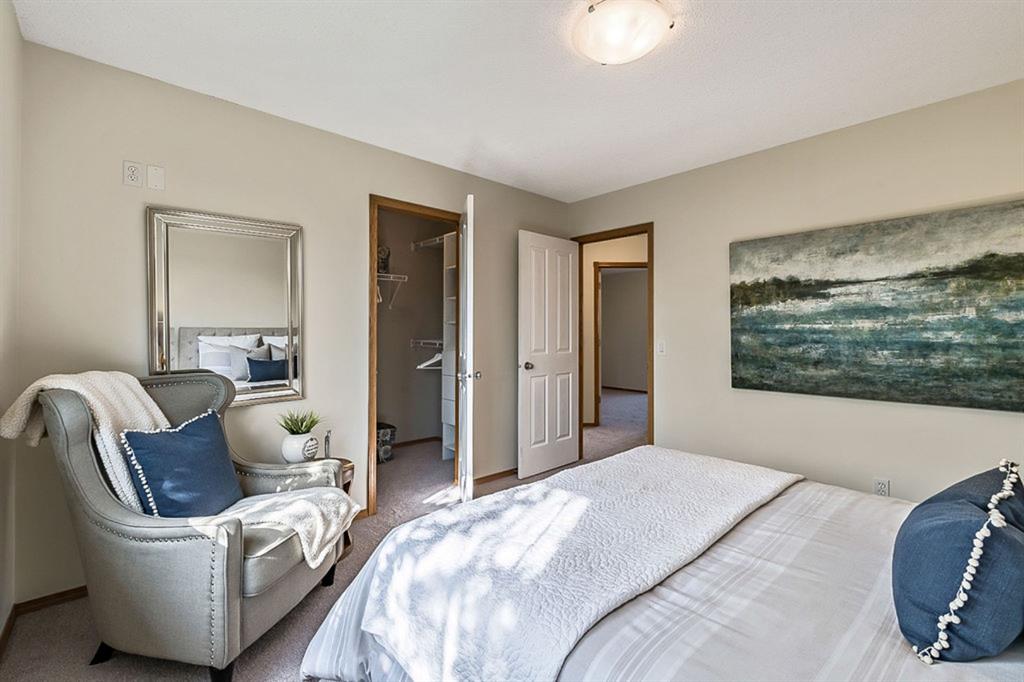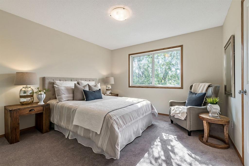 Looking for LAKE ACCESS, amazing community with superb schools, and home that’s FULLY DEVELOPED, with HEATED OVERSIZED GARAGE, A/C, plus recent $15K improvements (new paint & carpet) … all under $500K? **Open House Sunday 2-4** Charming & bright, this starter home is sure to please even the most discerning buyer. MAIN FLOOR features living room with large windows, kitchen with gas stove & corner pantry, dining area with windows & double sliding door to spacious deck, plus back entrance with half bath. Stairwell to UPPER FLOOR is open & bright, and leads to primary bedroom with walk-in closet, two additional bedrooms and full 4pc bathroom. BASEMENT is fully developed with spacious recreation room, full bathroom, and utility room with laundry. BACK YARD is delightful with massive deck and beautiful mature vegetation. GARAGE is heated and has built in cabinetry. Street is quiet, and offers superb location close to schools, parks, and the lake. LAKE offers year-round recreation from swimming and fishing to boating and skating.