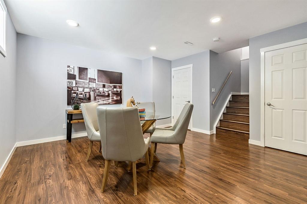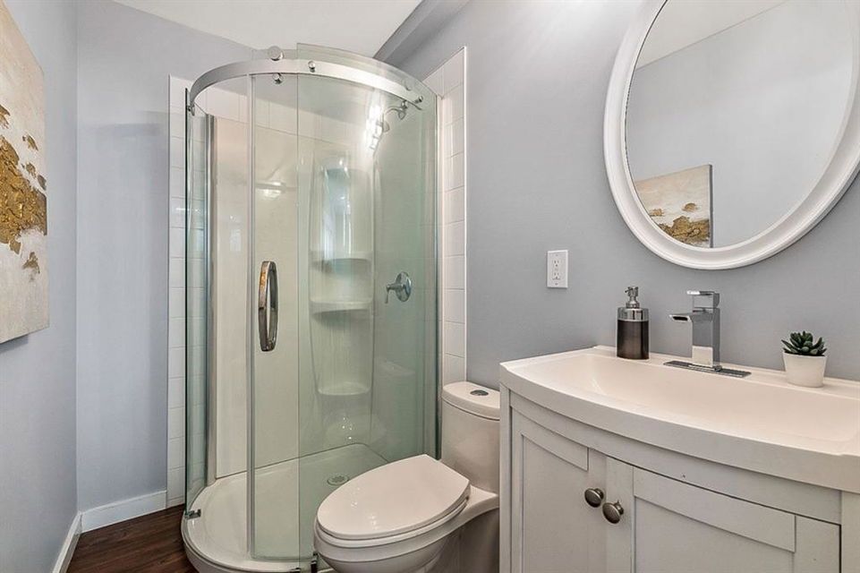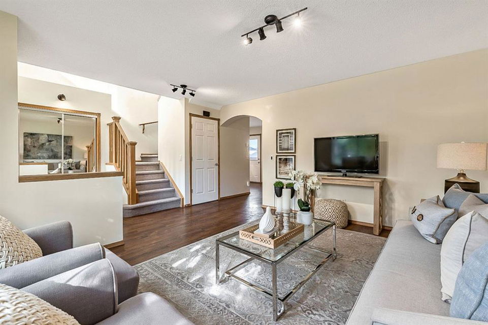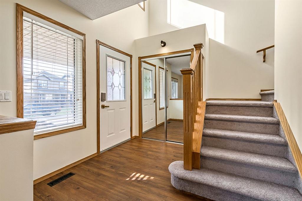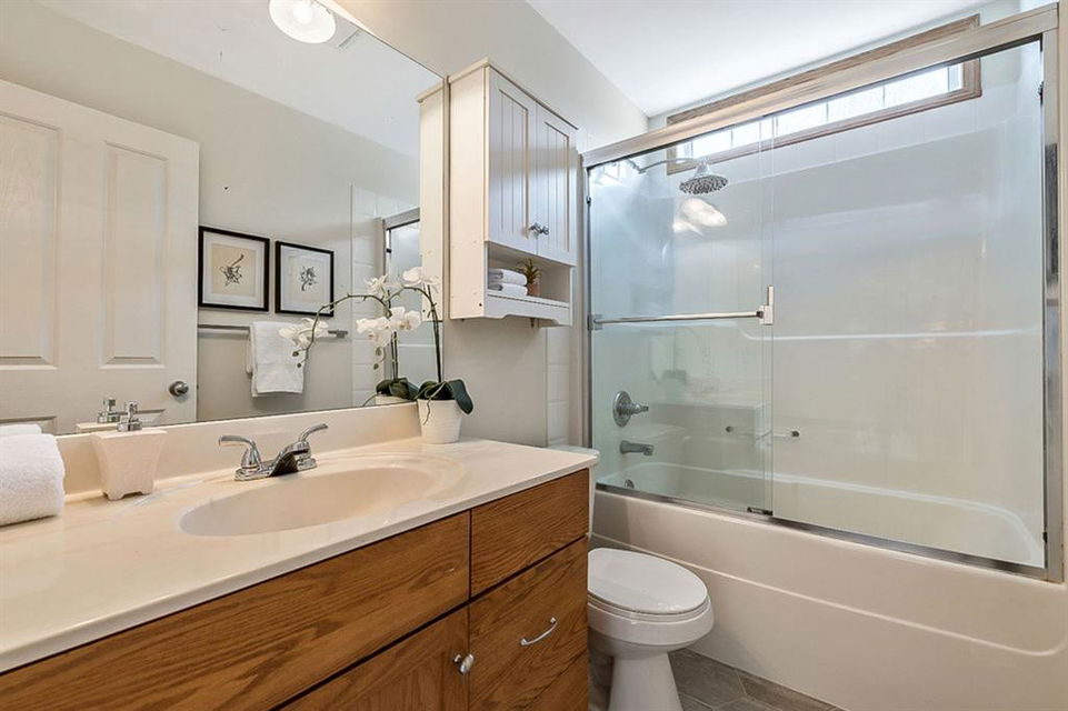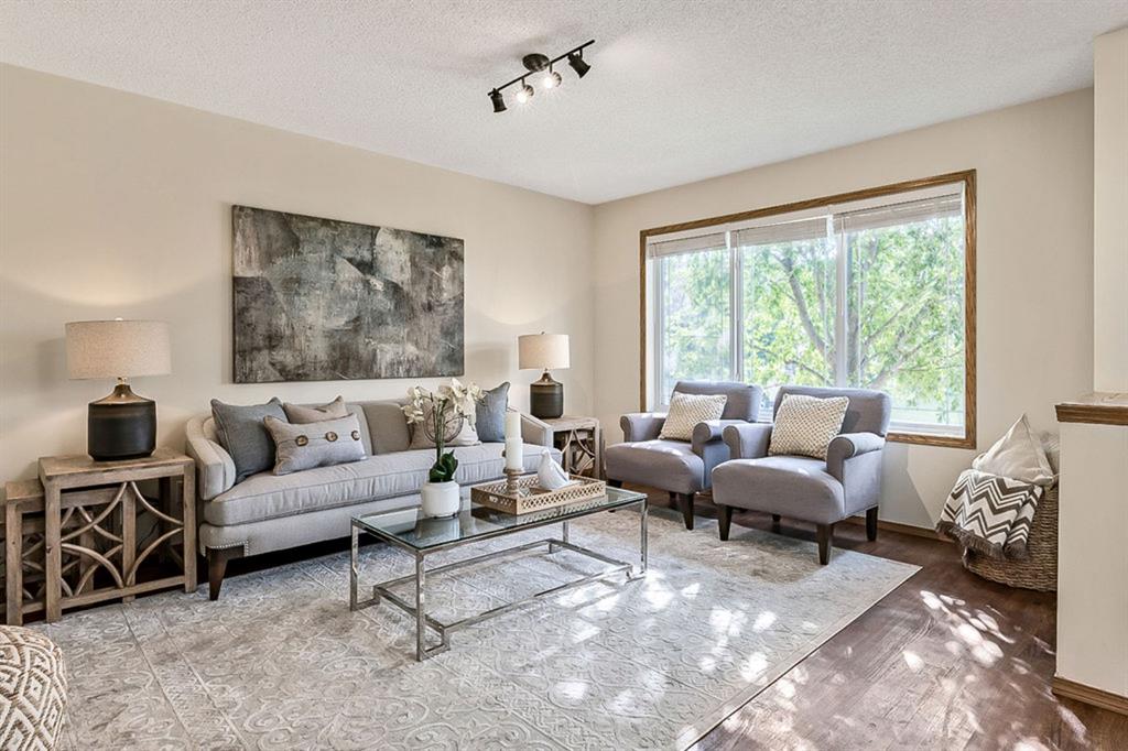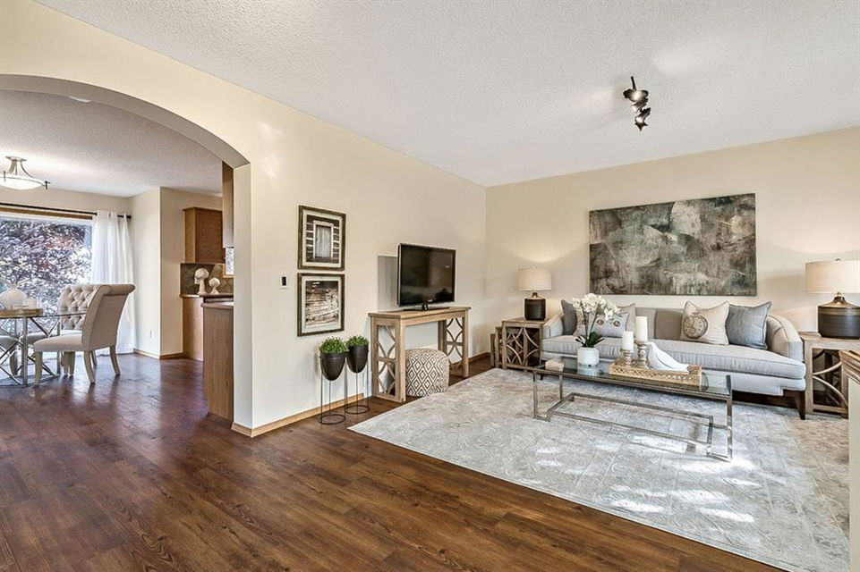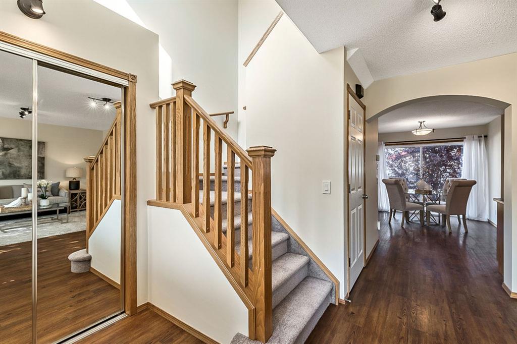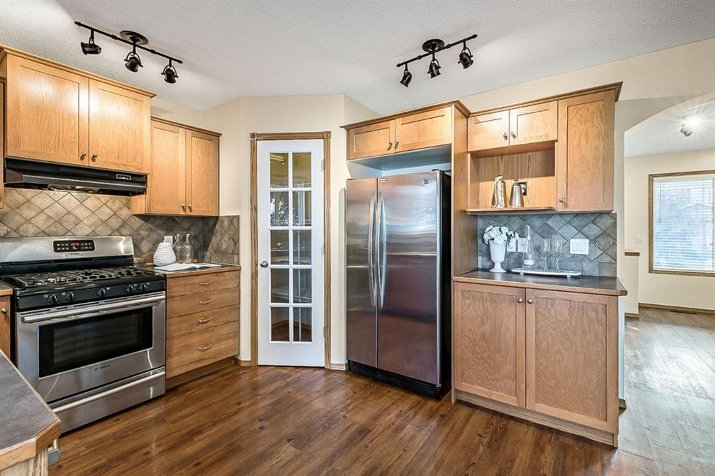 Looking for LAKE ACCESS, amazing community with superb schools, and home that’s FULLY DEVELOPED, with HEATED OVERSIZED GARAGE, A/C, plus recent $15K improvements (new paint & carpet) … all under $500K? **Open House Sunday 2-4** Charming & bright, this starter home is sure to please even the most discerning buyer. MAIN FLOOR features living room with large windows, kitchen with gas stove & corner pantry, dining area with windows & double sliding door to spacious deck, plus back entrance with half bath. Stairwell to UPPER FLOOR is open & bright, and leads to primary bedroom with walk-in closet, two additional bedrooms and full 4pc bathroom. BASEMENT is fully developed with spacious recreation room, full bathroom, and utility room with laundry. BACK YARD is delightful with massive deck and beautiful mature vegetation. GARAGE is heated and has built in cabinetry. Street is quiet, and offers superb location close to schools, parks, and the lake. LAKE offers year-round recreation from swimming and fishing to boating and skating.