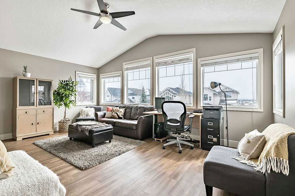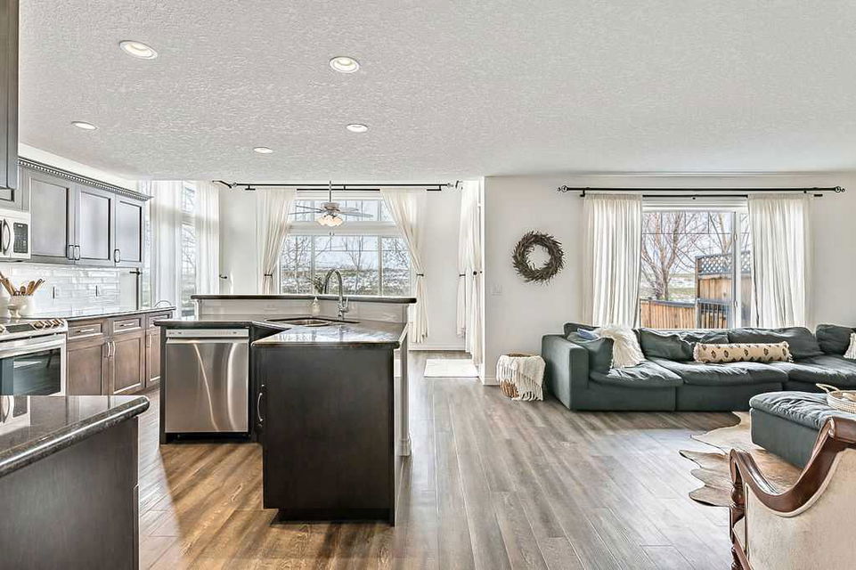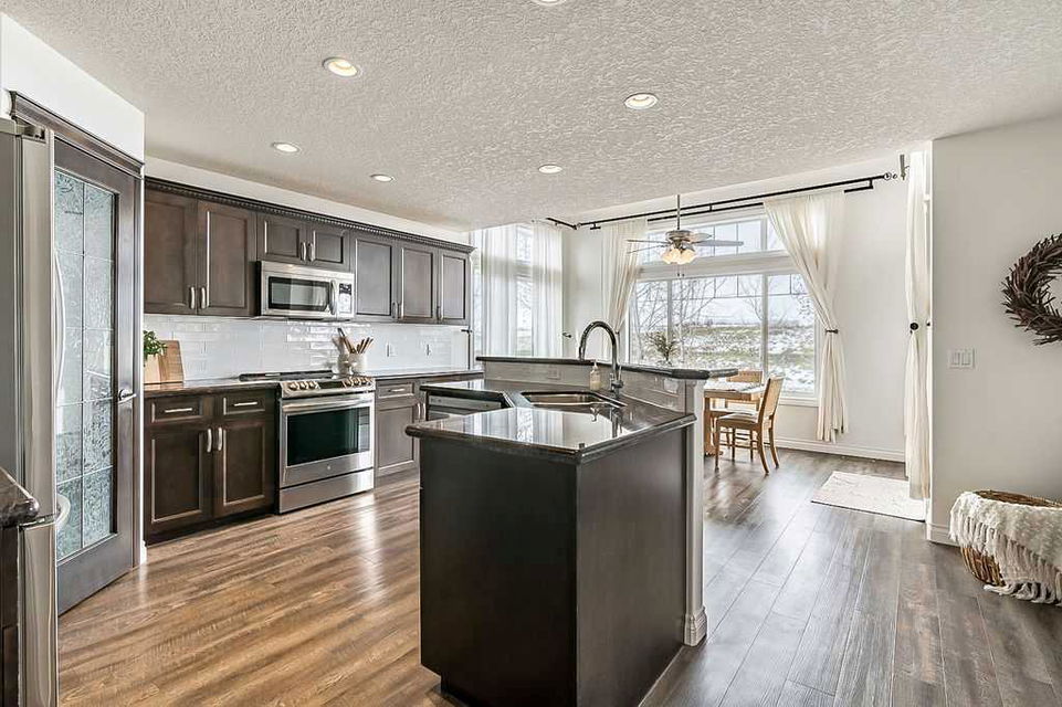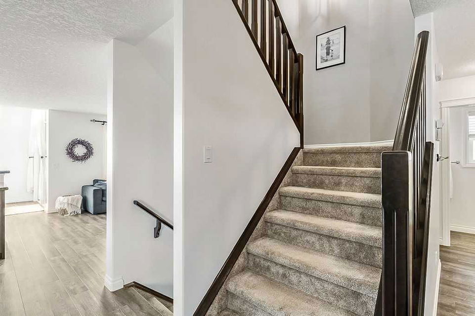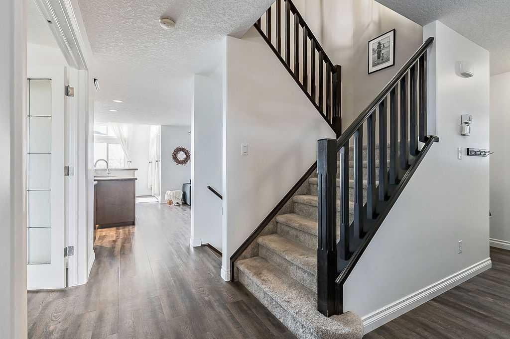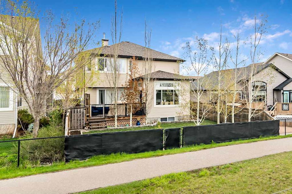 Looking for a gorgeous family home that BACKS WEST onto PATHS & OPEN SPACE? This rare Westmount gem offers modern open concept layout, beautiful updates with new flooring, paint, trim & backsplash, and exudes elegance & quality throughout (click 3D for virtual walkthrough)! MAIN FLOOR features large office with double French doors, spacious kitchen with dark cabinetry, corner pantry, island, granite & new white tiled backsplash. Dining area and living room with gas fire place showcase huge windows that bring in natural light from morning til night. Half bath and full laundry room complete this level. UPPER FLOOR features huge bonus room with wall to wall windows, spacious primary bedroom with walk-in closet and ensuite bathroom, two additional large bedrooms and full bathroom. Did we mention MOUNTAIN VIEWS from upper floor? Or the completely private yard? Or the approx $40K+ value of recent updates throughout? BASEMENT is unfinished and is perfect for future rec room, bedroom and bathroom (already roughed in). BACK YARD features large deck, mature trees, small vegetable garden, dog run, and new sod. Perfect home in one of the best locations, all for under $710K! RECENT UPDATES – vinyl plank & carpet (2021), hot water tank (2021), kitchen appliances (2022), kitchen backsplash (2024), main floor paint (2020-2024). NEW SOD (May 2024)