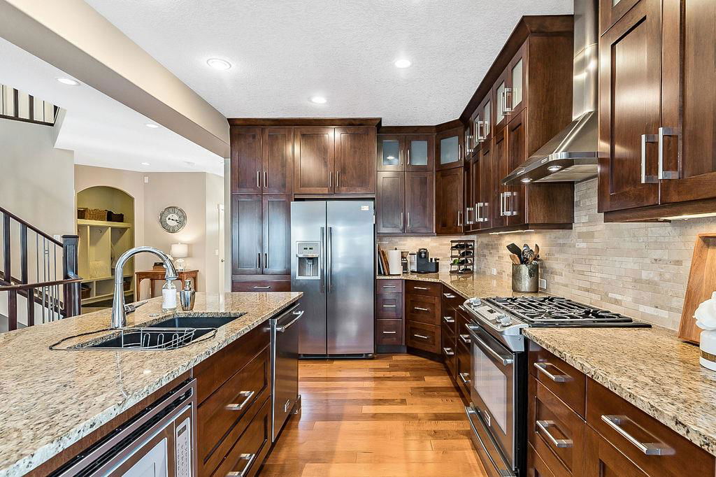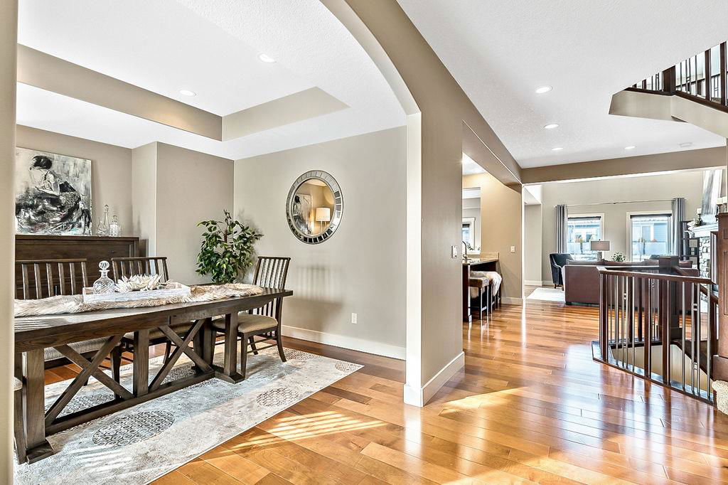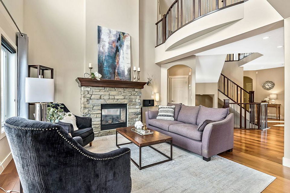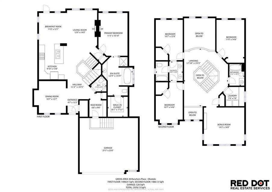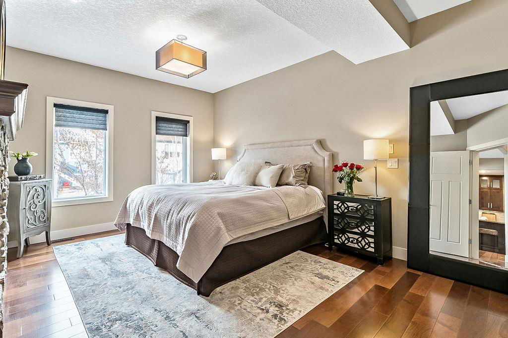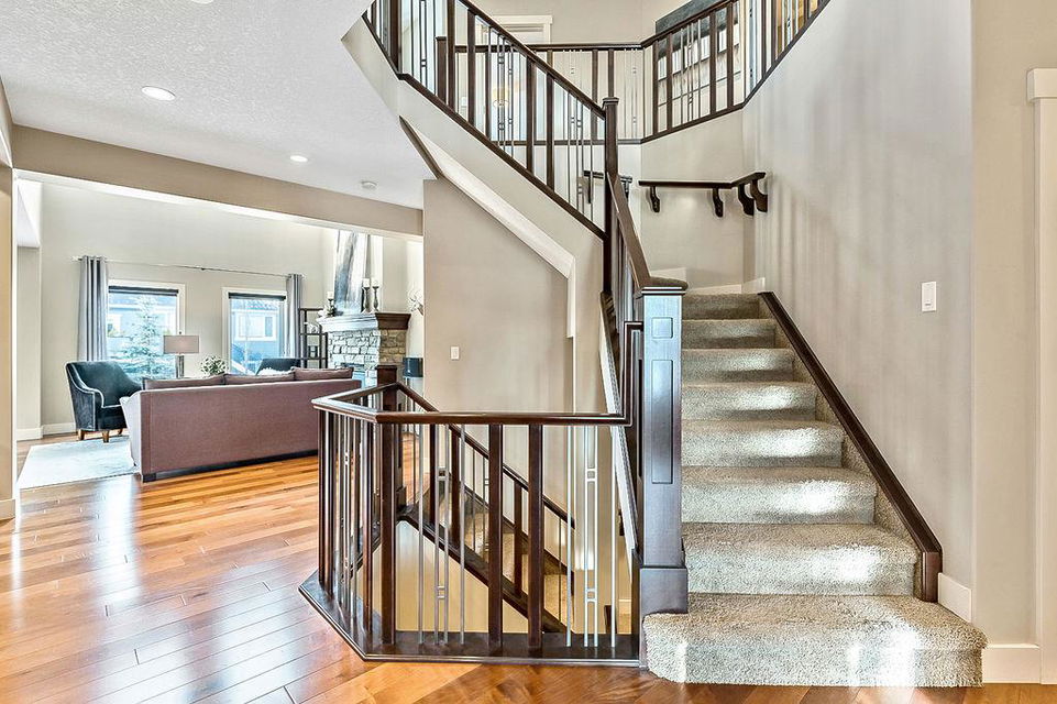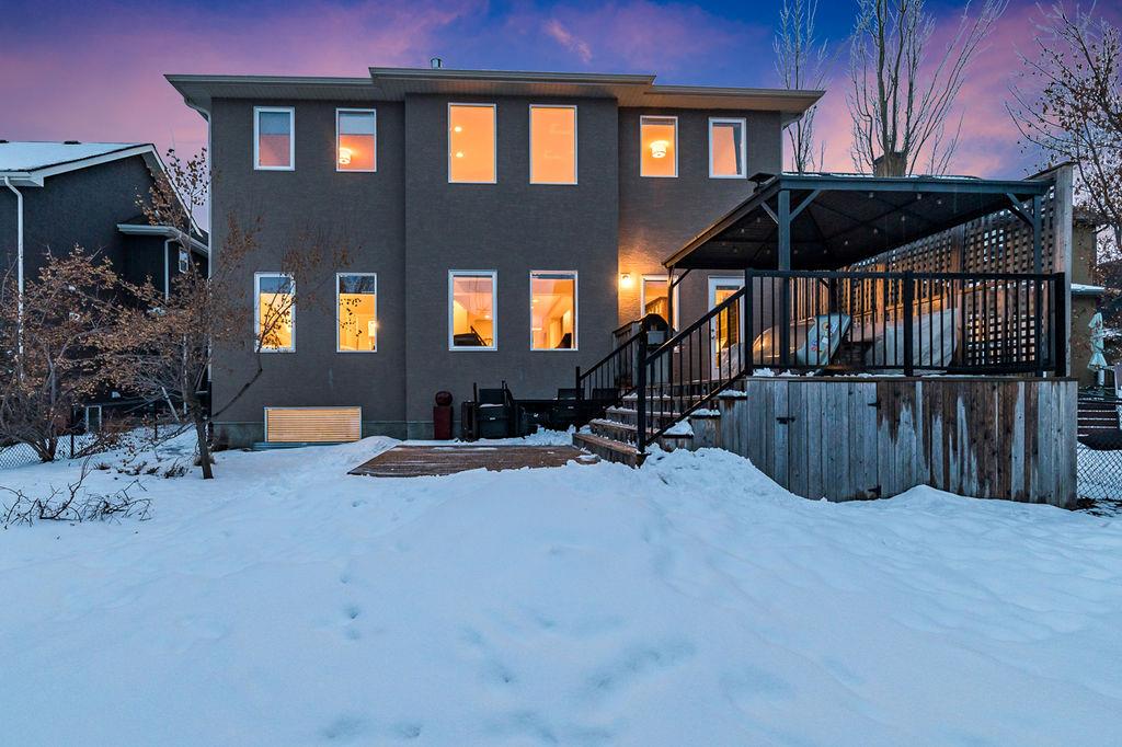 *Open House Saturday 1-4* STUNNING & SPACIOUS 2978SQFT luxury 4bdrm home on beautifully landscaped large lot in prestigious RANCHERS RISE, surrounded by estate homes, parks, pathways, wetlands, gorgeous rolling landscapes, and located minutes from local schools and amenities. Step inside (click 3D for virtual tour), and see this home’s warm ambiance and superb quality throughout. MAIN FLOOR features open concept plan with soaring ceiling in living room, superb two-way fireplace, stunning kitchen with extended height cabinetry & granite countertop, spacious dining room, bright study/den, plus MAIN-FLOOR PRIMARY BEDROOM with huge ensuite bathroom & walk-in closet. UPPER FLOOR features three more bedrooms, jack-and-jill bathroom, another full bathroom, laundry room, and large bonus room with vaulted ceiling & great natural light. BASEMENT is huge with over 1500sq.ft. undeveloped space and three large windows, with ample room for rec room, gym & more. GARAGE is extended double (21.5’ by 23’), insulated & drywalled. BACK YARD is professionally landscaped, and offers a gorgeous private oasis with large deck, gazebo, mature trees & shrubs. LOCATION is truly one of the best in Okotoks, in a private cul-de-sac within an estate neighbourhood, and still only minutes from parks, schools, recreation centre, golf, river pathways, shopping & more. If you’re looking for a GORGEOUS 4BDRM ESTATE home with superb care in a sought-after community, then this is the one!!!