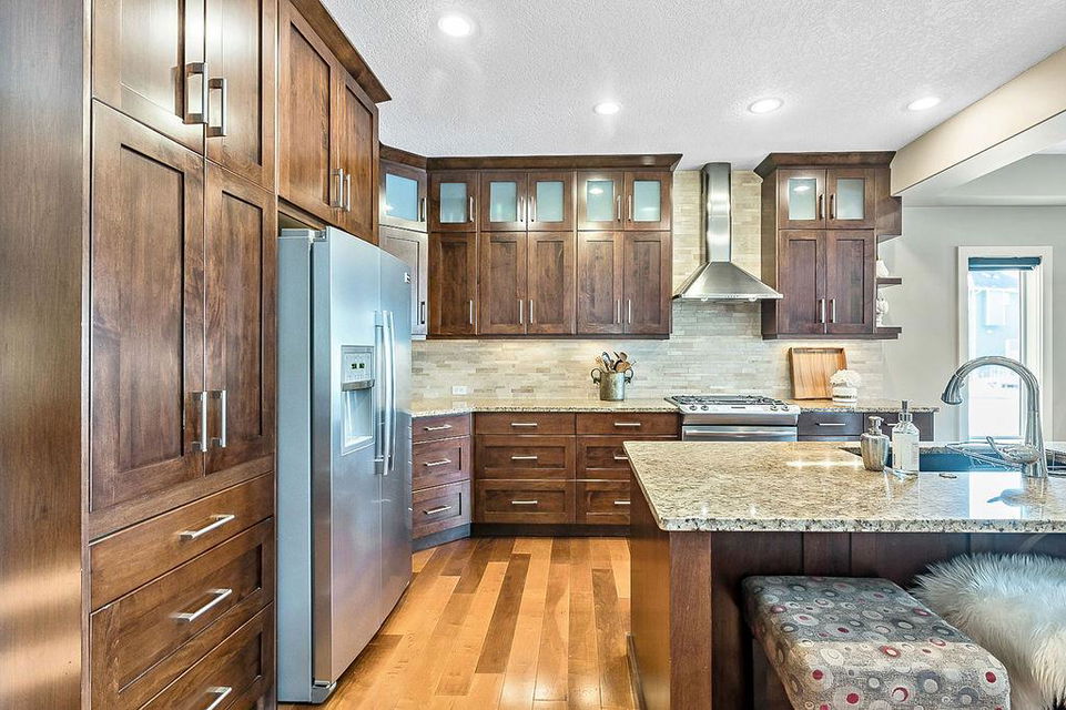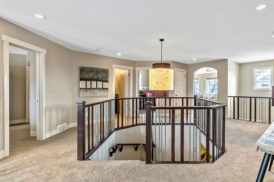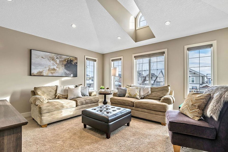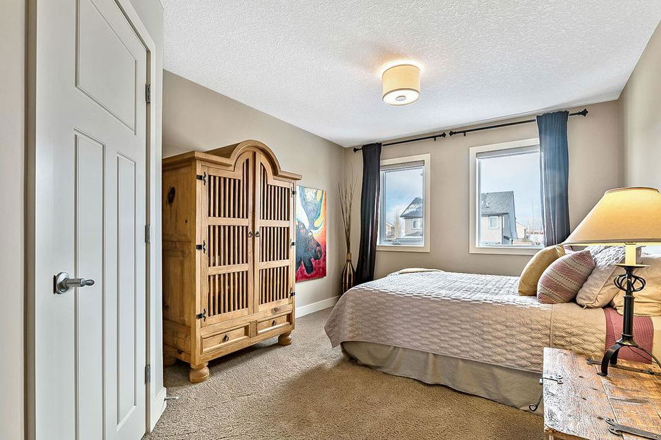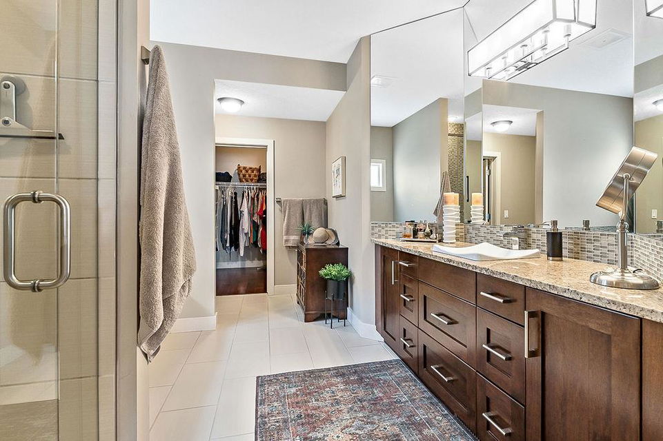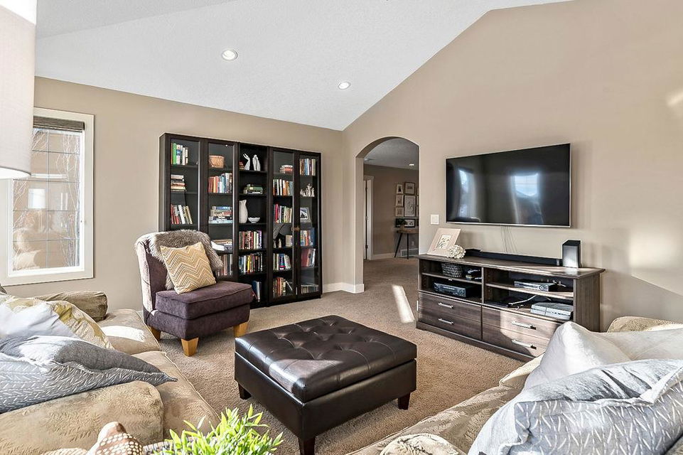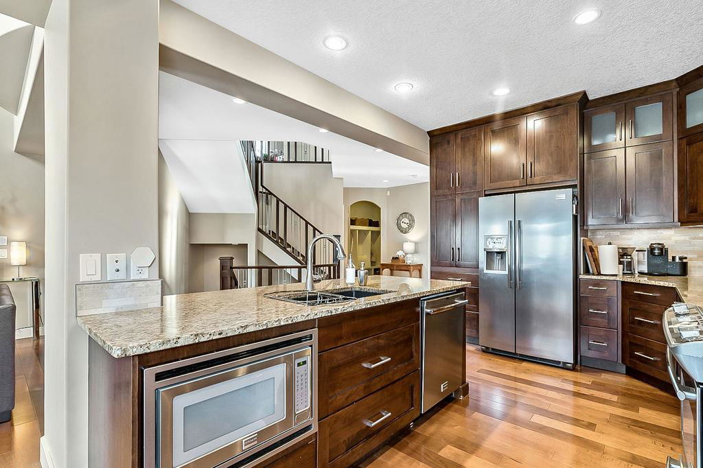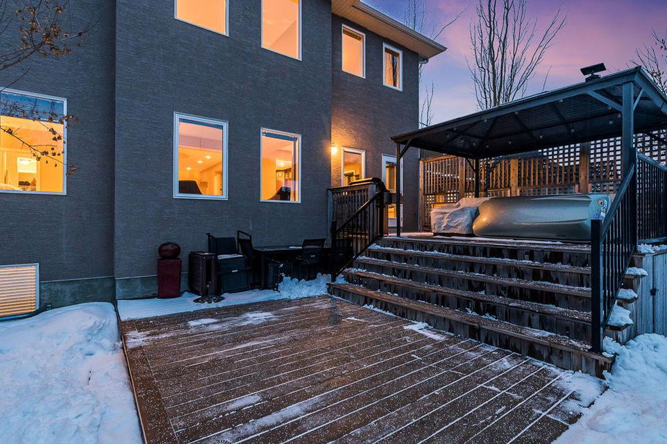 *Open House Saturday 1-4* STUNNING & SPACIOUS 2978SQFT luxury 4bdrm home on beautifully landscaped large lot in prestigious RANCHERS RISE, surrounded by estate homes, parks, pathways, wetlands, gorgeous rolling landscapes, and located minutes from local schools and amenities. Step inside (click 3D for virtual tour), and see this home’s warm ambiance and superb quality throughout. MAIN FLOOR features open concept plan with soaring ceiling in living room, superb two-way fireplace, stunning kitchen with extended height cabinetry & granite countertop, spacious dining room, bright study/den, plus MAIN-FLOOR PRIMARY BEDROOM with huge ensuite bathroom & walk-in closet. UPPER FLOOR features three more bedrooms, jack-and-jill bathroom, another full bathroom, laundry room, and large bonus room with vaulted ceiling & great natural light. BASEMENT is huge with over 1500sq.ft. undeveloped space and three large windows, with ample room for rec room, gym & more. GARAGE is extended double (21.5’ by 23’), insulated & drywalled. BACK YARD is professionally landscaped, and offers a gorgeous private oasis with large deck, gazebo, mature trees & shrubs. LOCATION is truly one of the best in Okotoks, in a private cul-de-sac within an estate neighbourhood, and still only minutes from parks, schools, recreation centre, golf, river pathways, shopping & more. If you’re looking for a GORGEOUS 4BDRM ESTATE home with superb care in a sought-after community, then this is the one!!!
