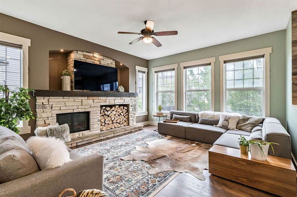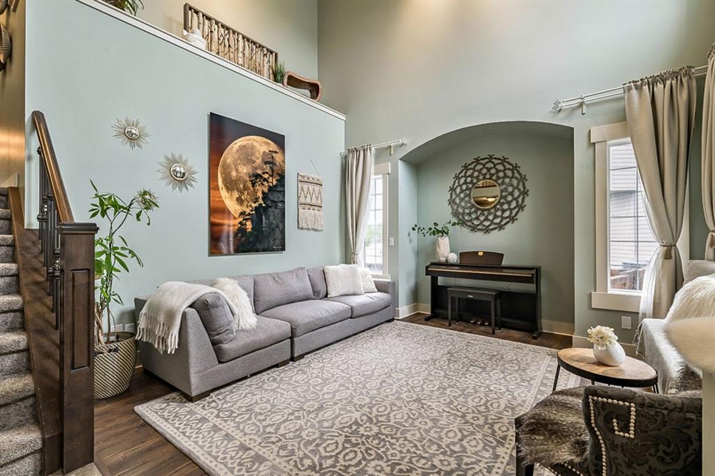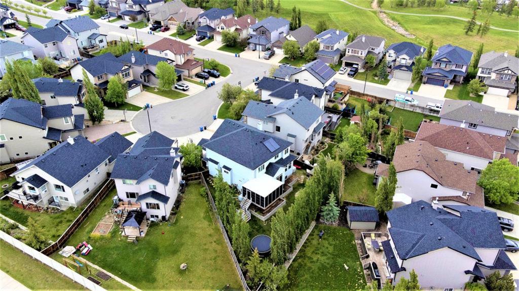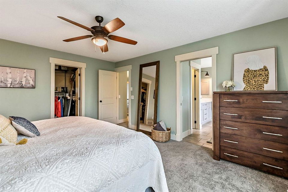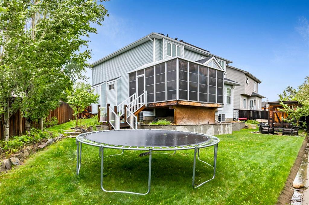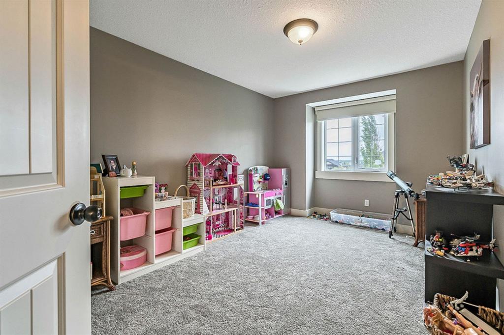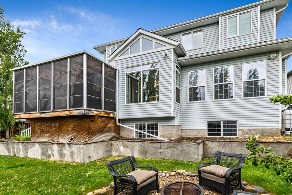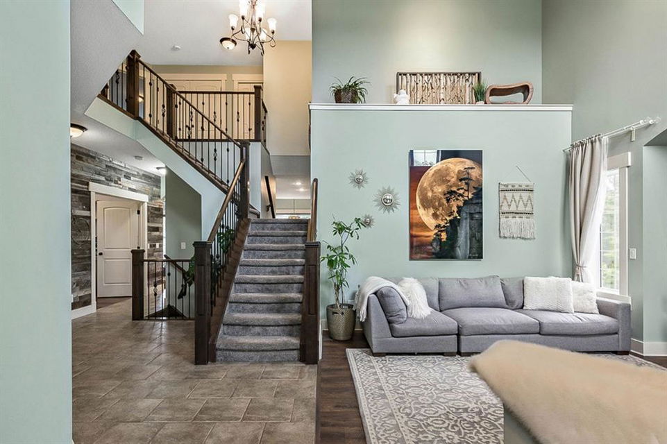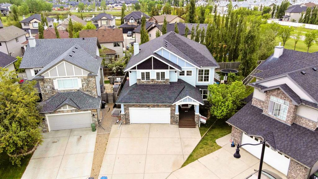 If you are looking for nearly 4000SQ.FT. of developed space, 5BDRMS, huge PIE LOT with SOUTH exposure, SUN ROOM, LAKE ACCESS, and an amazing cul-de-sac in the stunning community of Crystal Green just minutes from schools & amenities, then this may be the one!!! **Click 3D for virtual walkthrough, or come visit open house on Saturday!** MAIN FLOOR features large entryway, living room with soaring ceilings, den with double doors, and open-concept great room with fire-place, kitchen with upgraded cabinetry w new appliances & granite counters, huge walk-in pantry, and dining room that opens up to 13’ by 16’ sun room. “Suncoast” professional sun room offers all-season enjoyment and is set up with screens that pull down to the floor (for air flow), fan, gas line for BBQ. SECOND FLOOR features spacious primary bedroom with ensuite bathroom and walk-in closet, three additional bedrooms, full bathroom, and upstairs laundry. BASEMENT features huge rec room, fifth bedroom, and another full bathroom. Did we mention A/C, new hot water tank (2021) that’s heated in part by two solar panels, and HEATED GARAGE? BACK YARD is one of the largest in the area, offers south exposure, and is absolutely gorgeous with mature trees and shrubs. All this, in one of the BEST cul-de-sacs in town with amazing neighbours and superb proximity to schools, paths, golf courses, shopping, and rec centre. PLUS … don’t forget year-round LAKE ACCESS that offers plenty of fun, from swimming and boating to ice-fishing and hockey! Book your showing as this one won’t last!!!