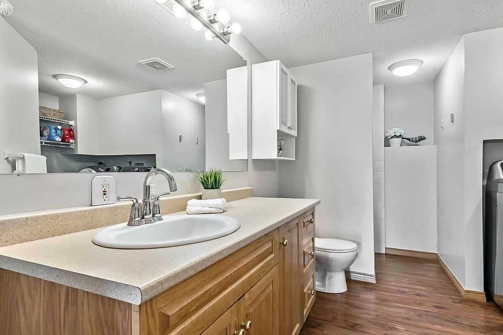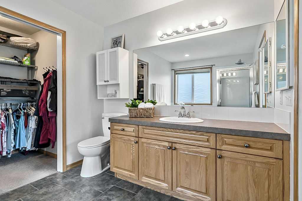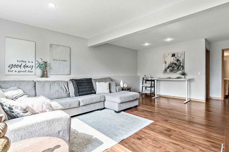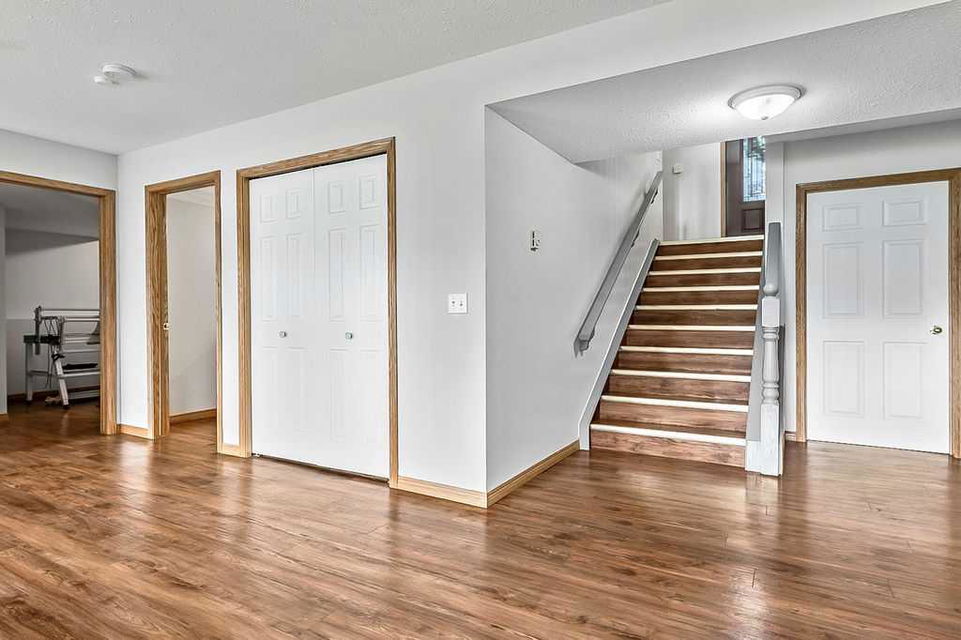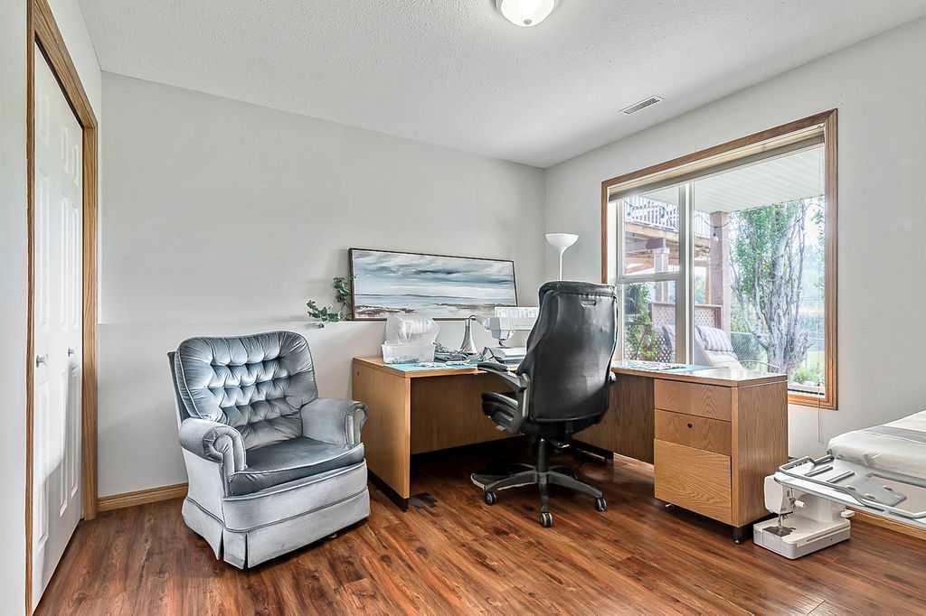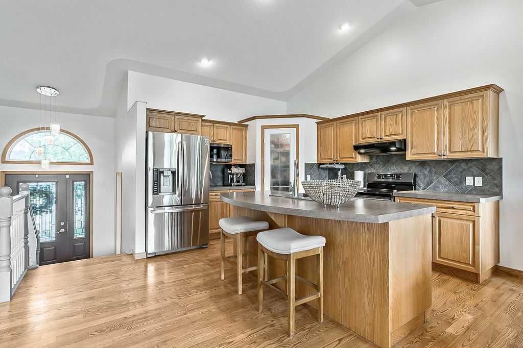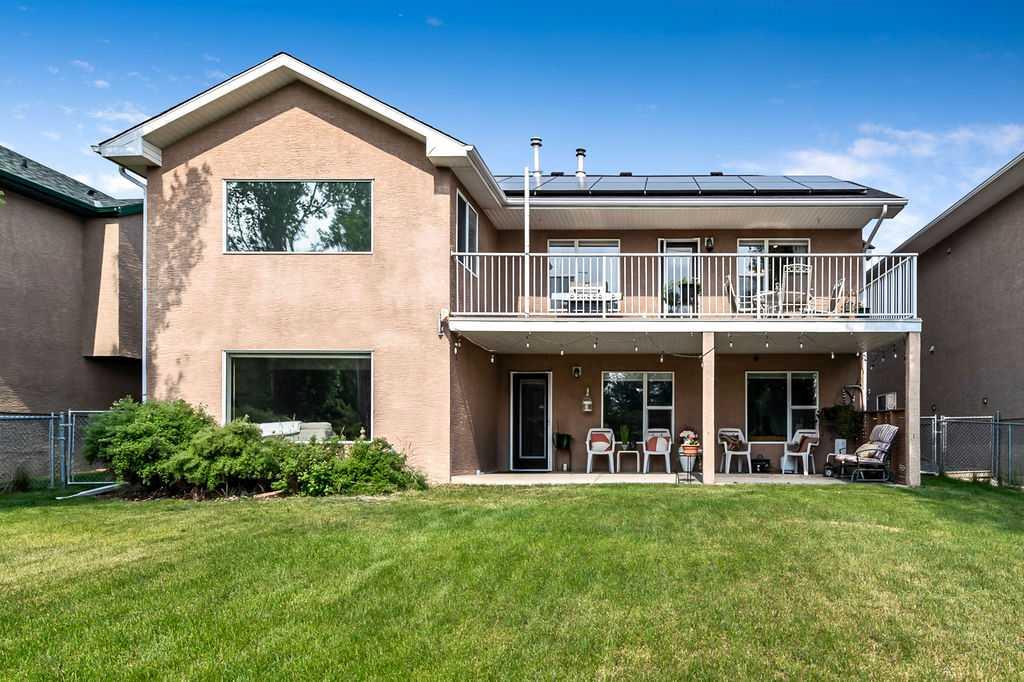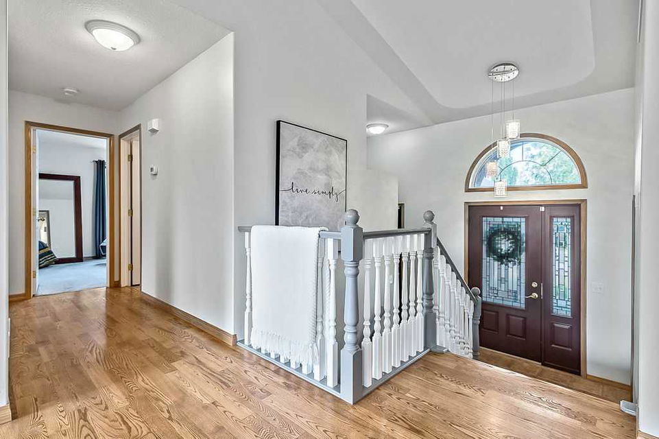GORGEOUS OVERSIZED LOT BACKING ONTO NATURAL DISTRICT, VAULTED CEILING, open concept plan with 2700SQFT+ of living area, five bedrooms, main floor den, WALK-OUT BASEMENT … truly, this bilevel bungalow checks them all! Step inside (click 3D for virtual walkthrough), and you will fall in love with this home’s warm ambiance and beautiful setting. MAIN LEVEL features stunning open concept kitchen with pantry and island, living room with corner fireplace, dining area overlooking back yard, primary bedroom with ensuite bathroom and walk-in closet, and second bedroom plus full bathroom. ENTRY LEVEL a few steps down features home office to one side. LOWER LEVEL features spacious layout, huge windows that flood this space with natural light, in-floor heating, large recreation room, three more bedrooms and full bathroom. All in, this home offers an impressive 5 bedrooms, 1 den, plus 3 full bathrooms. OVERSIZED (21’3” x 24’0”) DOUBLE GARAGE is insulated, drywalled and heated (gas). THEN THERE IS THIS HOME’S BACK YARD PARADISE … oh my, truly a private oasis within a nature reserve, and nearly double the size of most lots in town. Lot backs onto designated natural area and offers plenty of room and privacy for endless hours of outdoor relaxation and fun in the summer, and room for skating rink in winter. Did we mention AC, solar panels that have essentially eliminated electric bills for sellers, and new hot water tank? If you are looking for a spacious bungalow in perfect serene setting, then this is the one!! RECENT UPDATES: solar panels $26K (2024), new hot water heater $5K (2024), new paint throughout (2025)