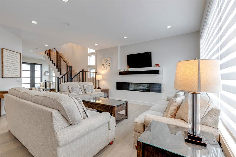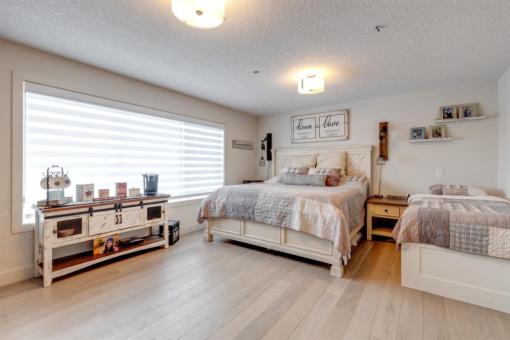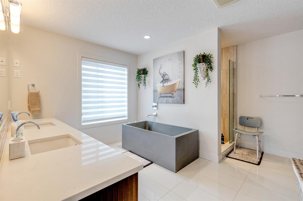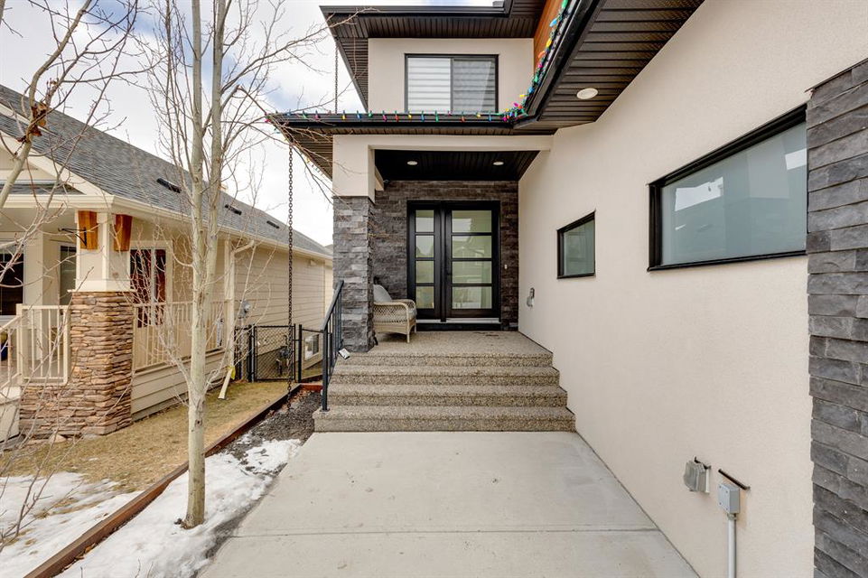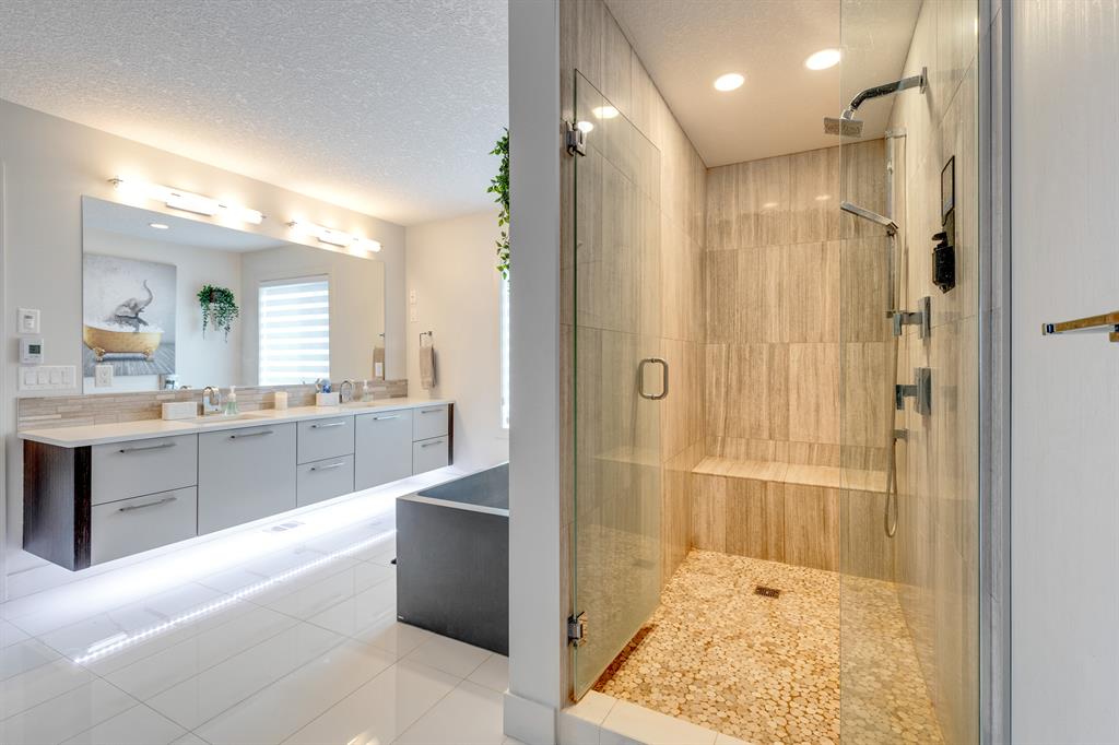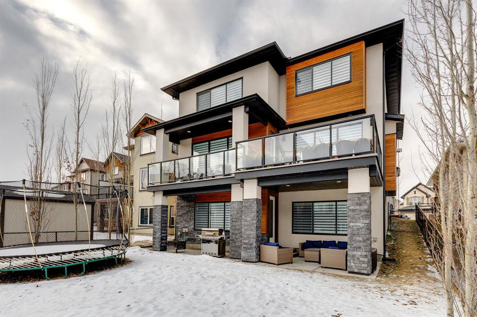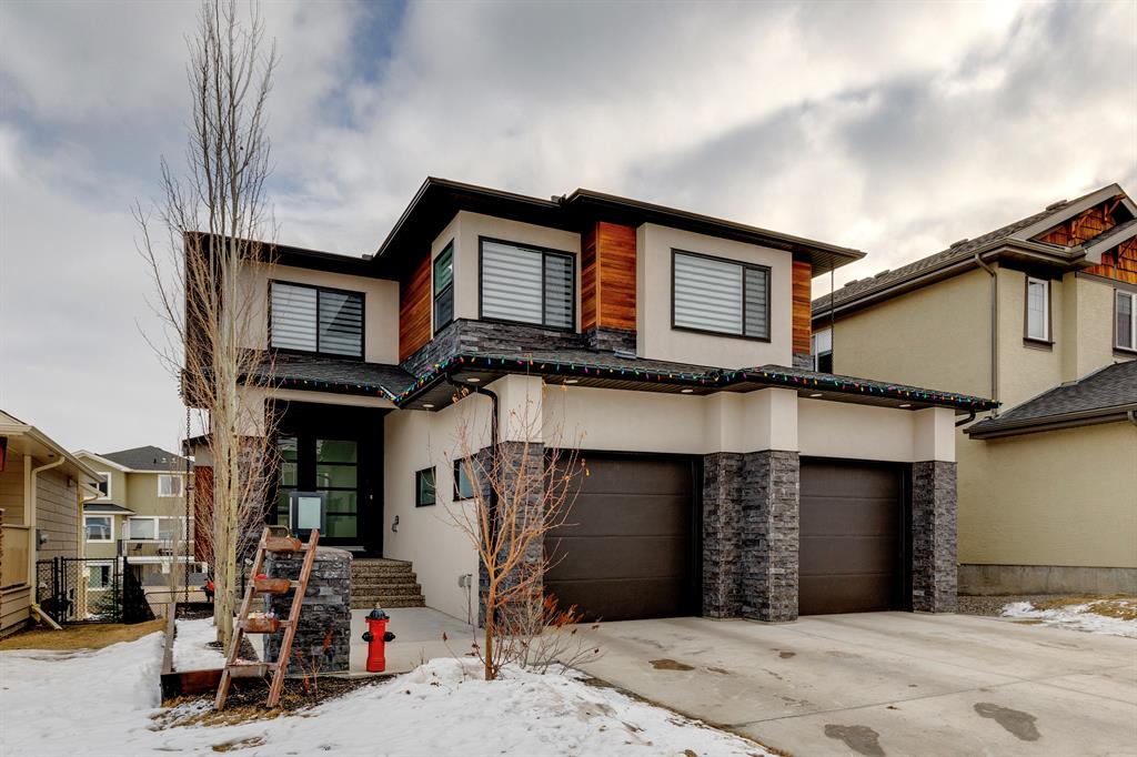 Don’t miss out on this phenomenal custom built home with modern luxury everywhere you look. From the moment you drive up this impressive home will wow you, starting with the oversized garage, extra wide front steps, and massive oversized front door. Inside the home is a dream come true. With over 2800 sq ft above and a full finished walkout basement there is ton of space to enjoy. Engineered hardwood flooring blankets the top two floors, while the 9′ ceilings and 8′ tall doors on the main level make the home feel extremely spacious. The kitchen is a showpiece, with a gigantic quartz island, high end Jenn Air appliances, and more cabinets than you’ll know what to do with. The upper cabinets near the stove have automatic openers, and the pantry style cabinets all have roll out inserts inside. There is a large pantry with built in shelving, and you can walk through into the mud room/laundry room on the main level. Inside the garage there is room for 2 large vehicles, including a full size truck, plus the vehicles will stay toasty warm thanks to the in floor heat in the garage. Other things you’ll love about the main level are the office space, impressive staircase and railings, plus access to a large east facing deck with gas line for your BBQ. Upstairs are 3 bedrooms plus a massive bonus room. All of the bathrooms have floating vanities with undercabinet lighting. The master suite is truly impressive, with ample room for king sized furniture. The ensuite is a dream with double vanities, free standing tub, and a huge tile shower with 2 shower heads. In the master closet there is a second set of laundry to make this tiresome chore a breeze. The fully finished walkout basement features bedrooms #4 and #5, as well as a full bathroom and a huge recreation room. In floor heat keeps the epoxy coated floor beautifully warm, and the large windows look out over the landscaped back yard that is separated from your neighbors by a walking path. In the mechanical room everything has been upgraded. The entire home runs off a high efficient boiler system that feeds the in floor heat, as well as two separate fan coil style furnaces. With too many custom upgrades to name you’ll need to come see this home for yourself. Book a showing with your favorite realtor today!